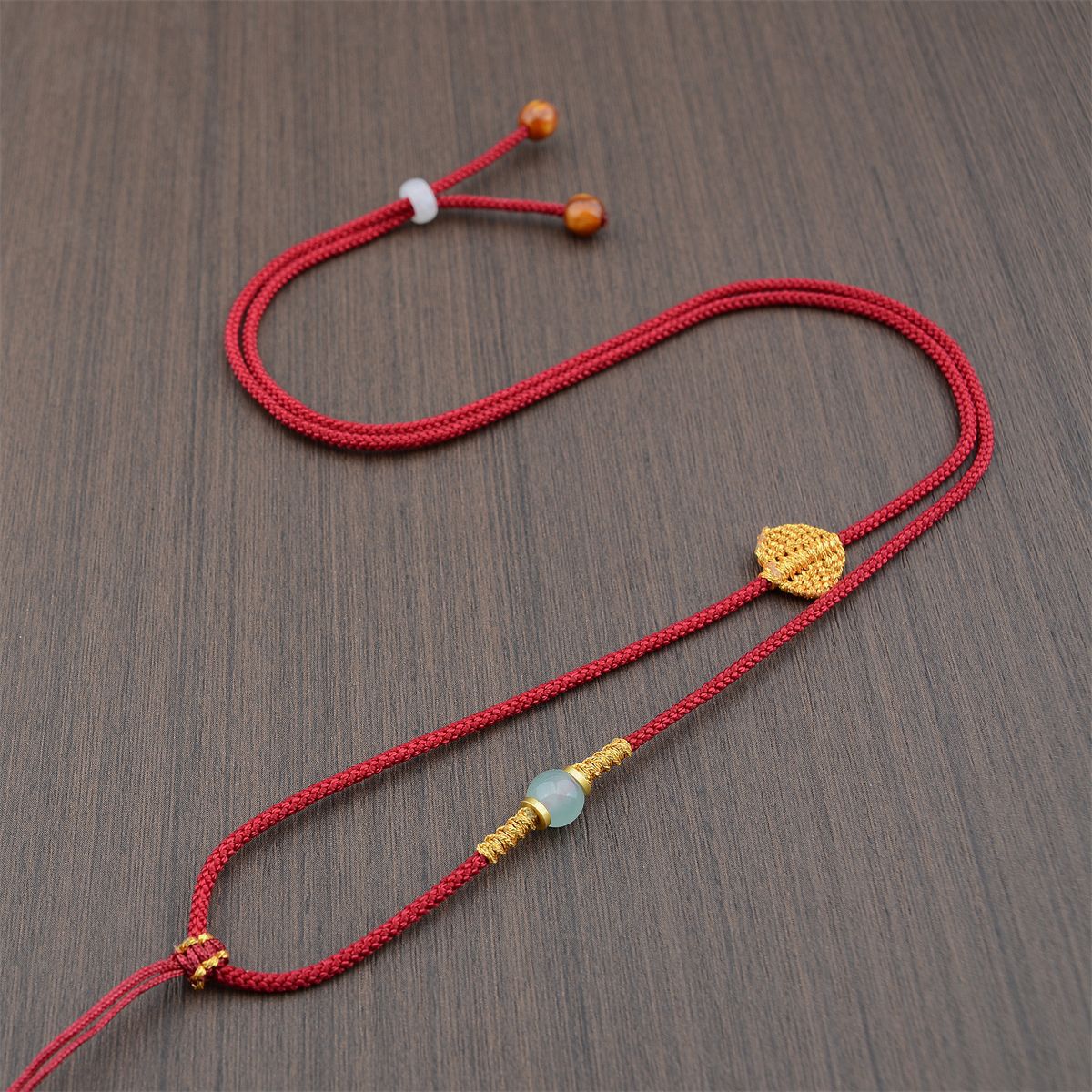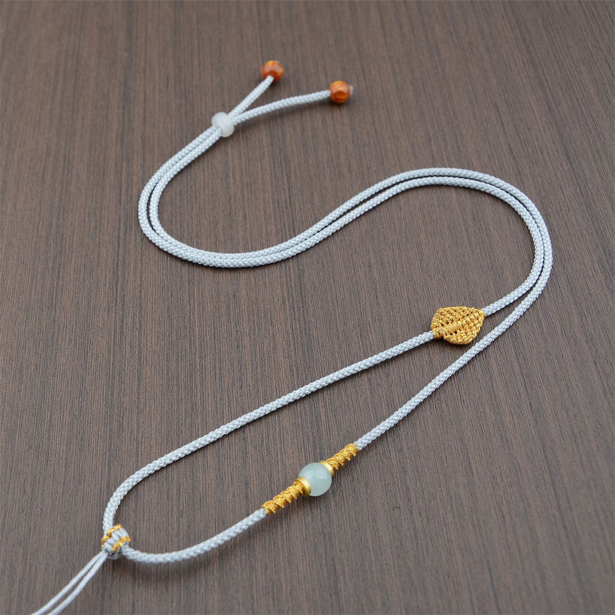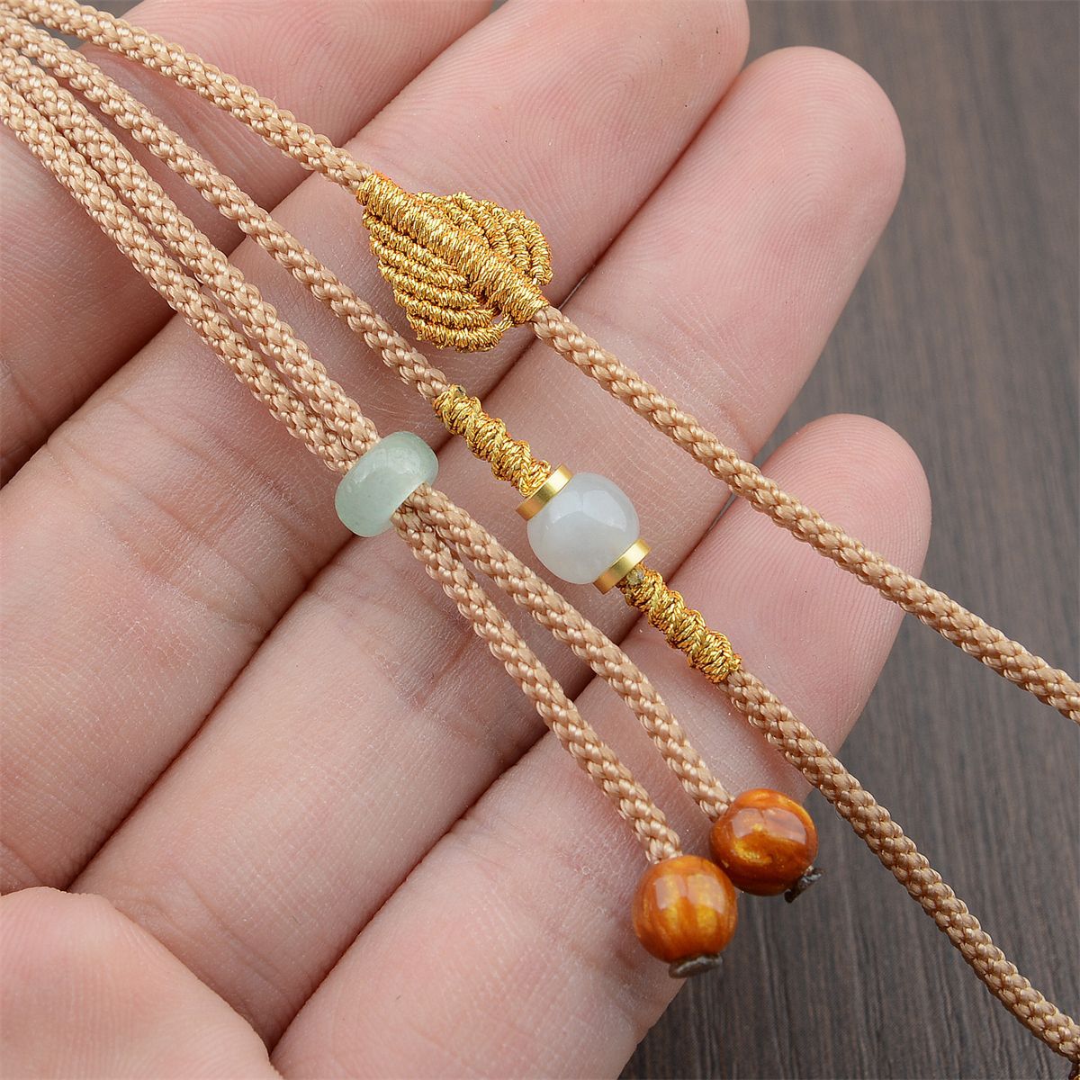 手工编织可调节黄金翡翠吊坠挂绳和田玉佩配绳女男款树叶项链绳子