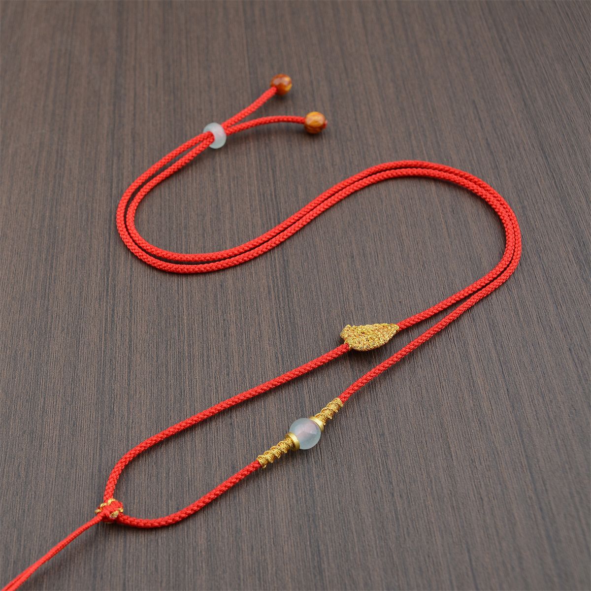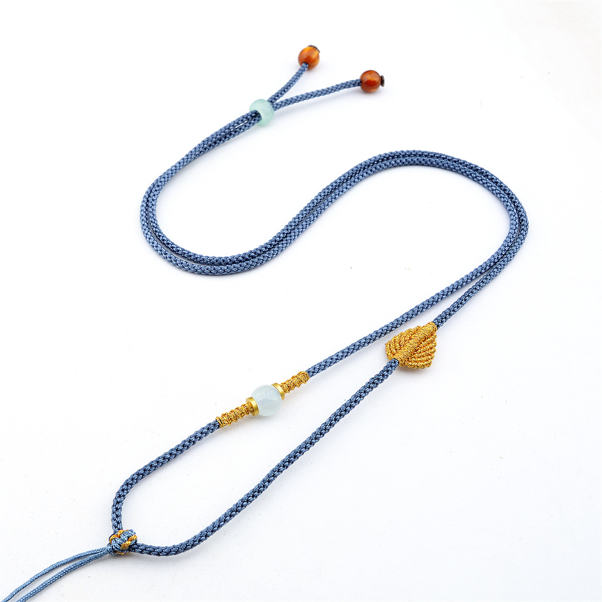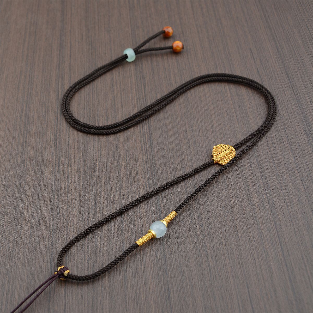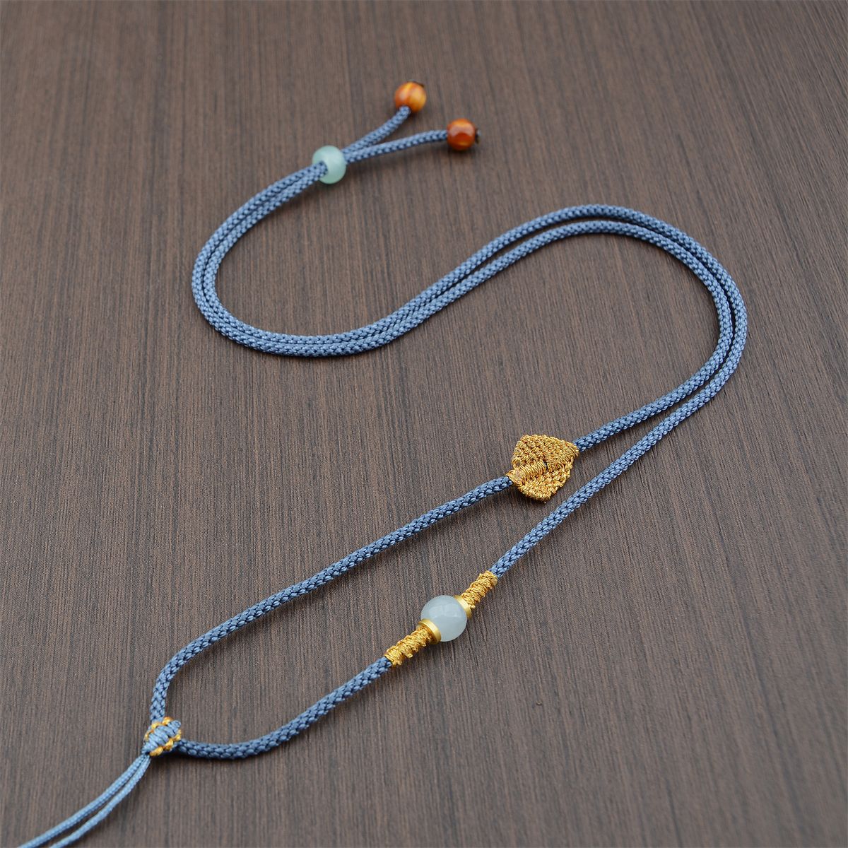 手工编织可调节黄金翡翠吊坠挂绳和田玉佩配绳女男款树叶项链绳子