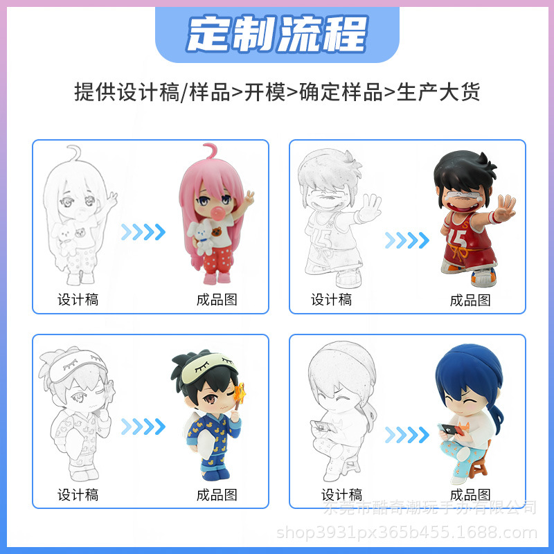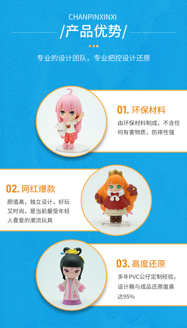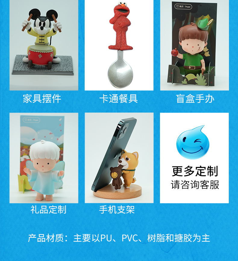 pvc盲盒公仔定制树脂工艺品摆件搪胶卡通玩偶钥匙扣挂件手办玩具