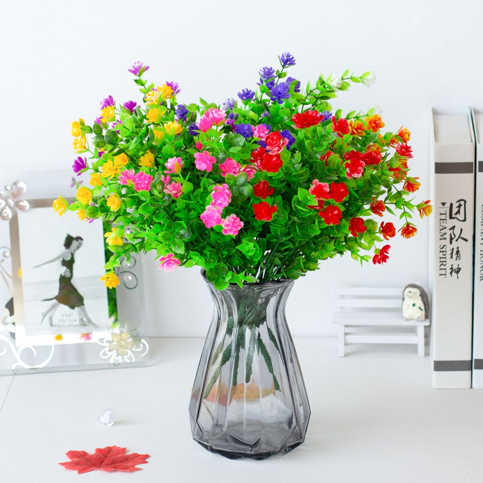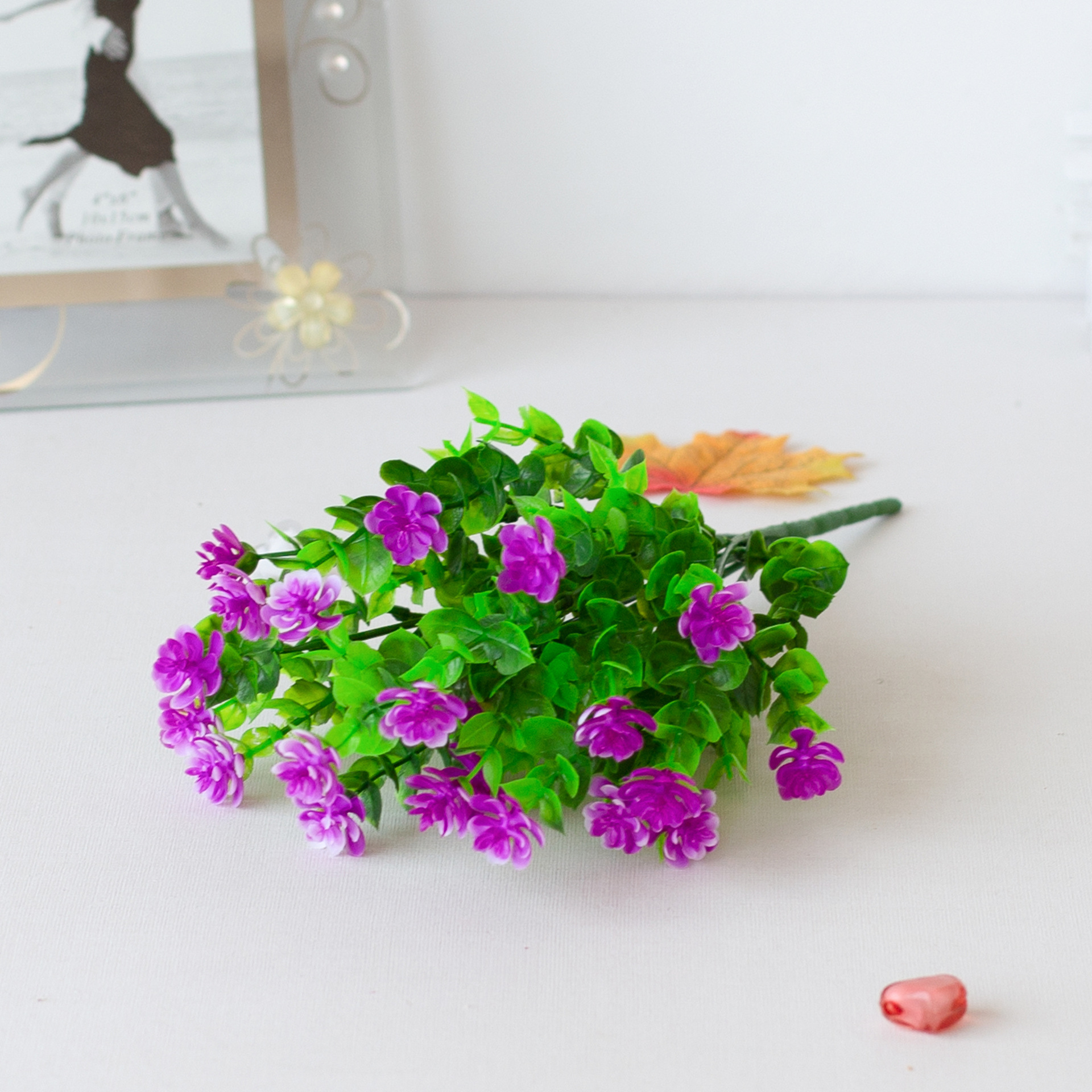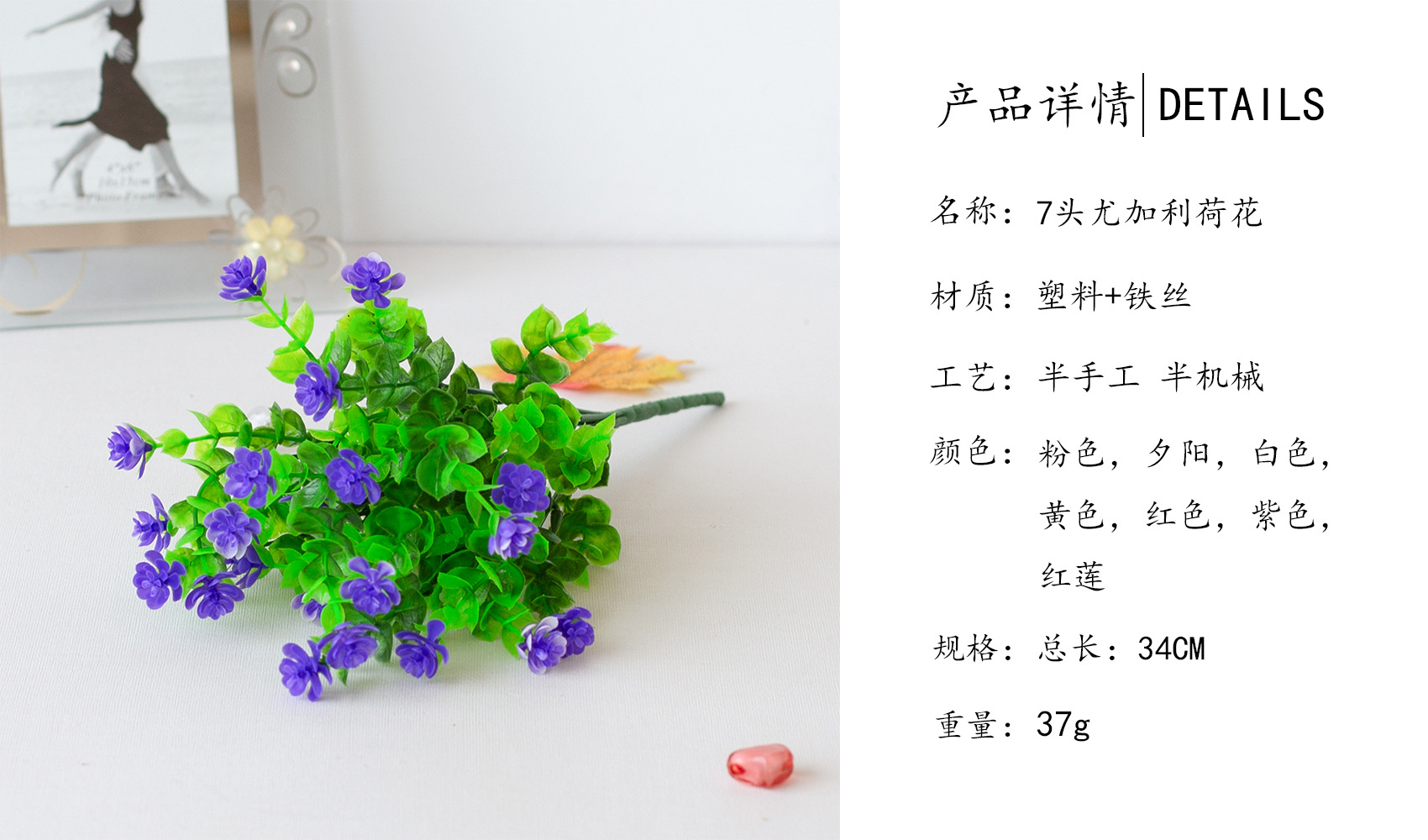 现货亚马逊尤加利茶花 仿真茶花满天星仿真花 七叉尤加利玫瑰把束
