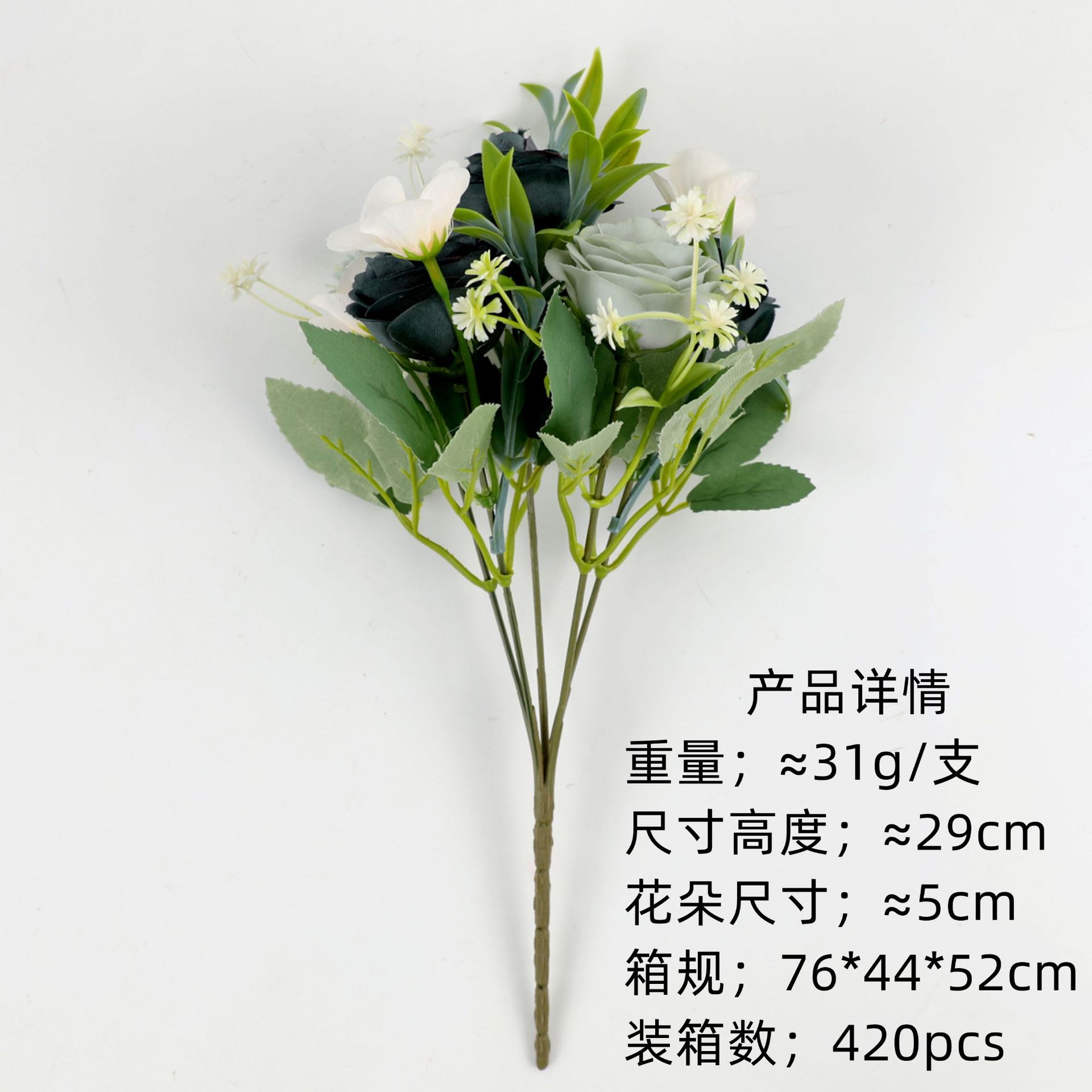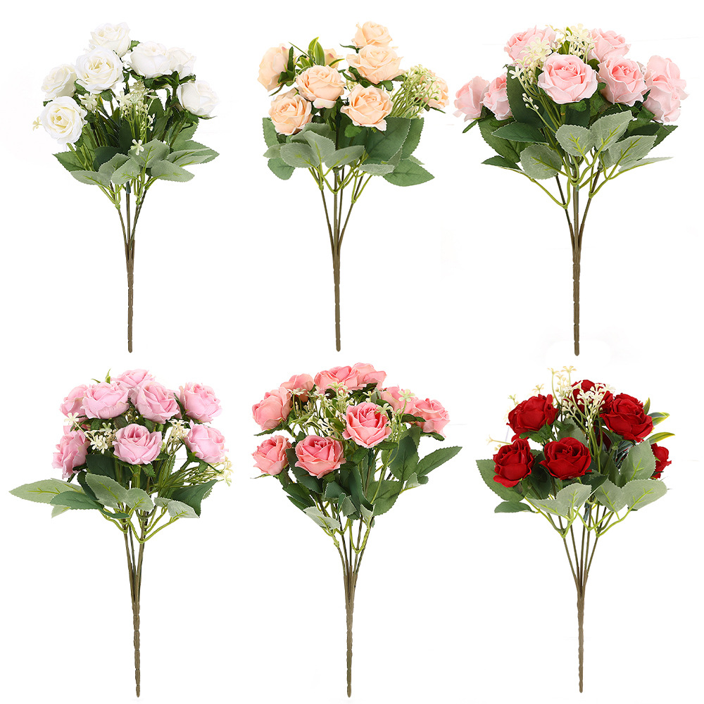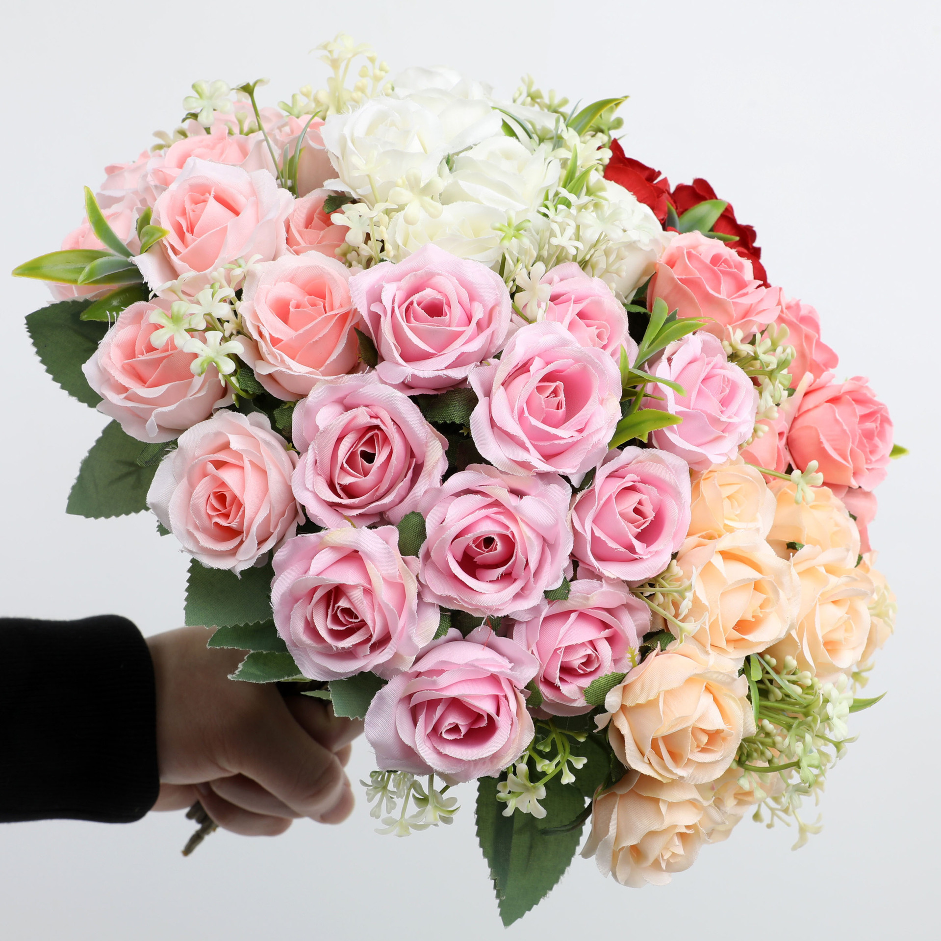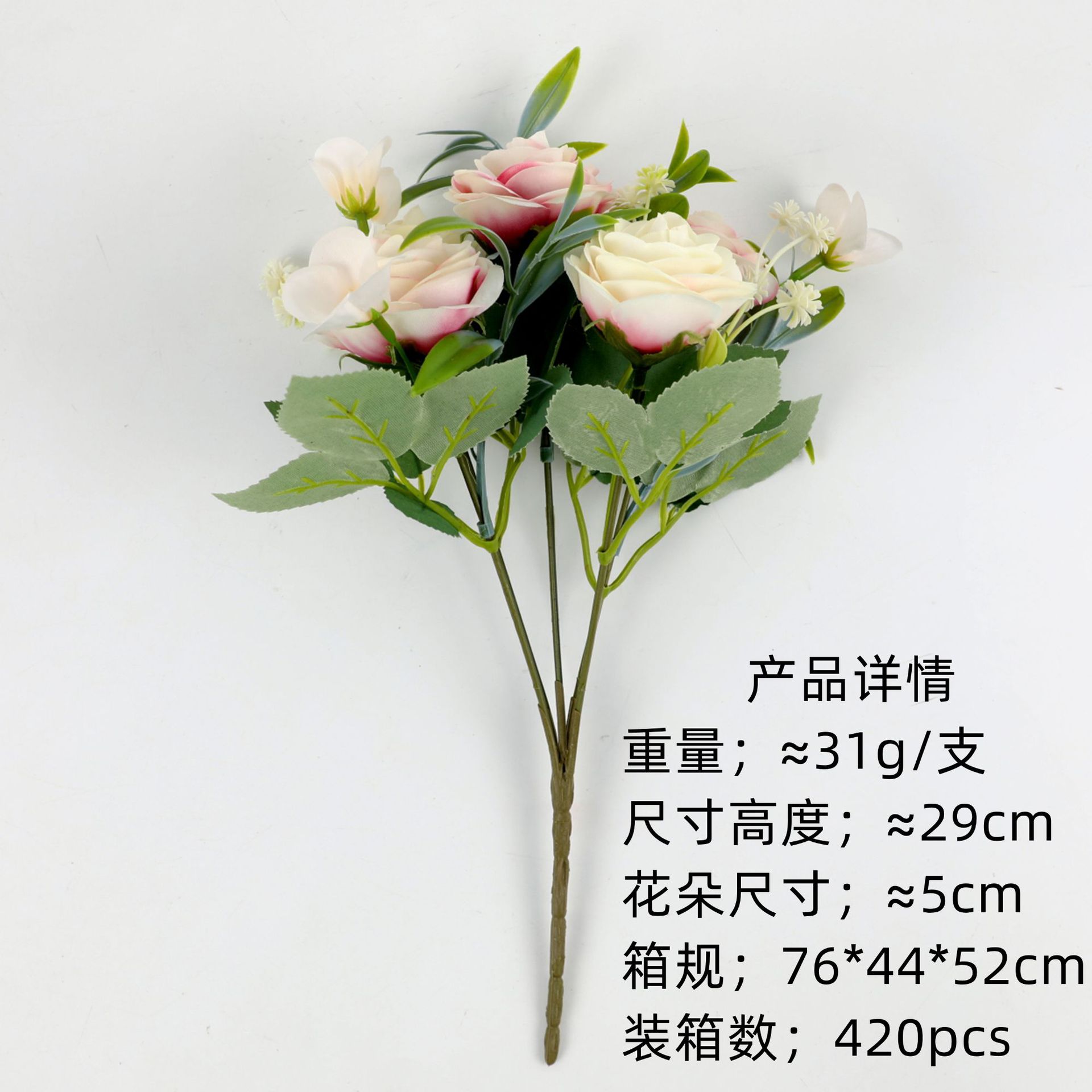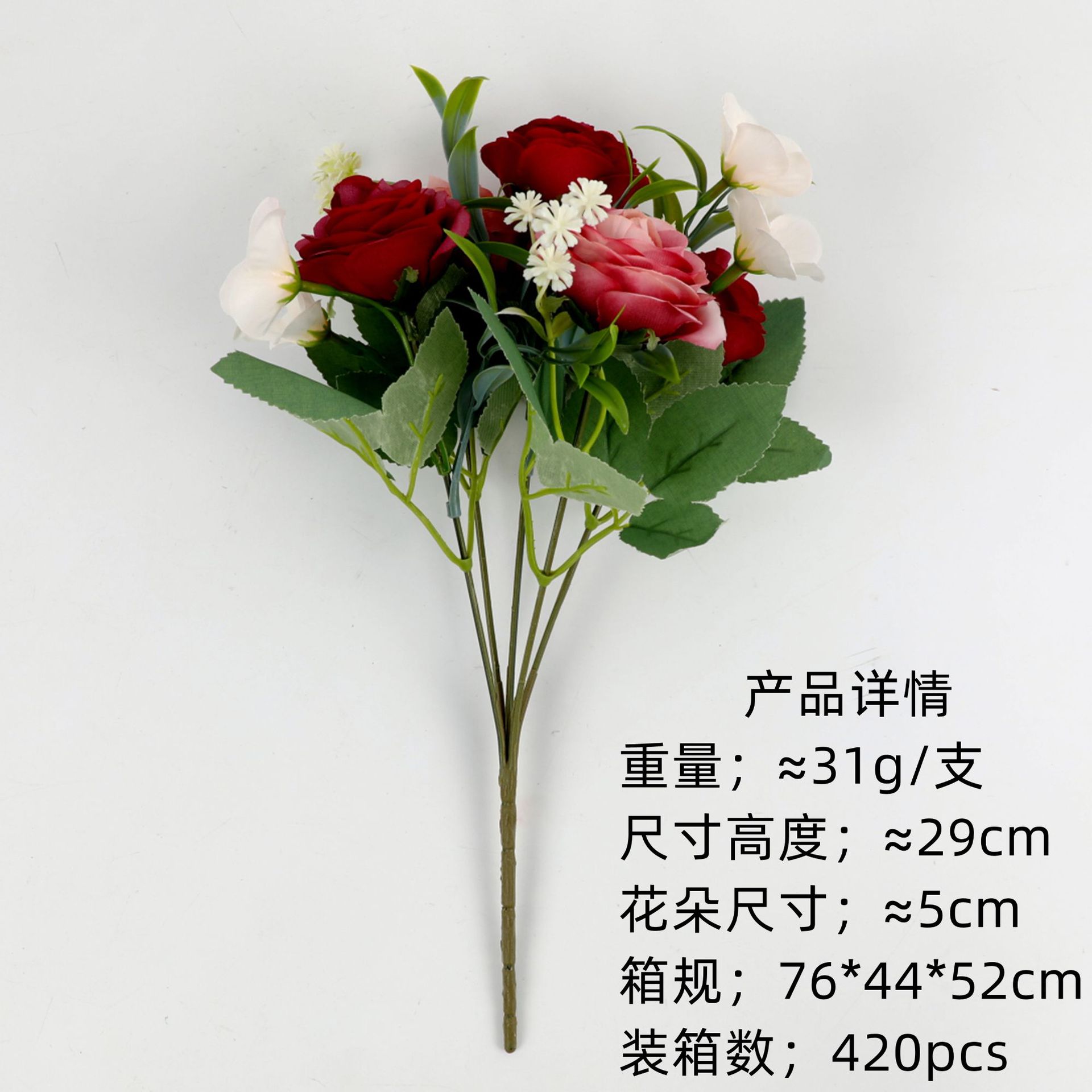 仿真玫瑰花束婚礼装饰家居摆设山茶玟人造花摆件插花道具假花批发