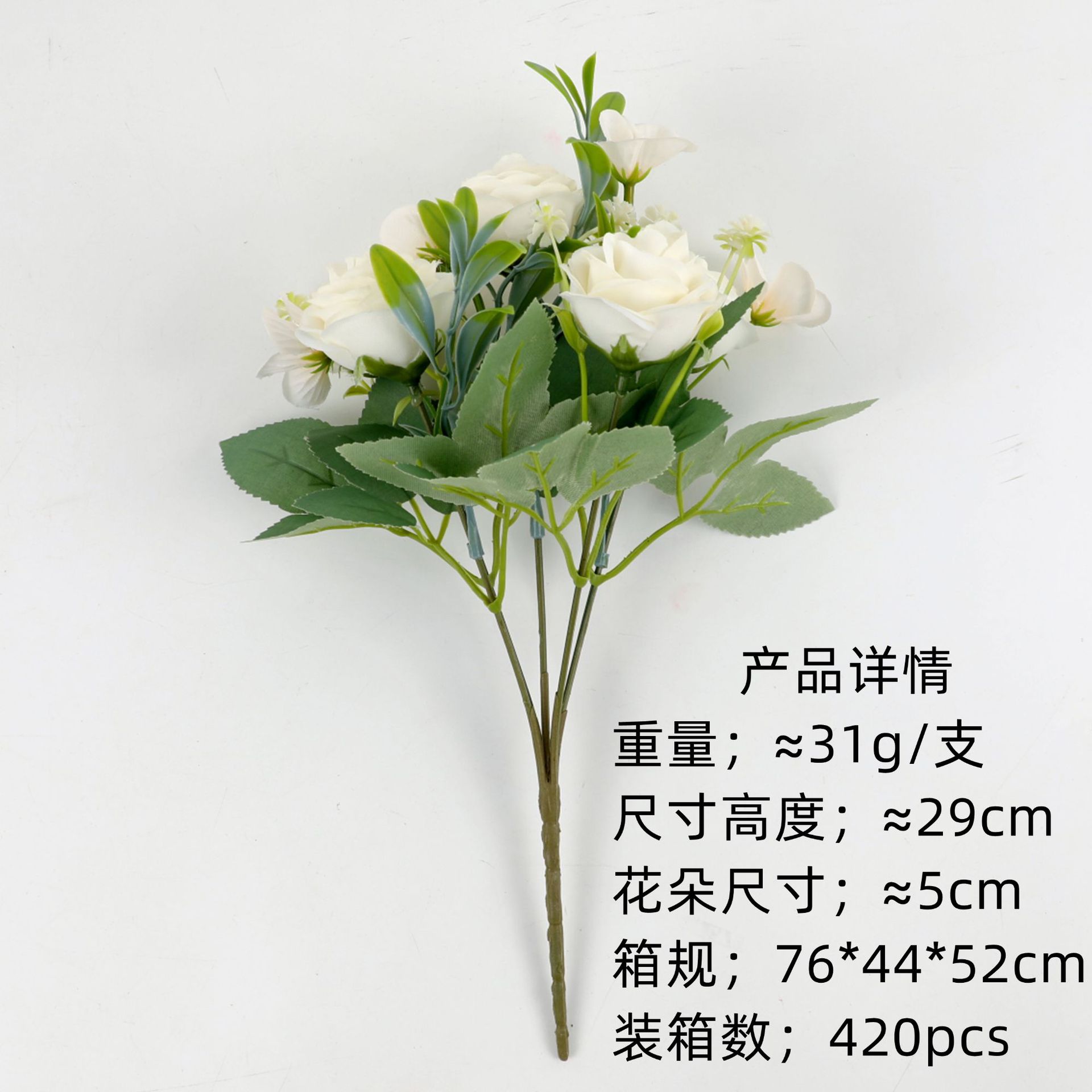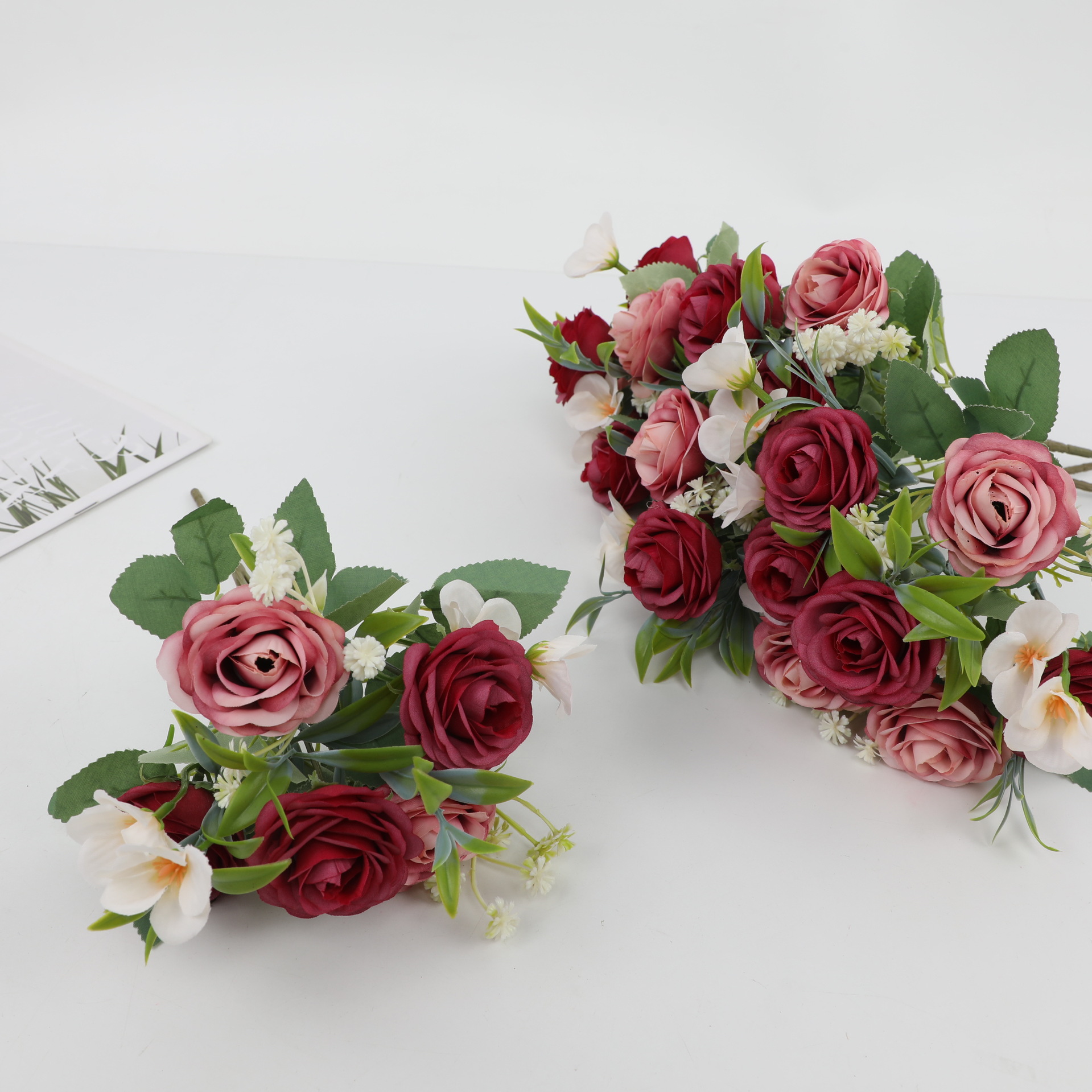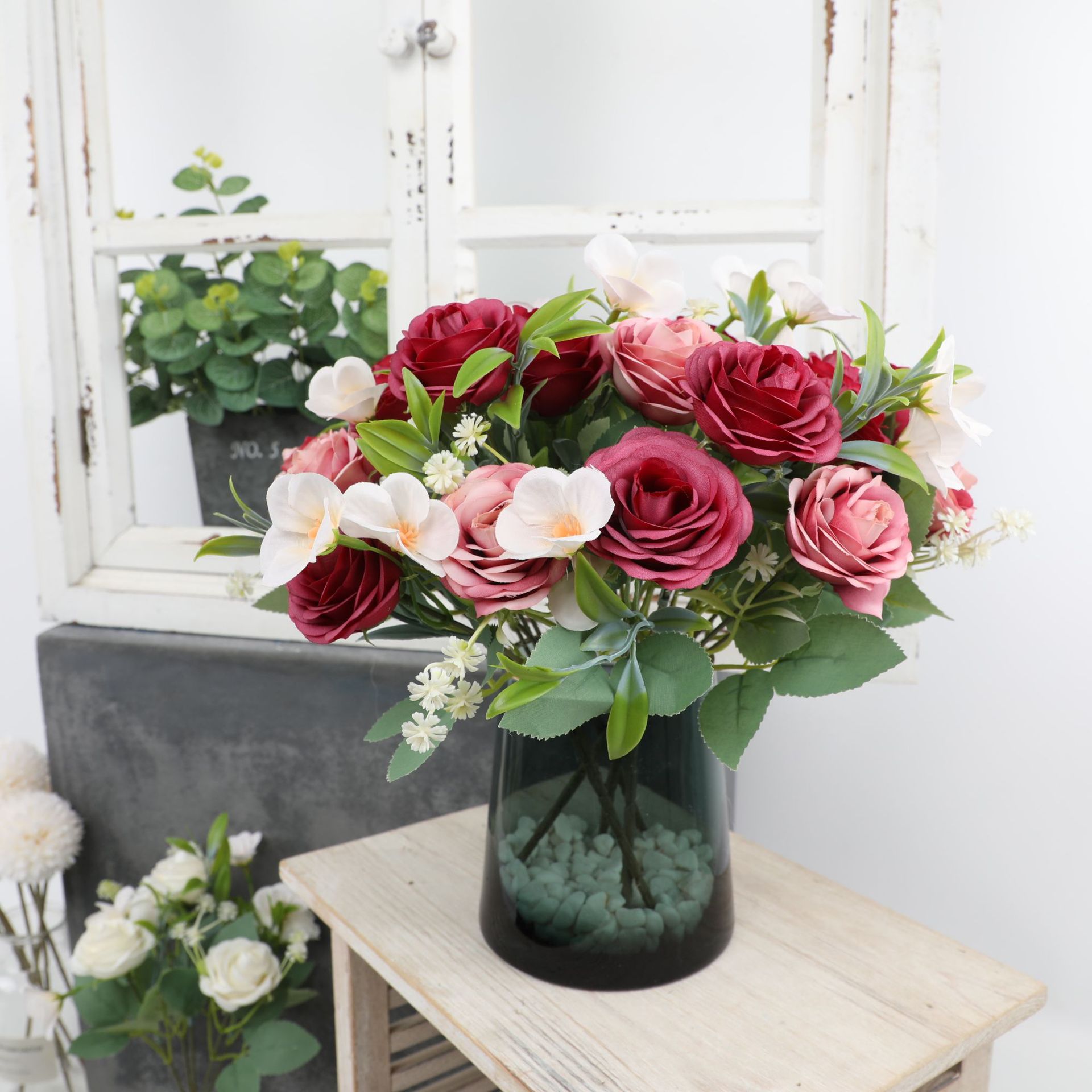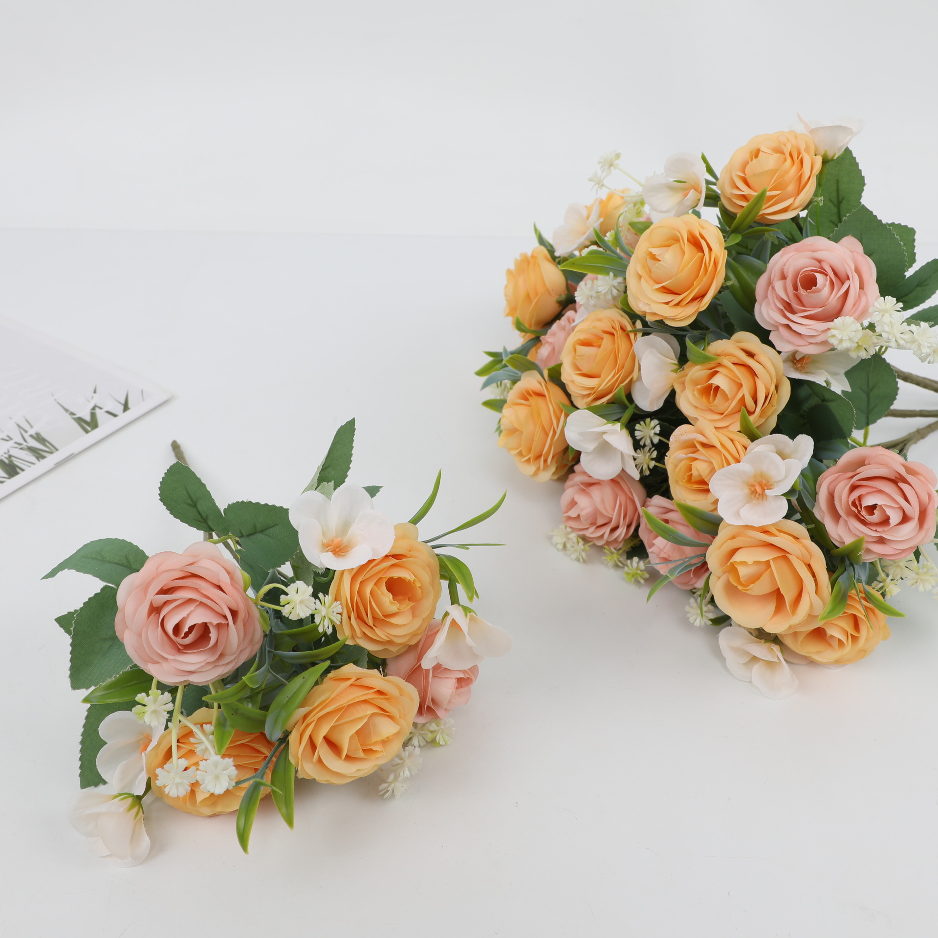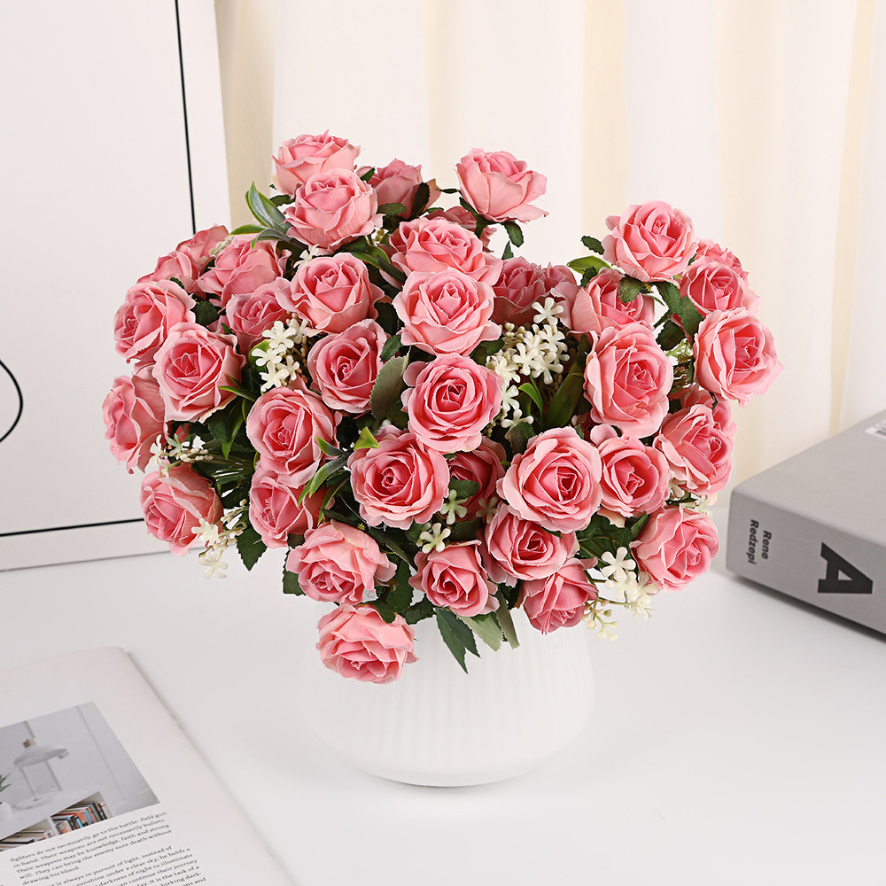 仿真玫瑰花束婚礼装饰家居摆设山茶玟人造花摆件插花道具假花批发