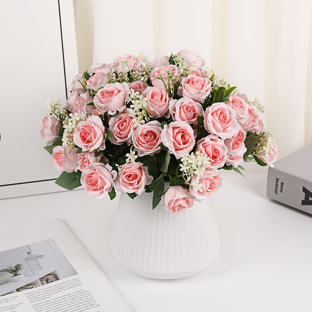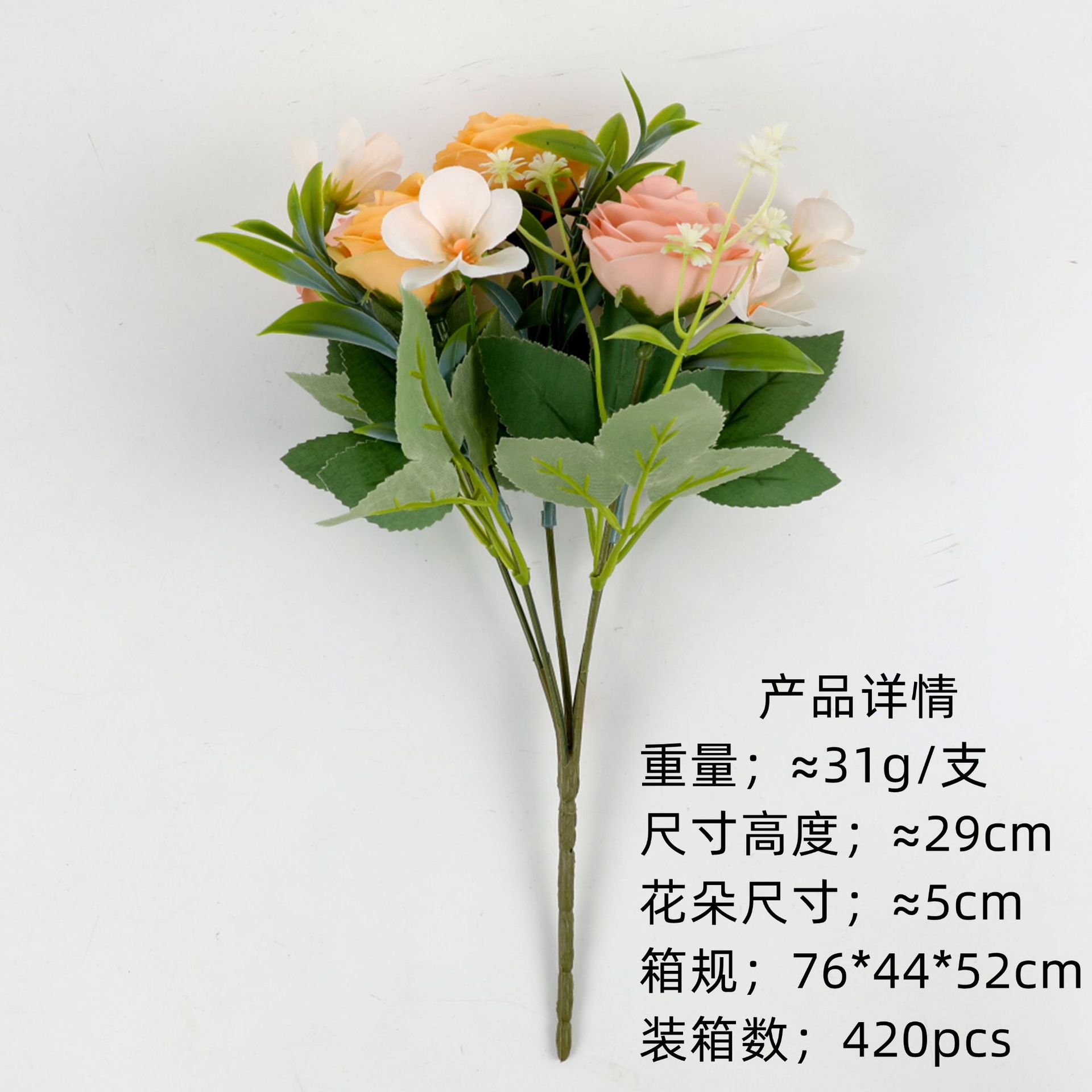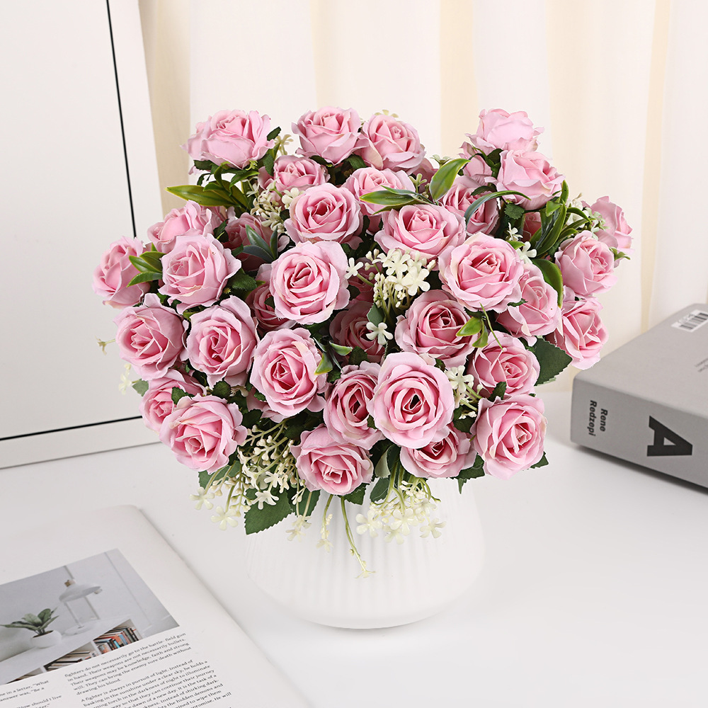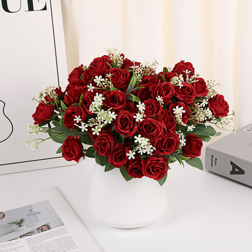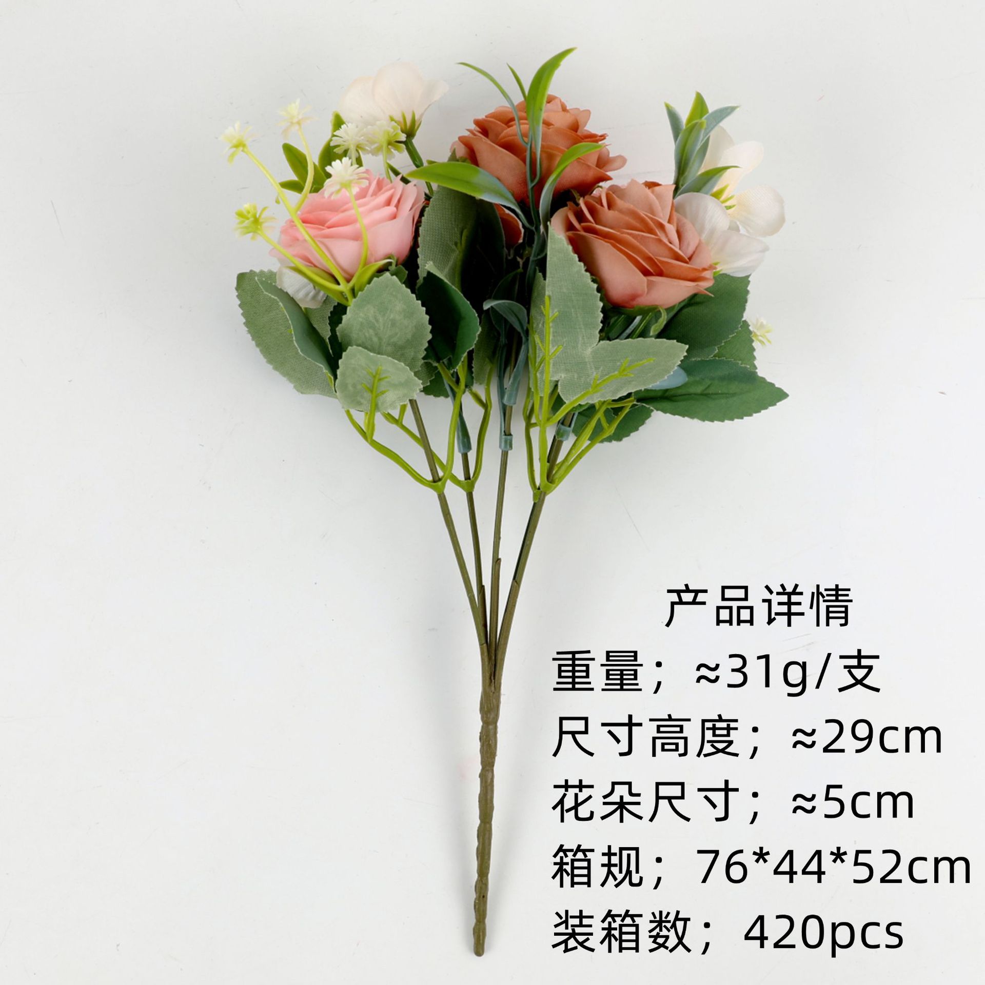 仿真玫瑰花束婚礼装饰家居摆设山茶玟人造花摆件插花道具假花批发
