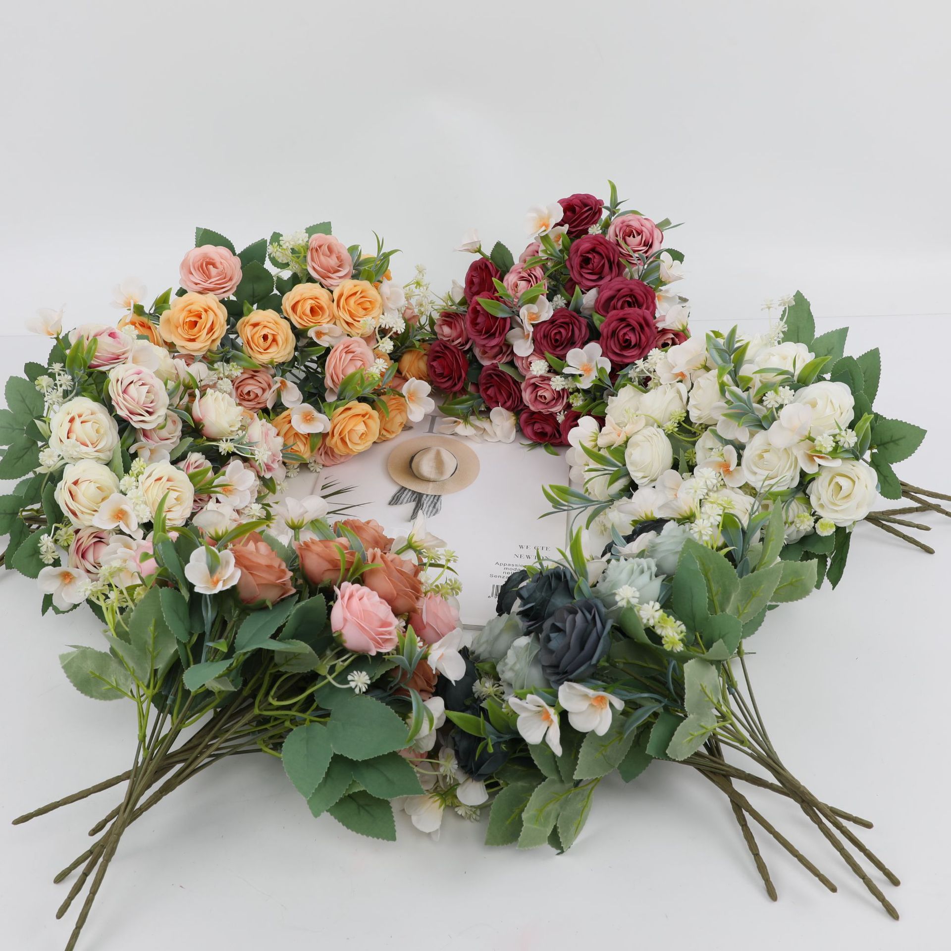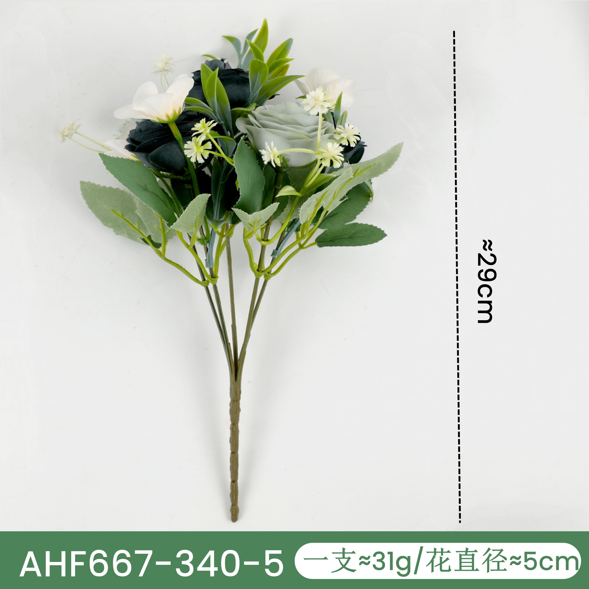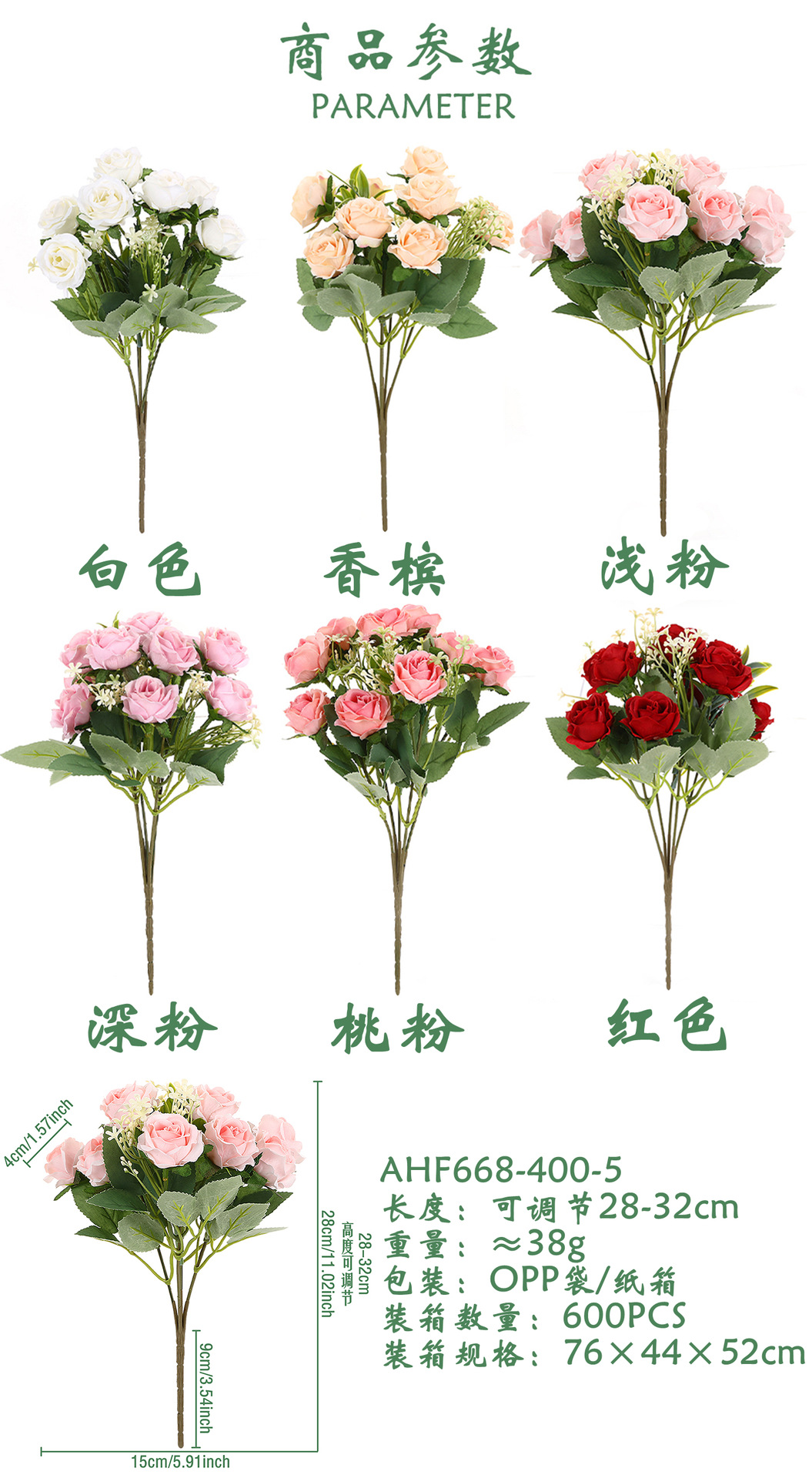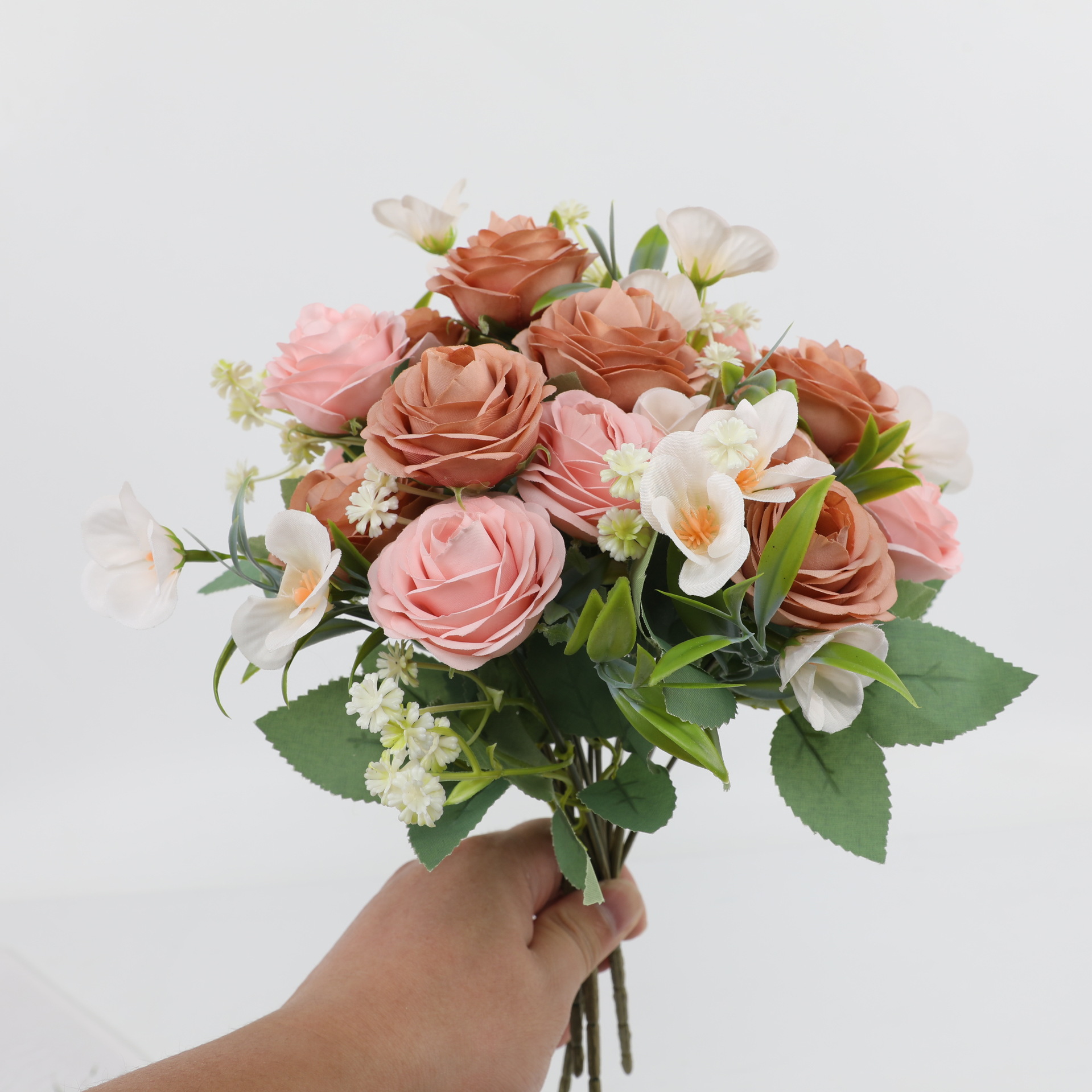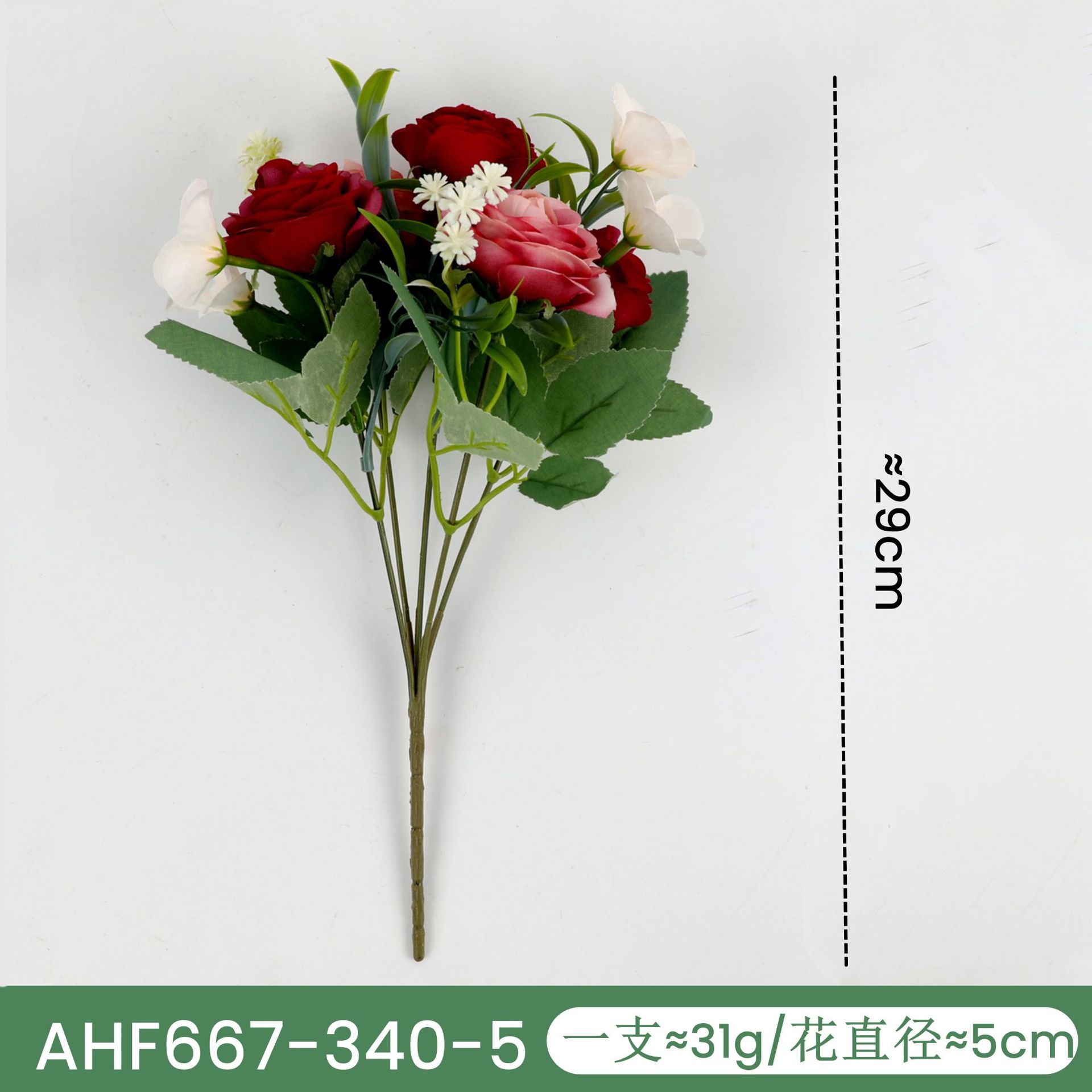仿真玫瑰花束婚礼装饰家居摆设山茶玟人造花摆件插花道具假花批发