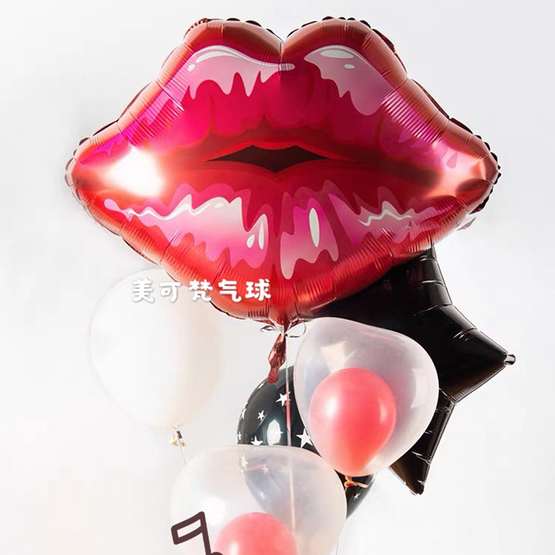 批发30寸大号红色嘴唇造型情人节婚庆装饰背景墙独立包装铝膜气球