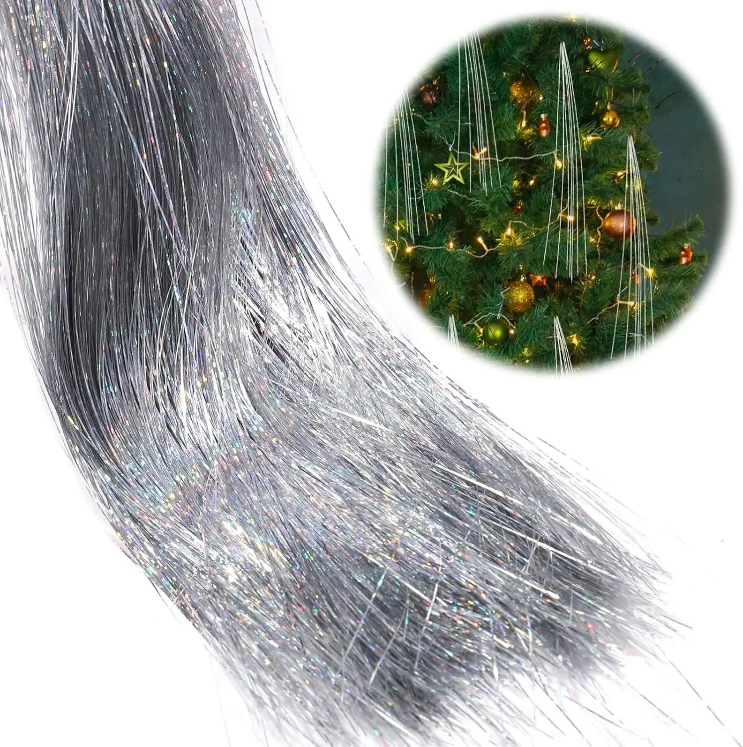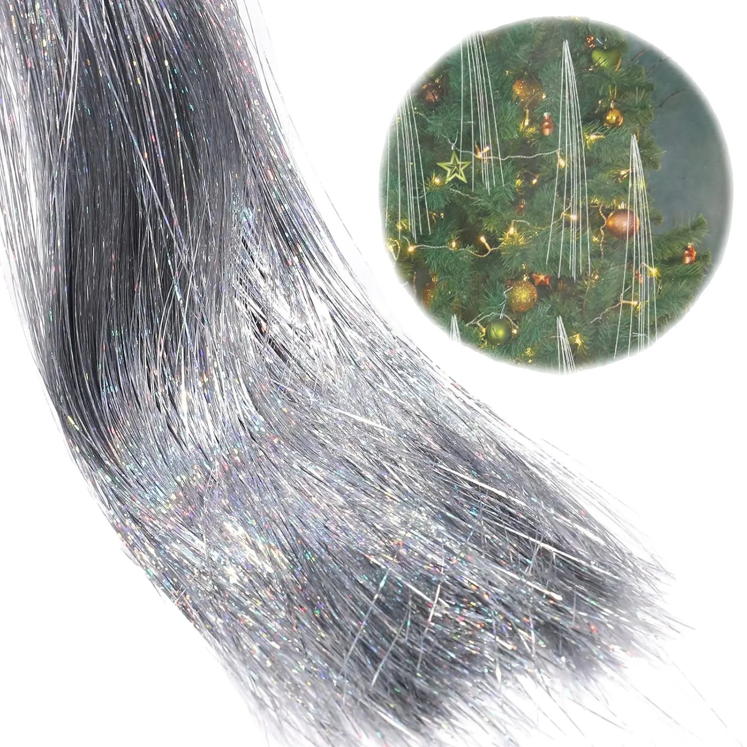 亚马逊3000根镭射彩虹色金属银丝圣诞节圣诞树装饰品派对用品节日