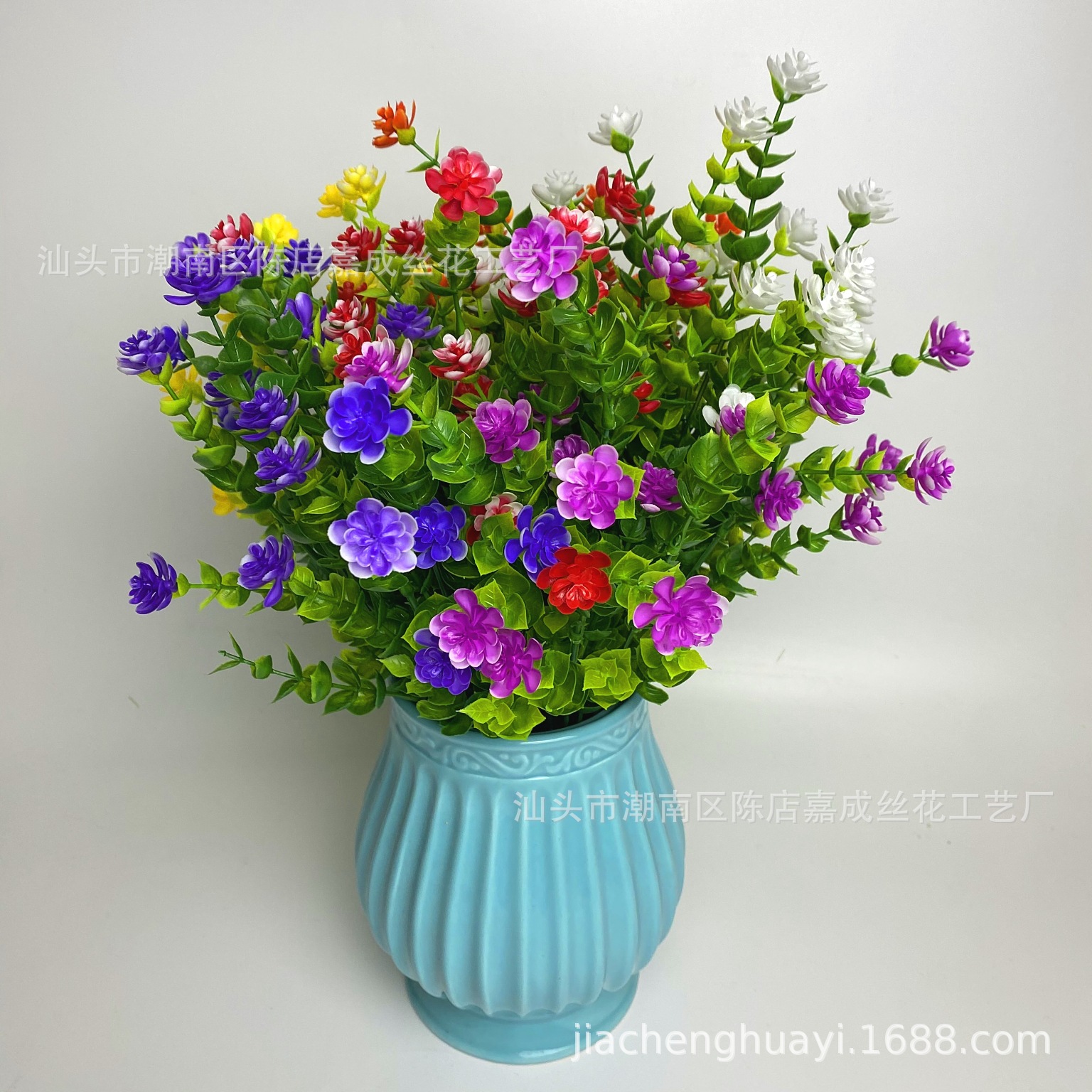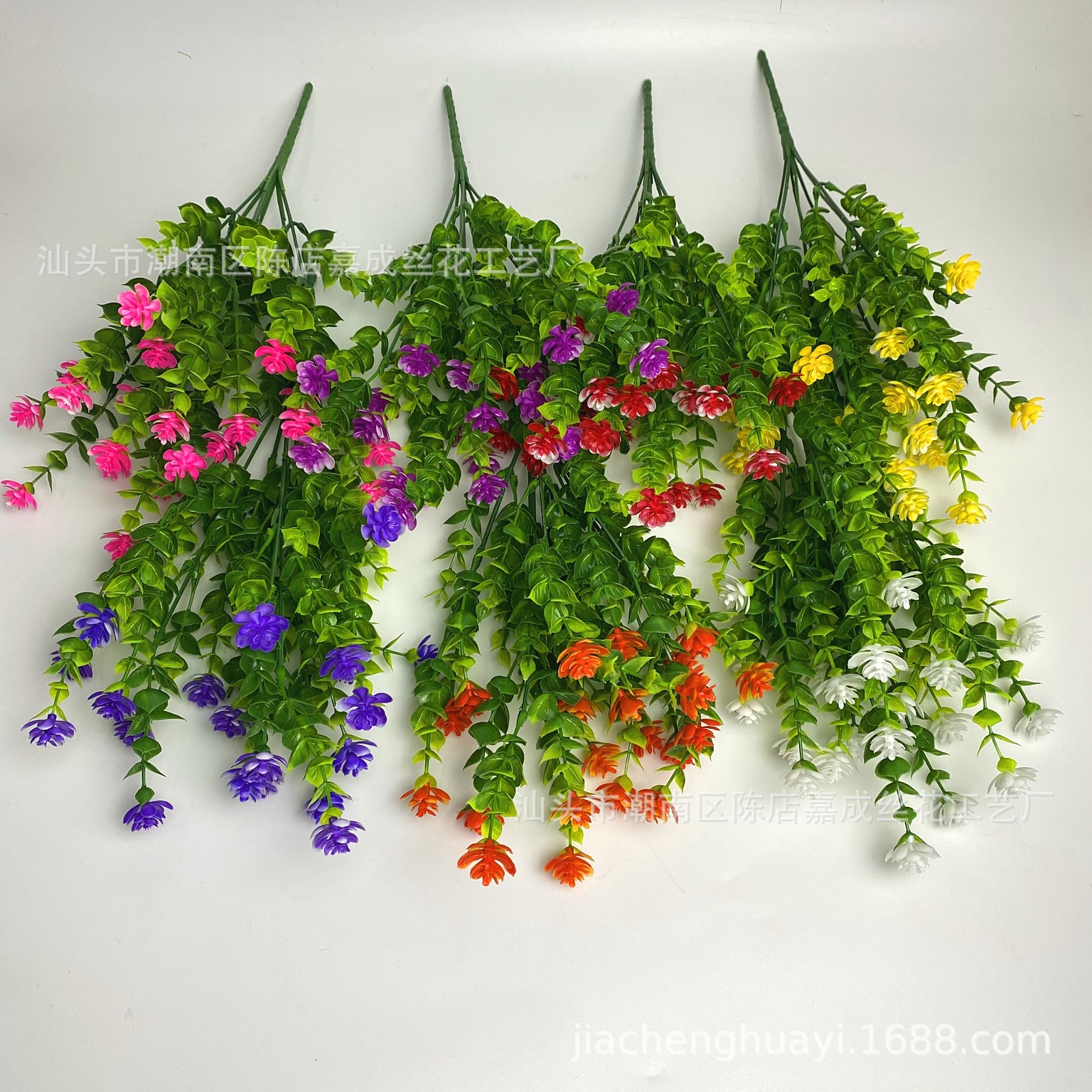 亚马逊跨境人造花 尤加利茶花 户外装饰隔断帘仿真花满天星玫瑰花