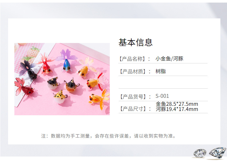 diy饰品配件 树脂热缩片 小金鱼河豚多款多尺寸 耳环耳饰材料