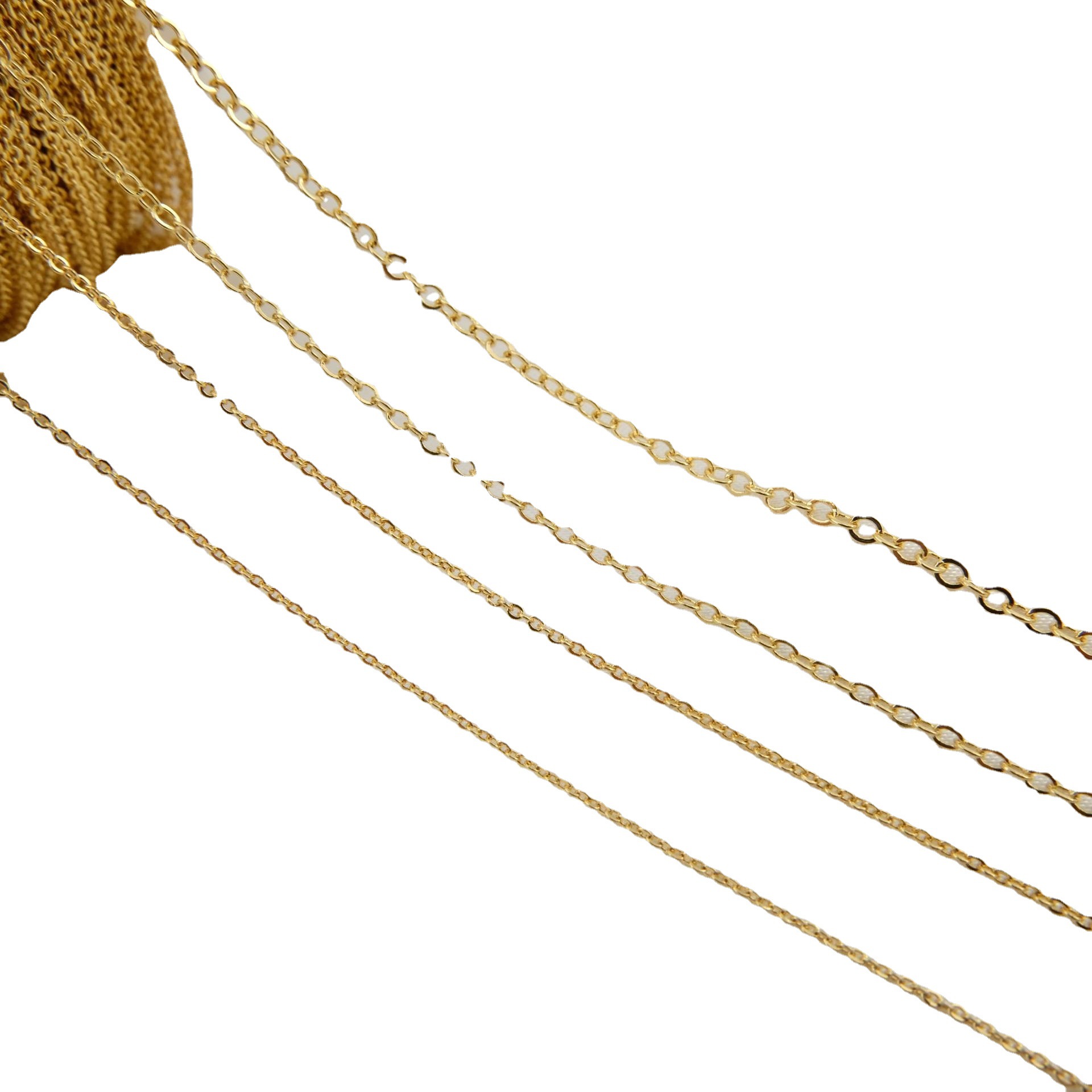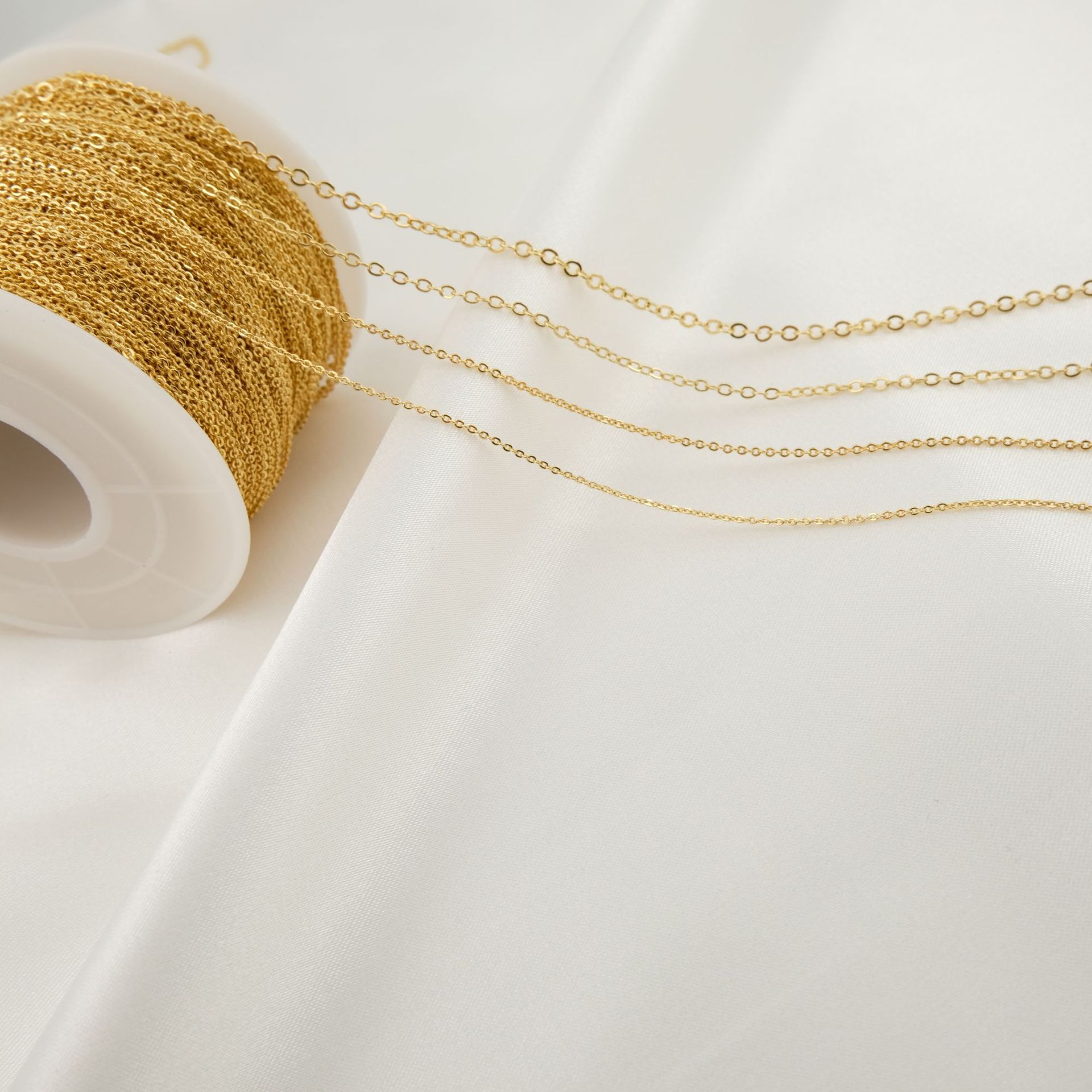 1.5mm圆链18K保色O字链铜镀真金珍珠项链扁O链十字链diy饰品配件