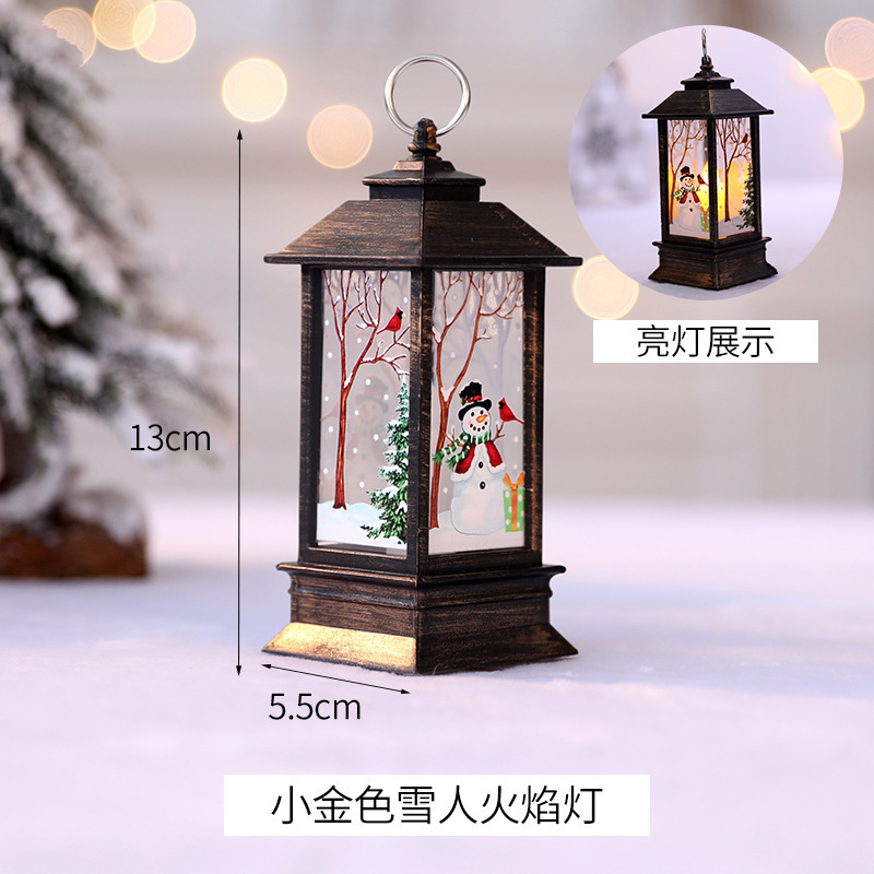 跨境批发圣诞节火焰风灯圣诞老人装饰 圣诞节LED发光摆件烛台灯