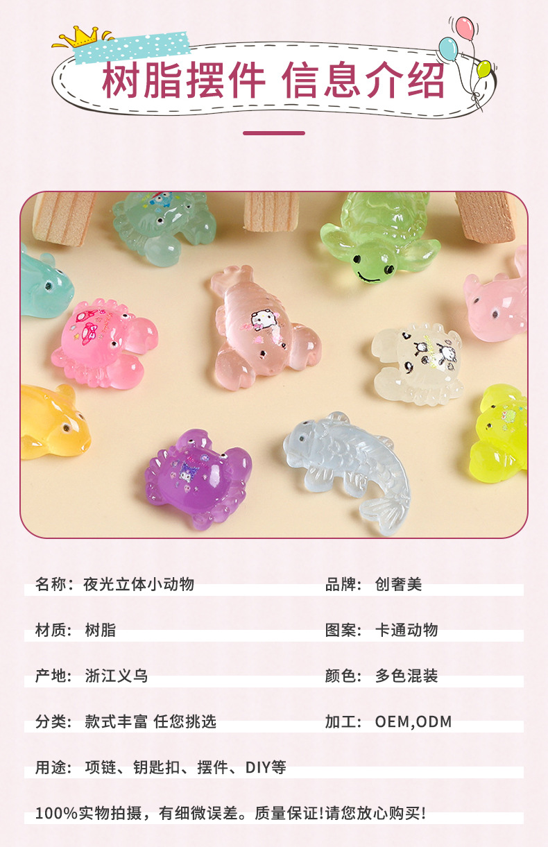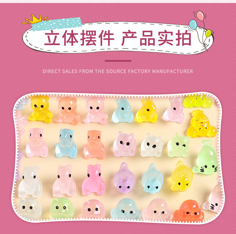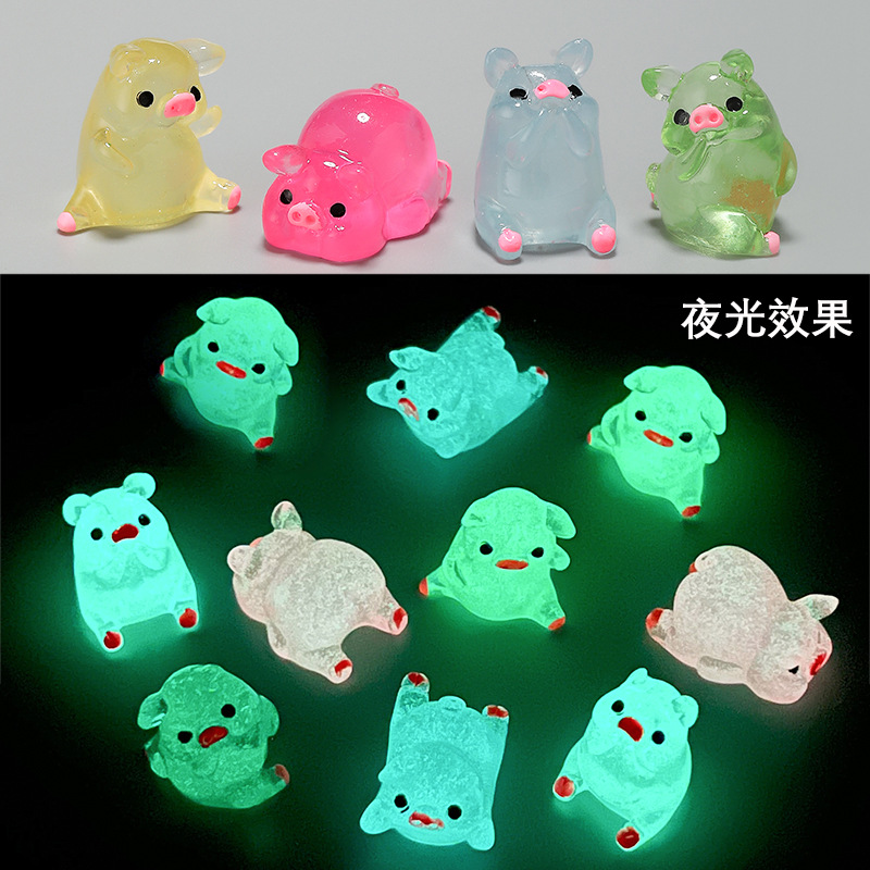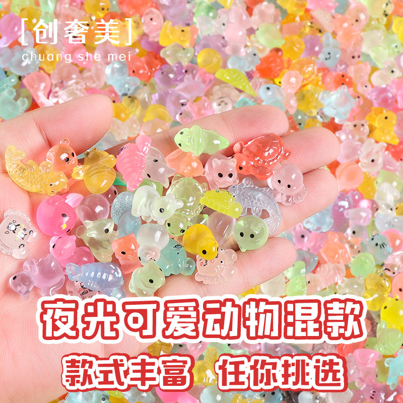 夜光立体小动物鸭子乌龟混款树脂桌面车载小摆件diy饰品配件混卖