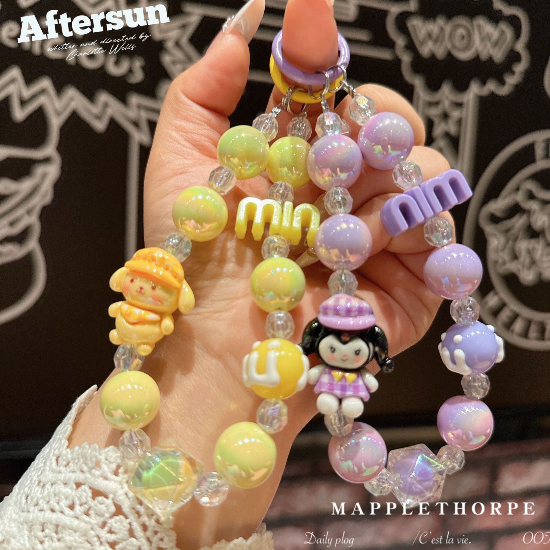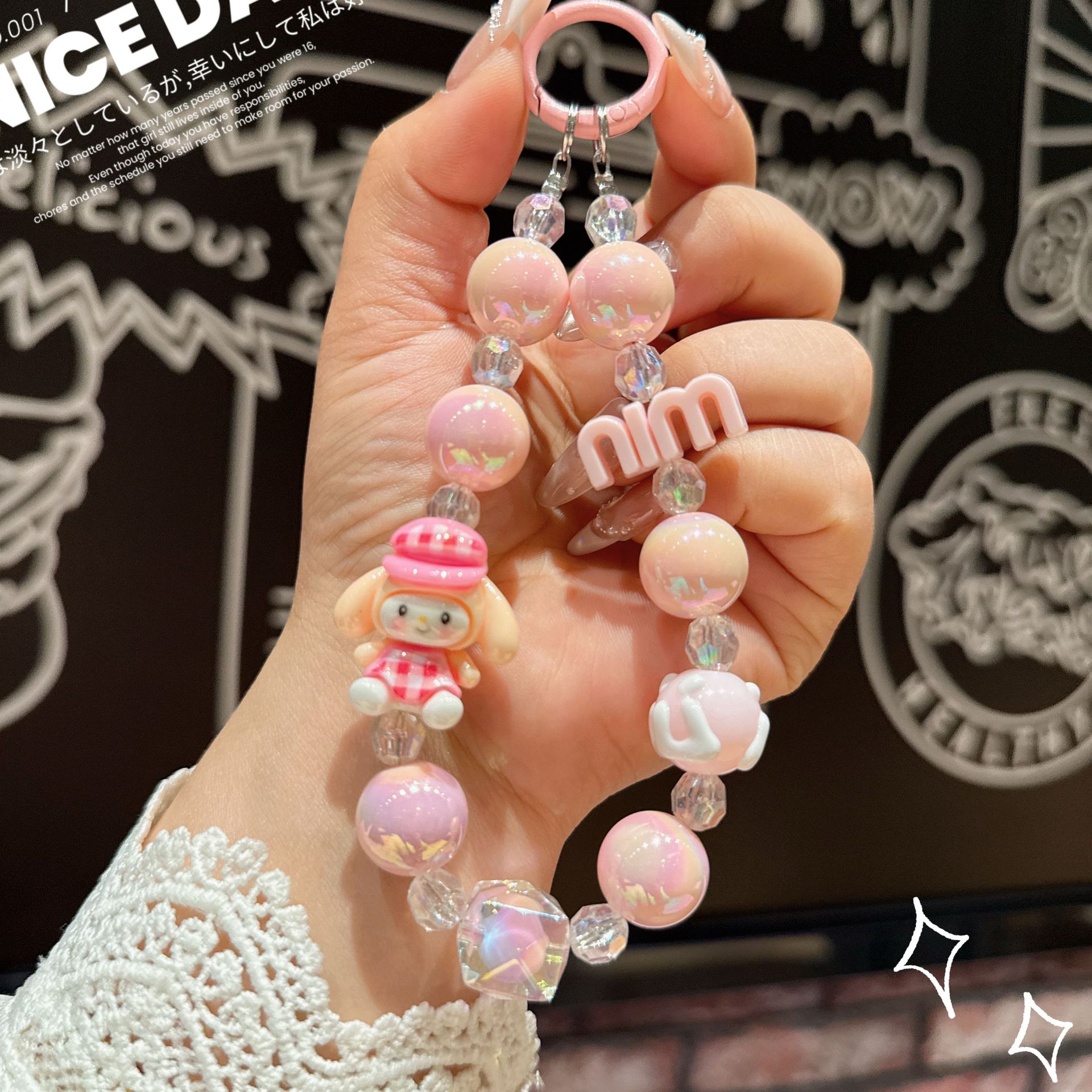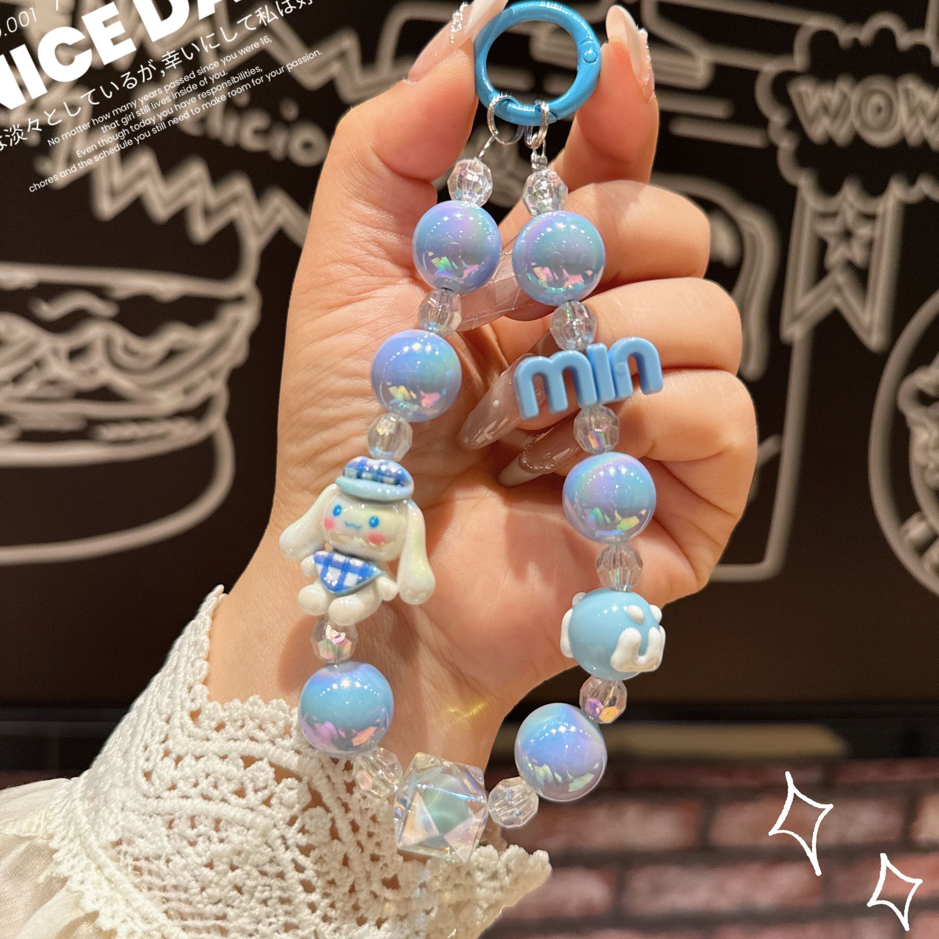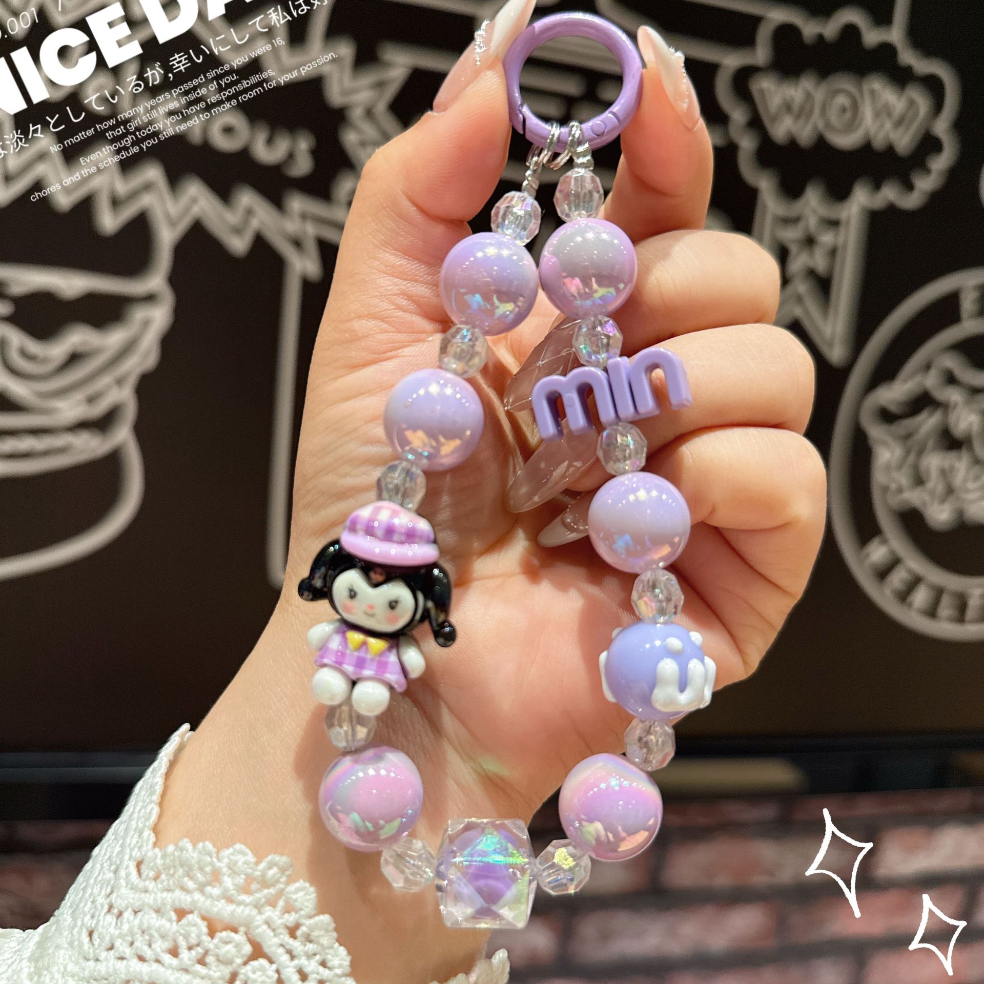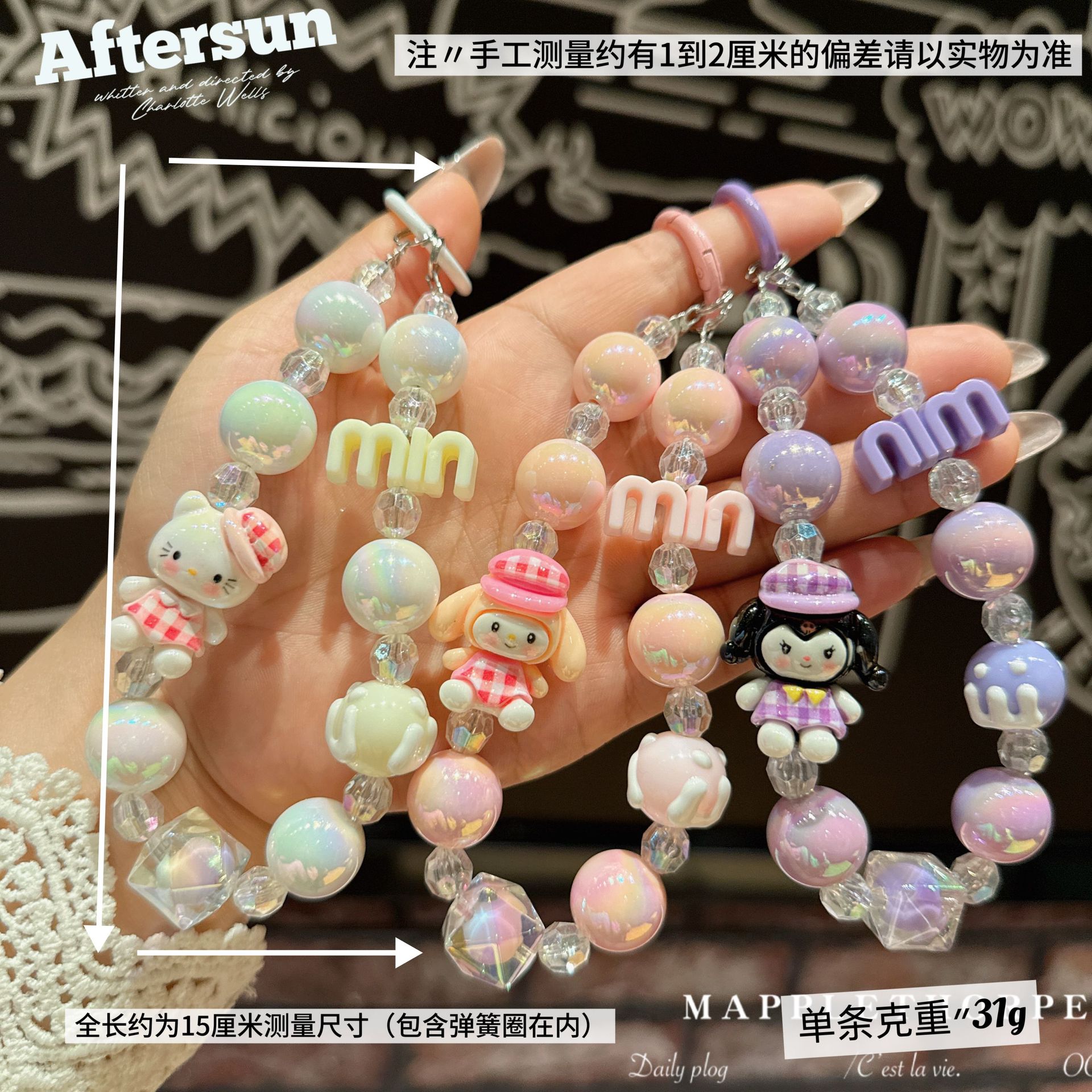 新款亚克力三丽鸥串珠手机链小红书同款min字母汽车钥匙链手机壳