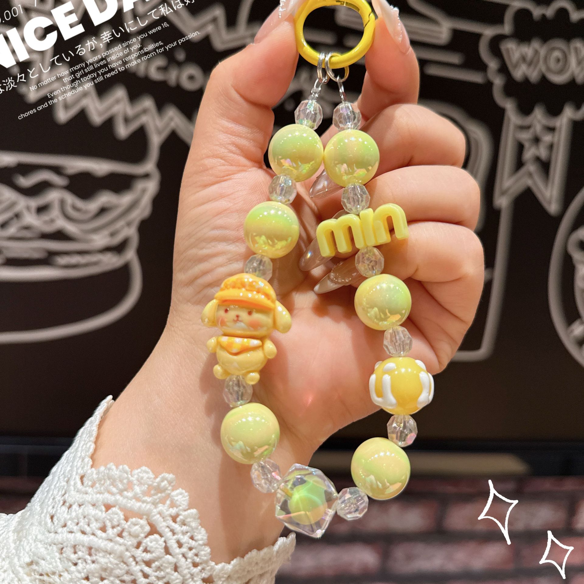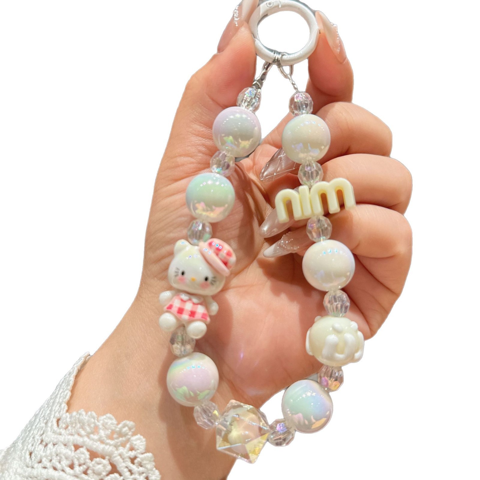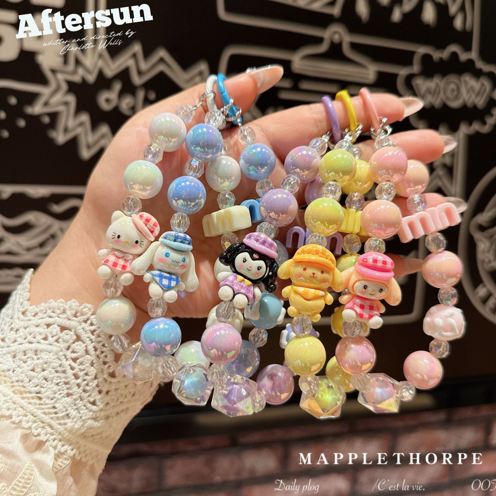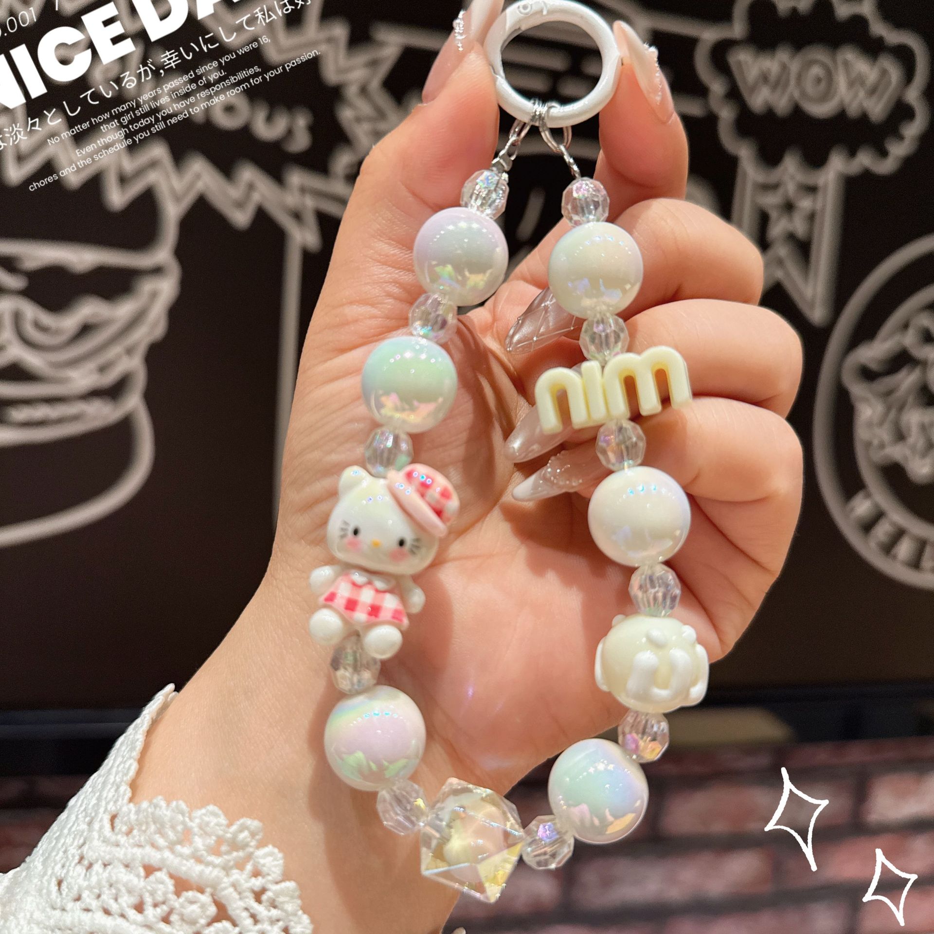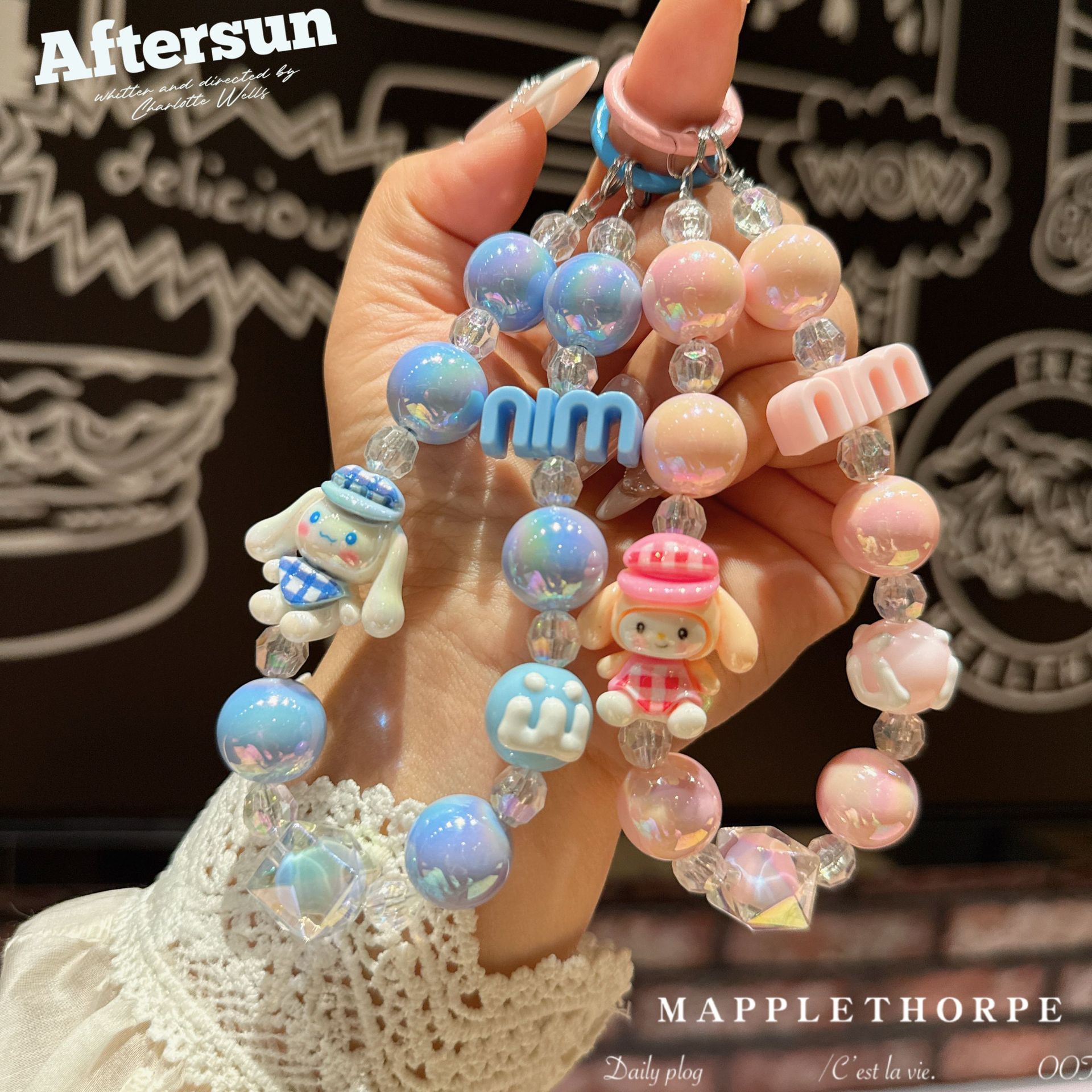 新款亚克力三丽鸥串珠手机链小红书同款min字母汽车钥匙链手机壳