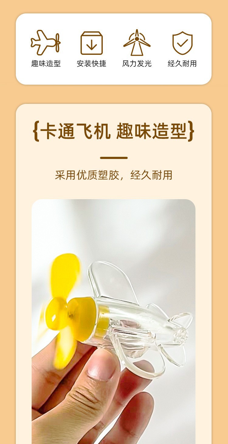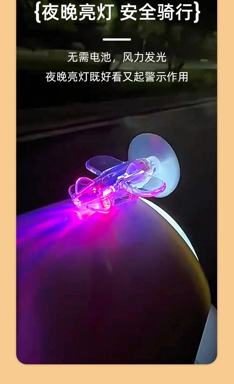 电动车摩托车风能小飞机风力发电LED亮光彩灯车载摆件装饰品汽车