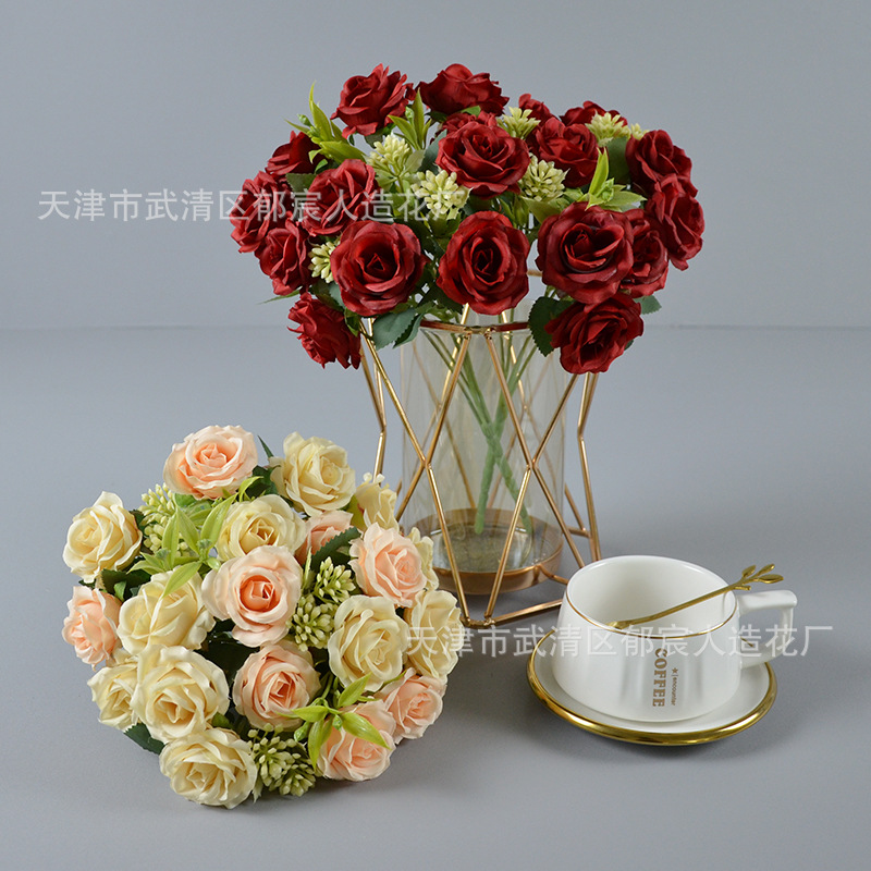 仿真花奥斯玫瑰把花10头小玫瑰花束儿童舞蹈手持花礼品盒花盒配花