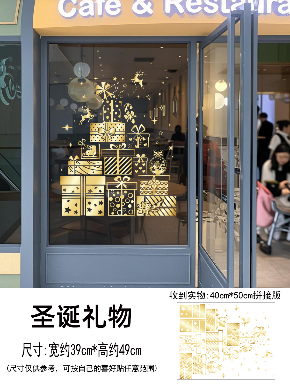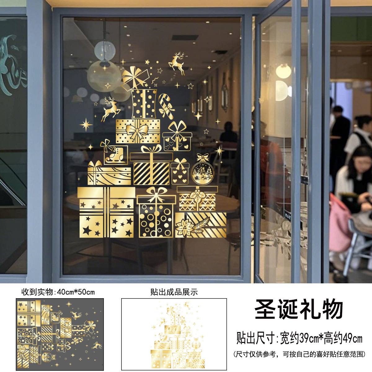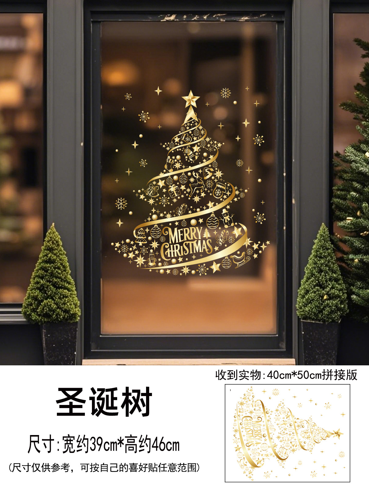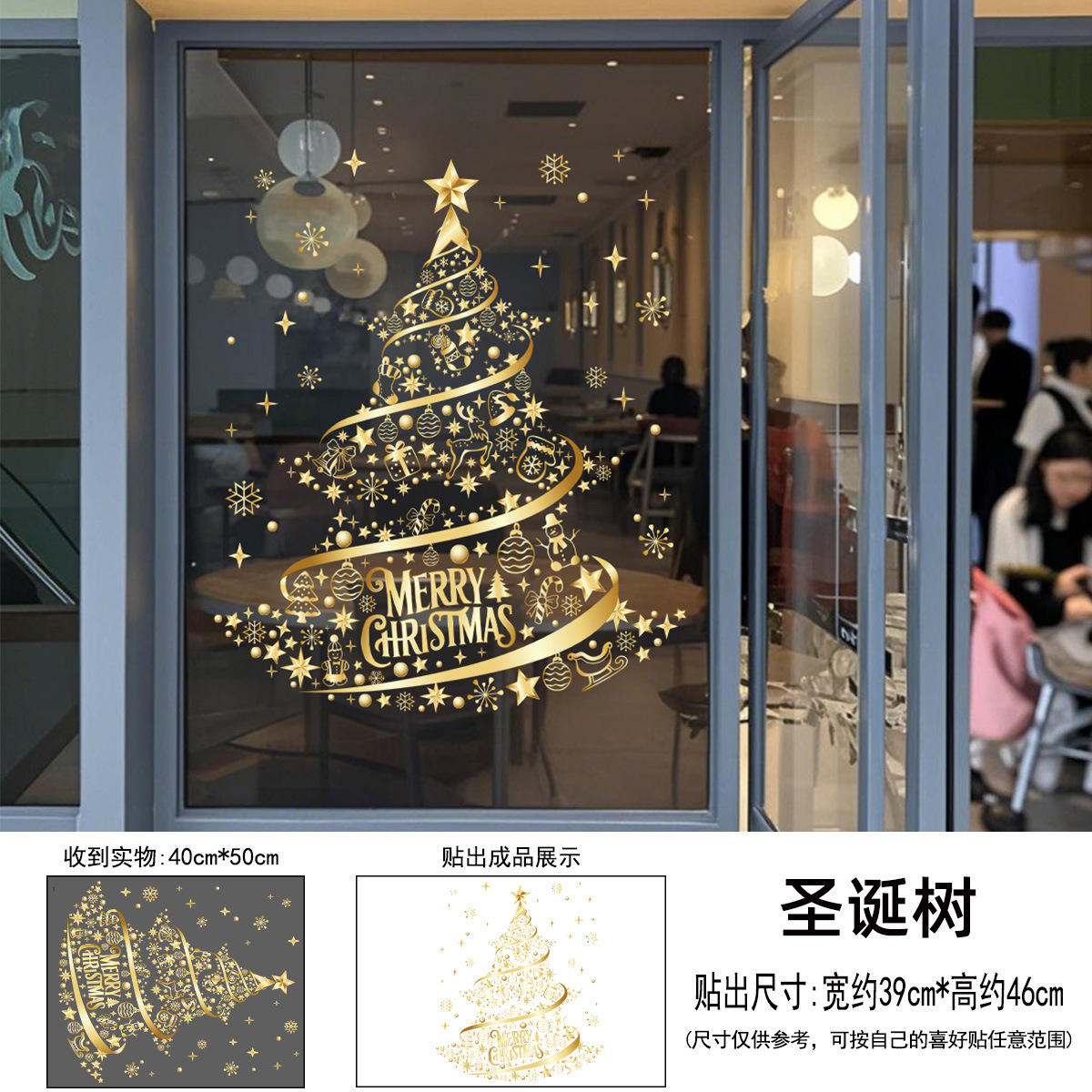 2026金色圣诞树圣诞礼物静电玻璃窗贴圣诞节日玻璃推拉门装饰窗贴