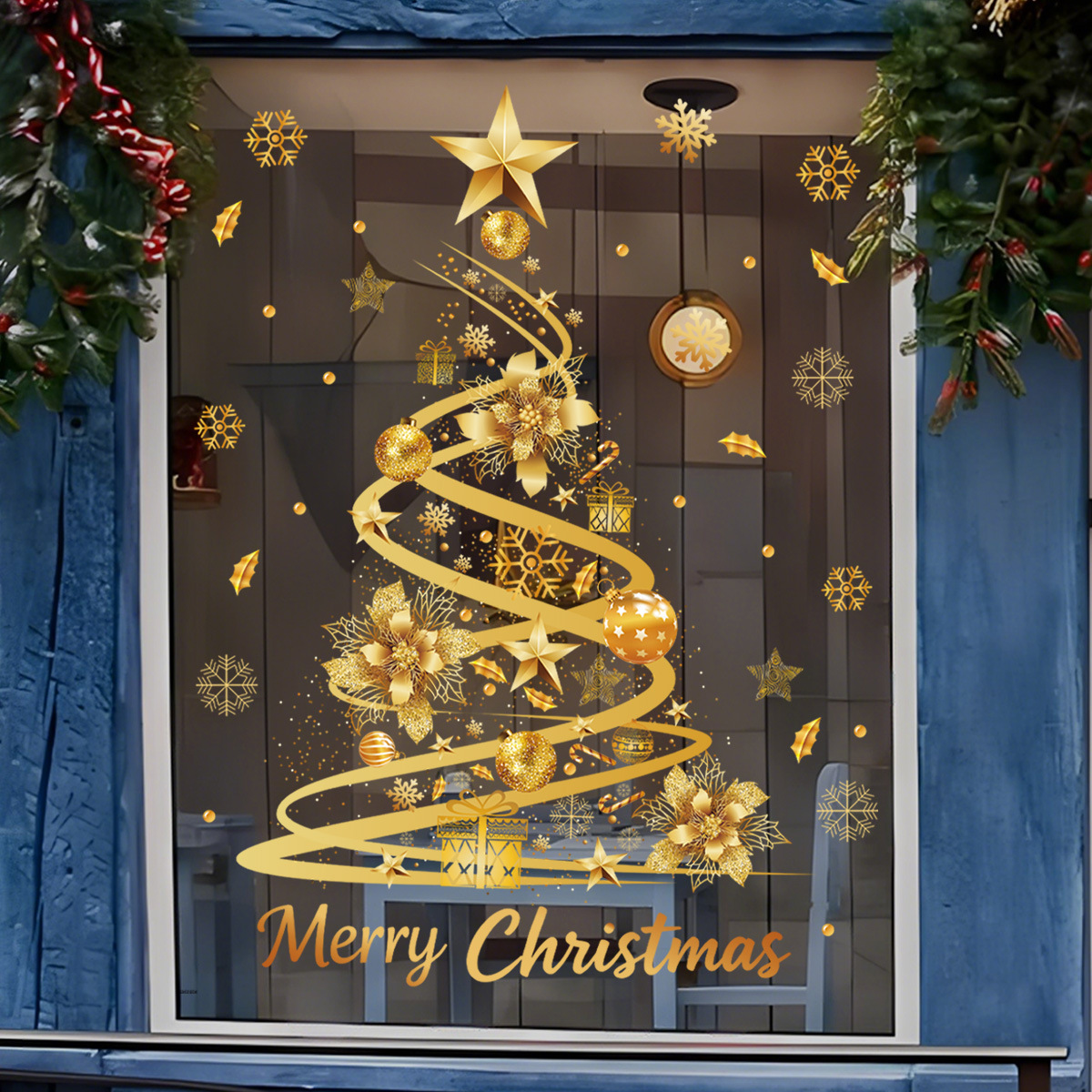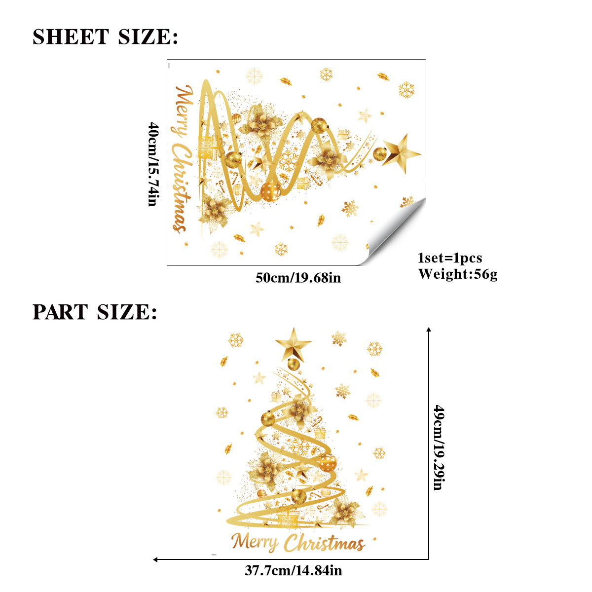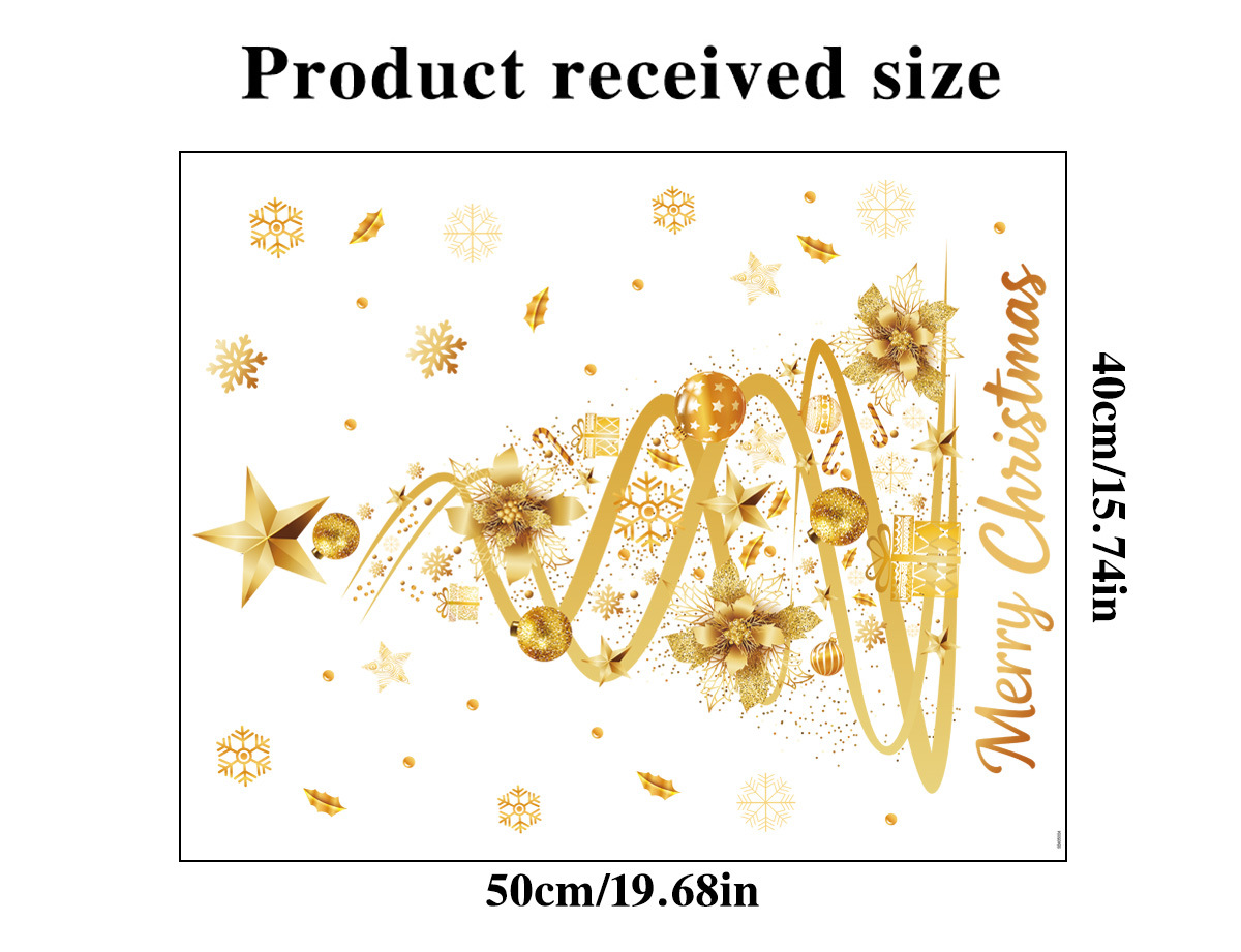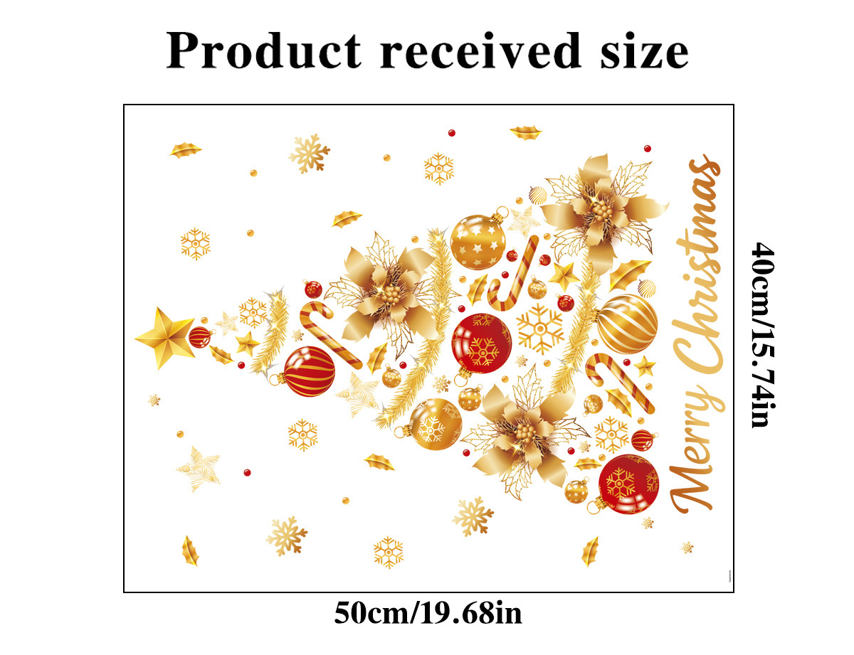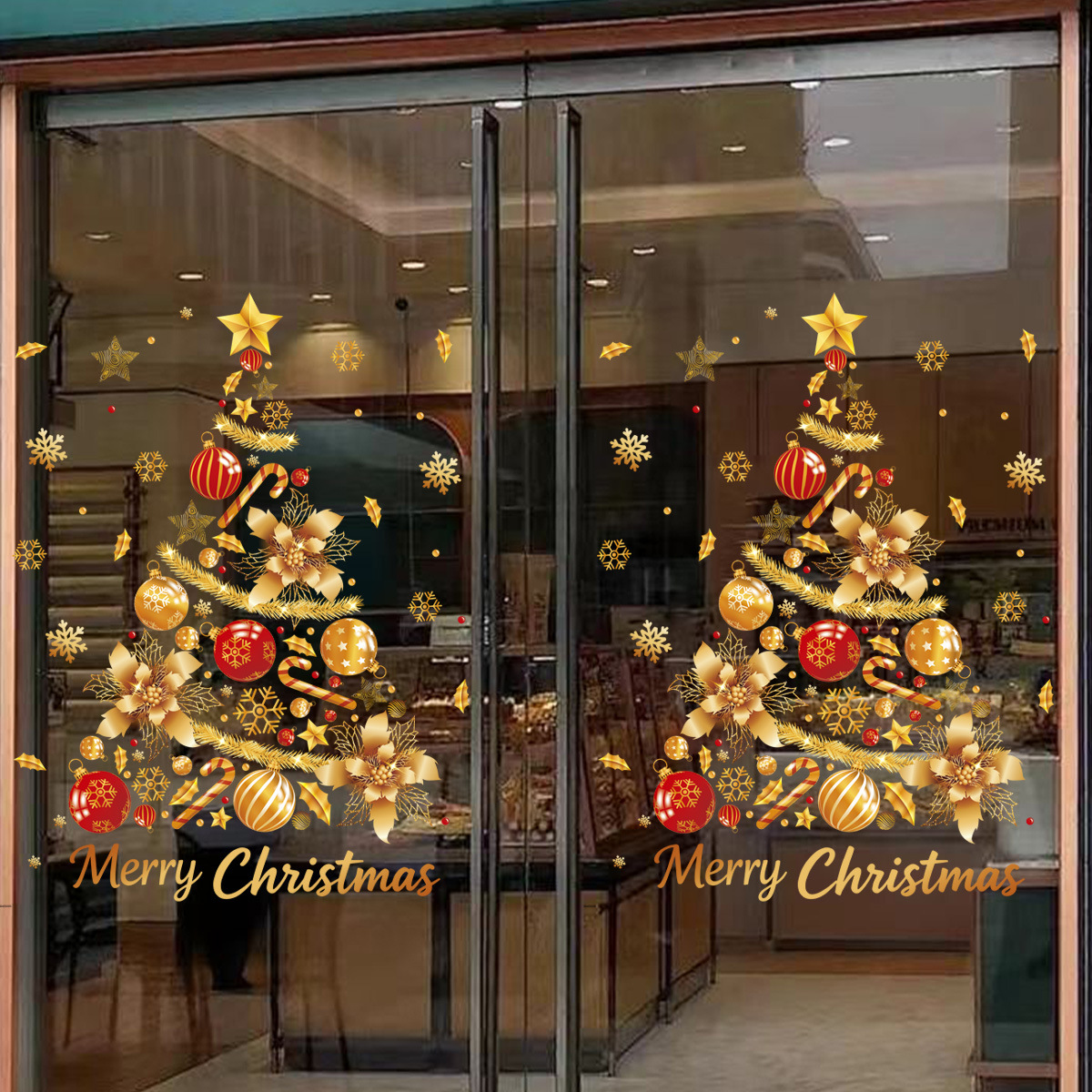 2026金色圣诞树圣诞礼物静电玻璃窗贴圣诞节日玻璃推拉门装饰窗贴
