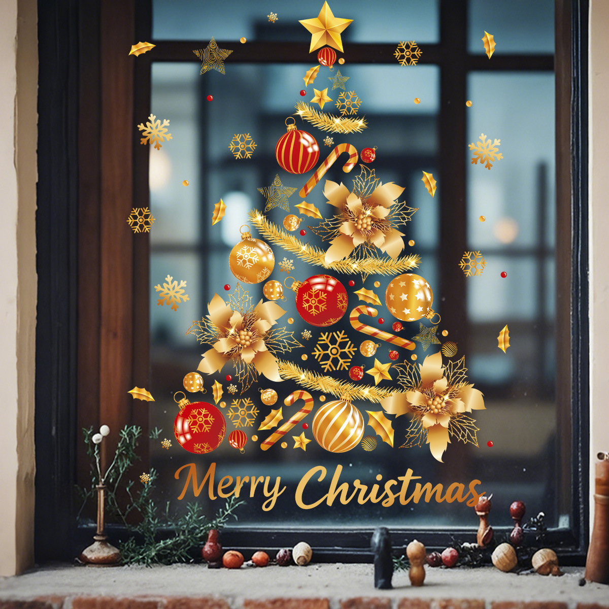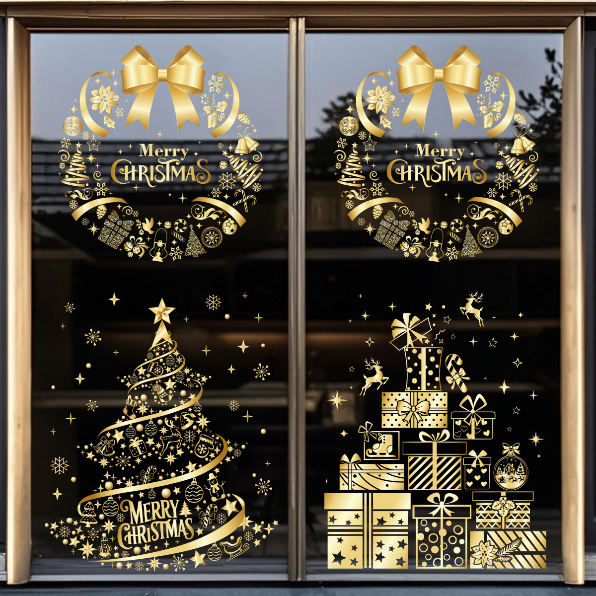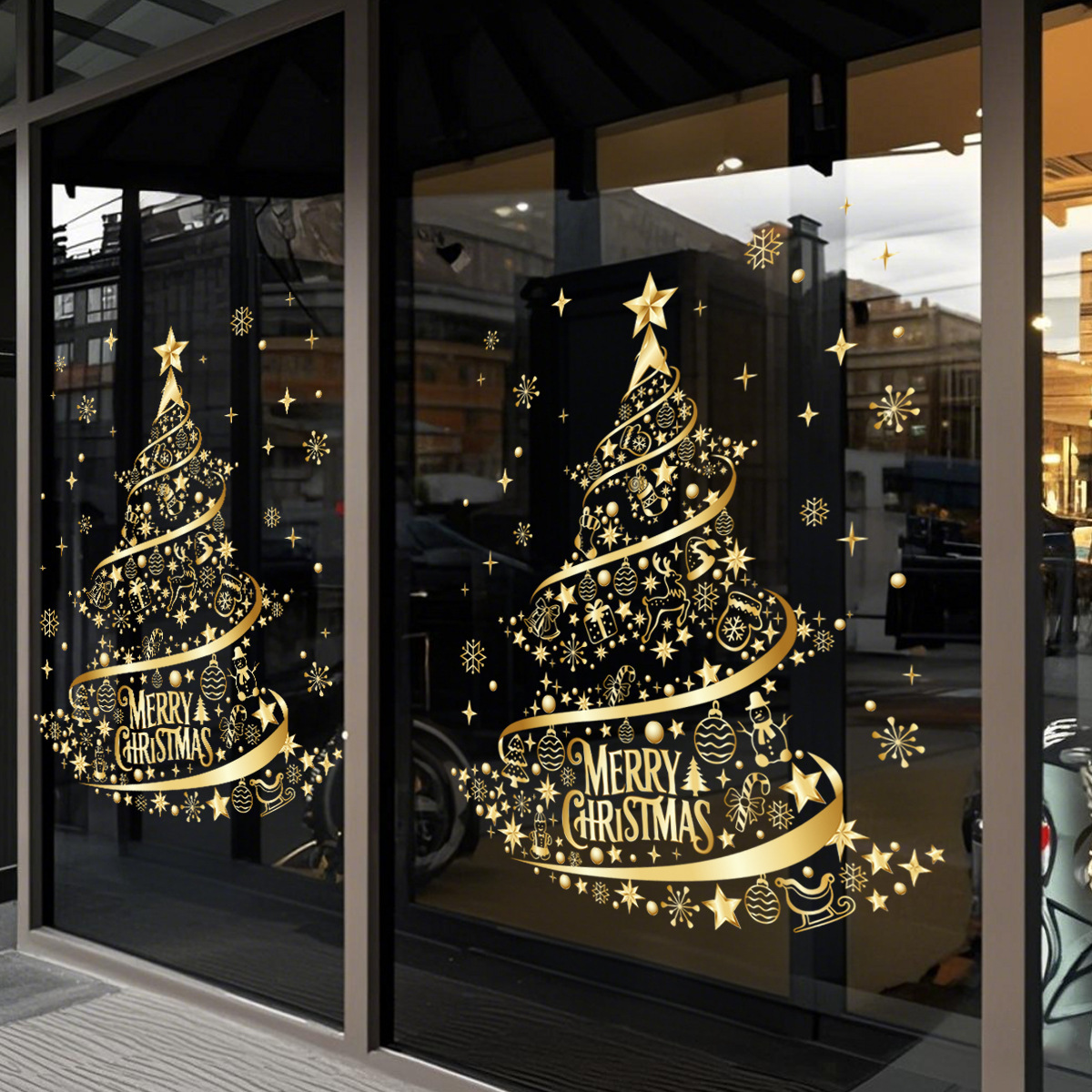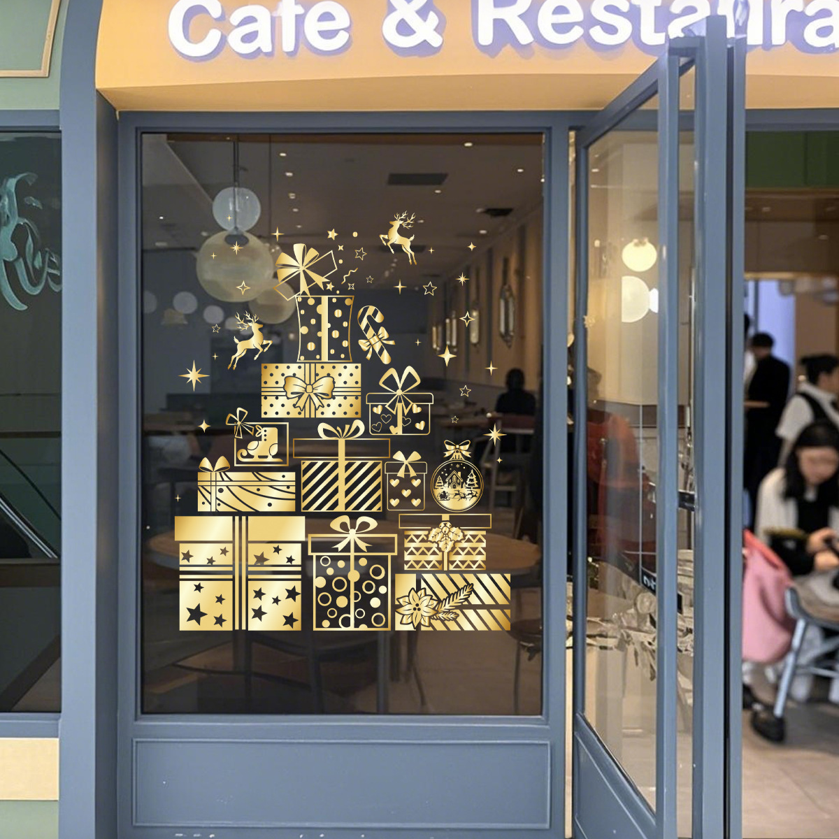2026金色圣诞树圣诞礼物静电玻璃窗贴圣诞节日玻璃推拉门装饰窗贴