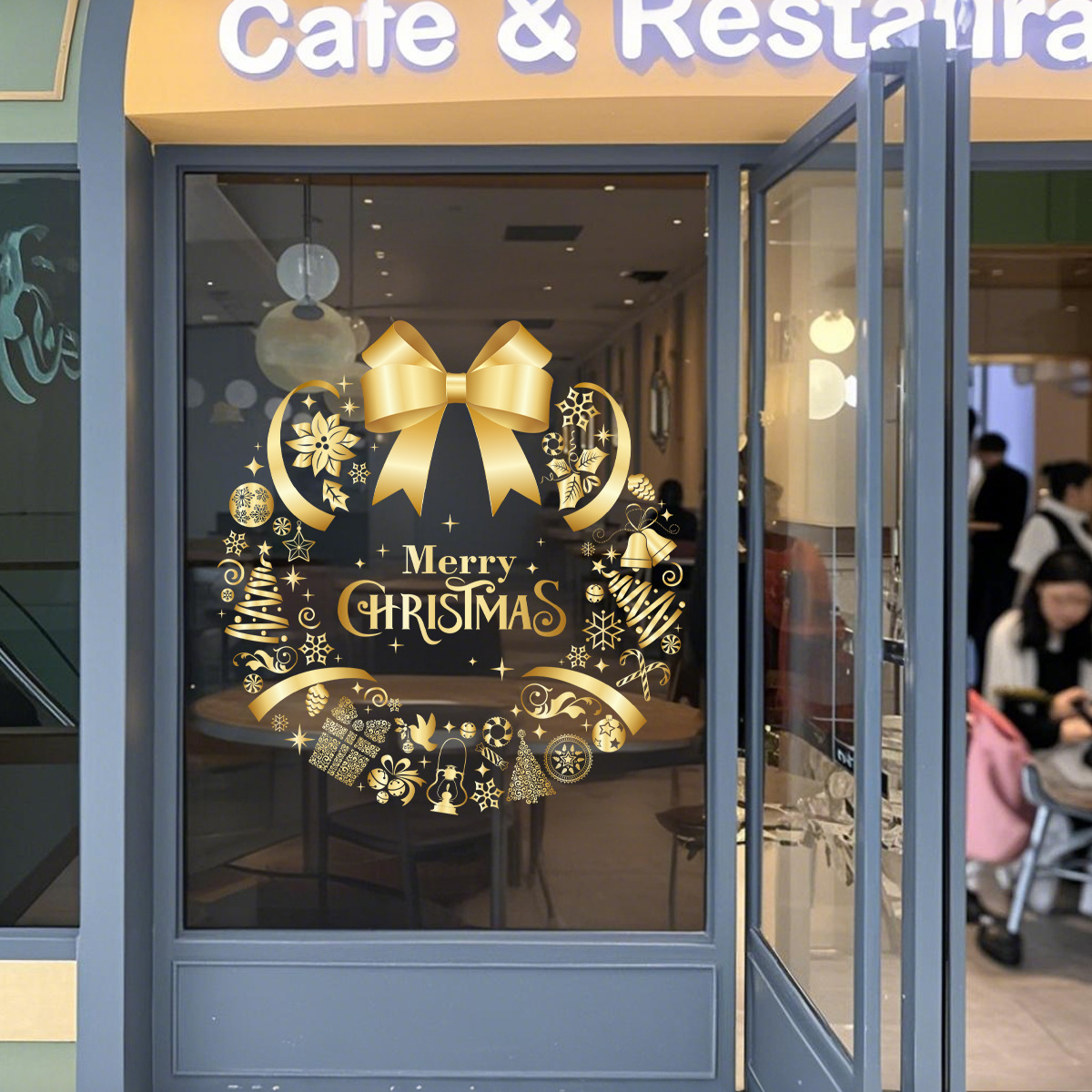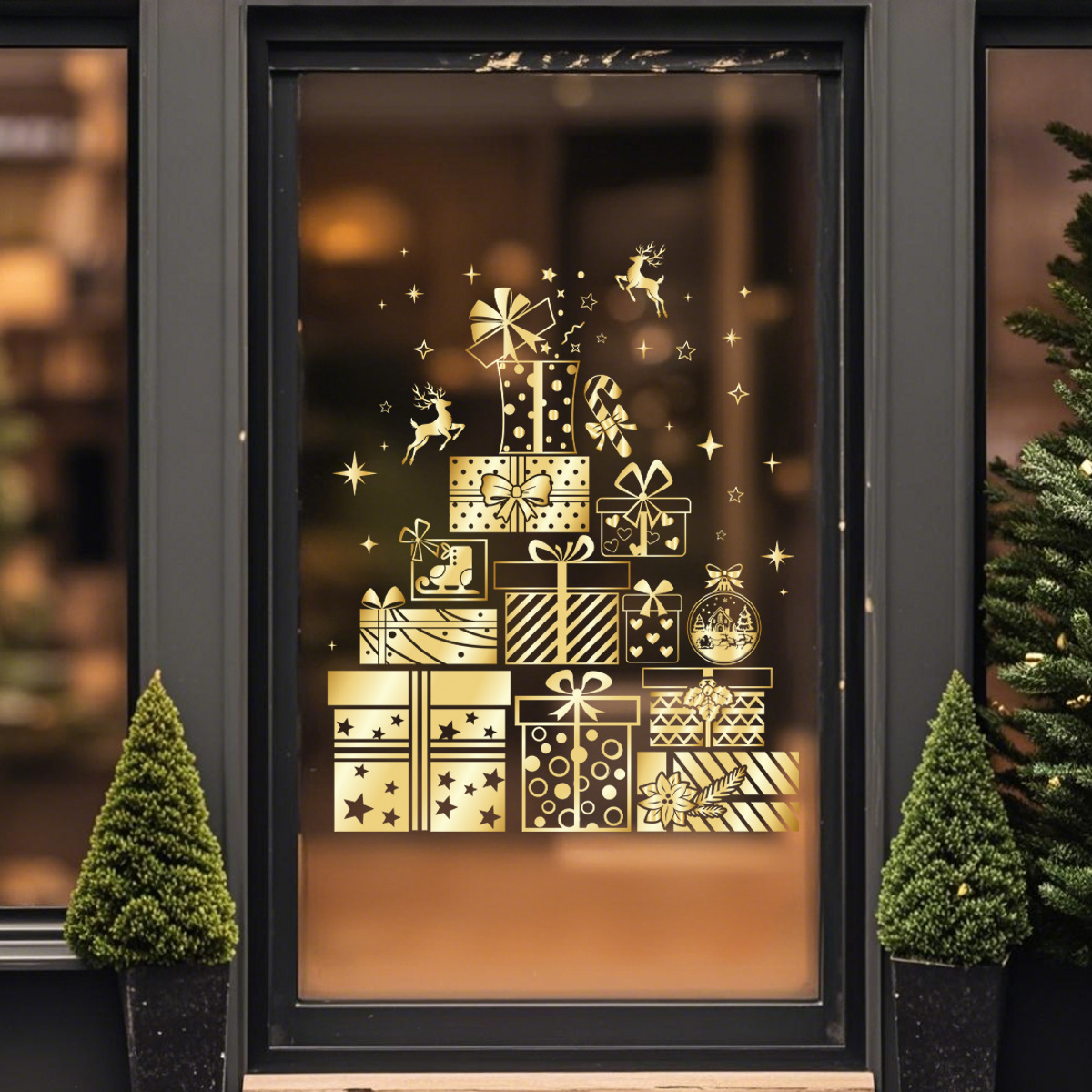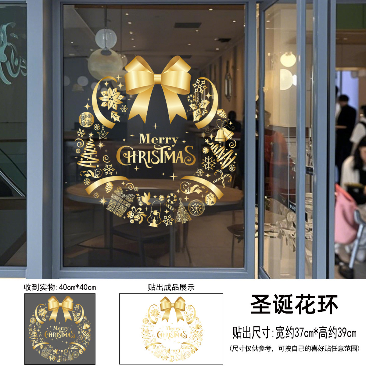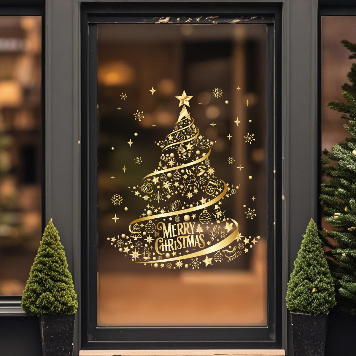 2026金色圣诞树圣诞礼物静电玻璃窗贴圣诞节日玻璃推拉门装饰窗贴