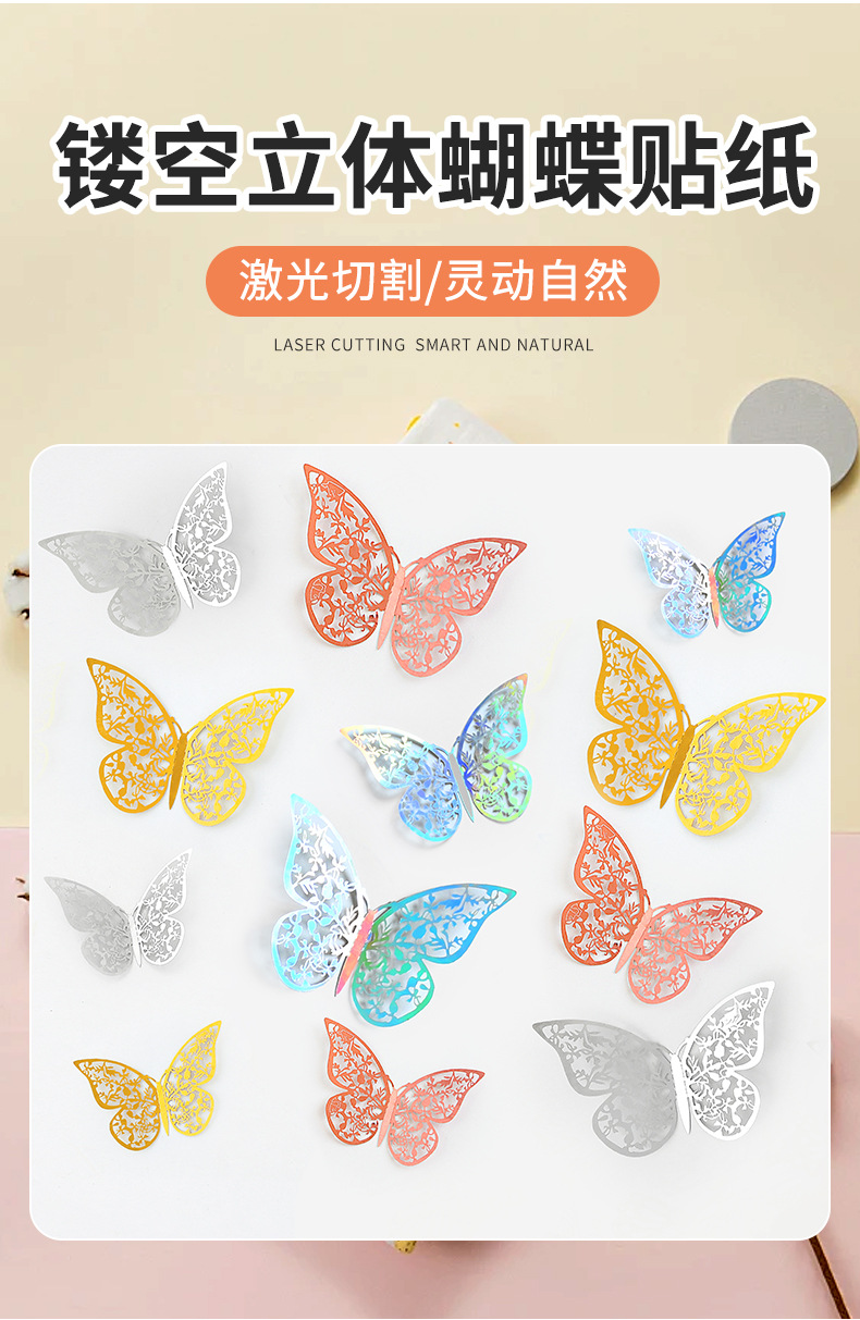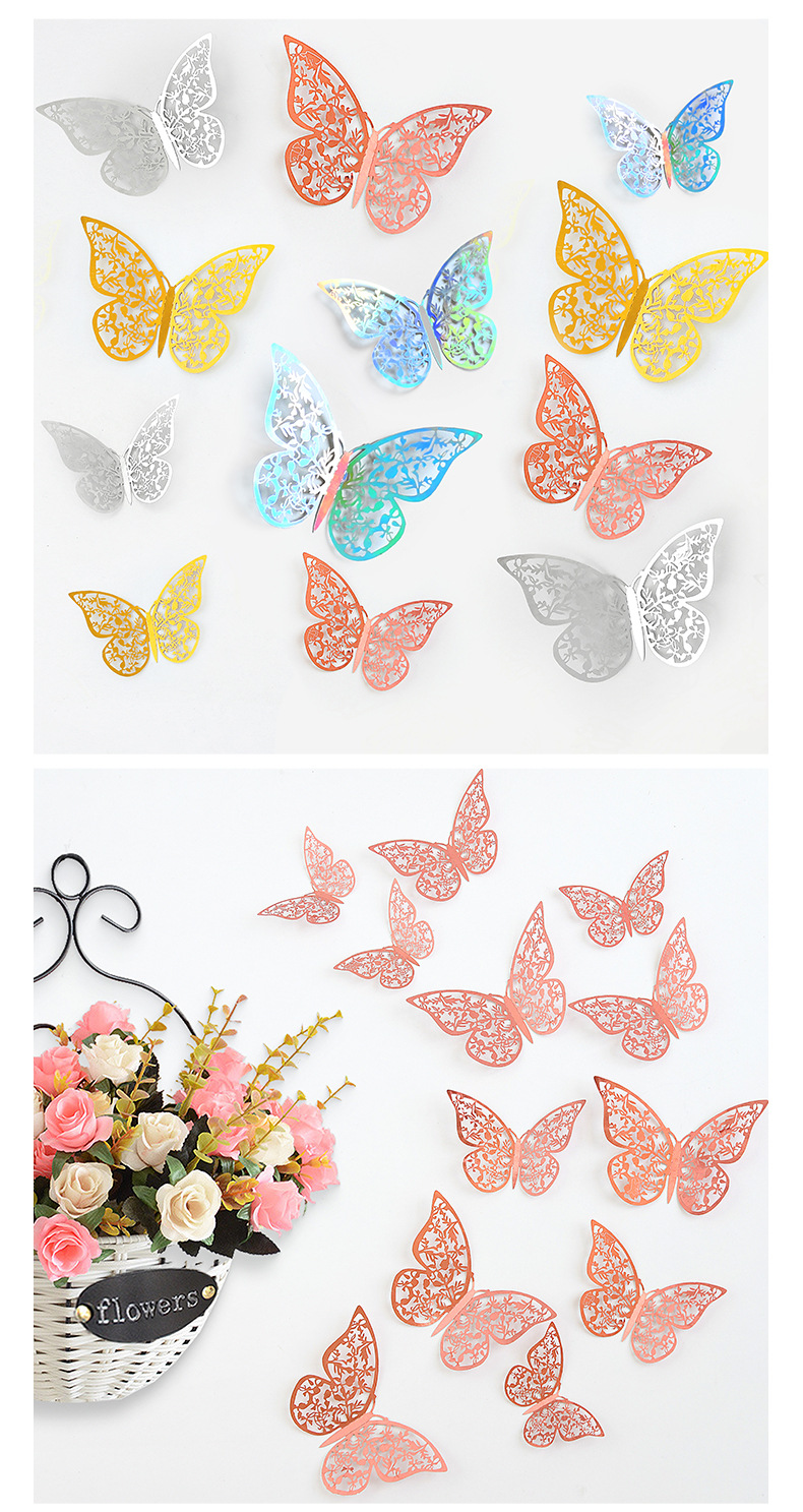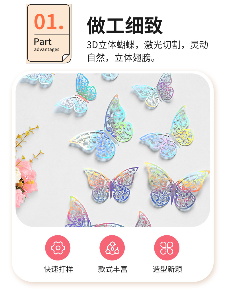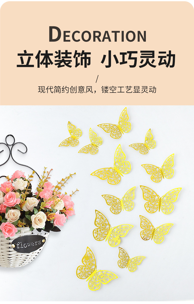 12片装蝴蝶墙贴房间卧室宿舍墙壁美化幼儿园环境布置瓷砖