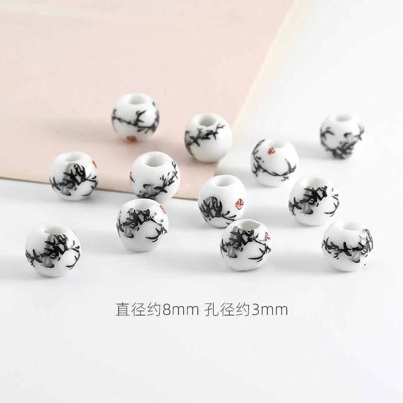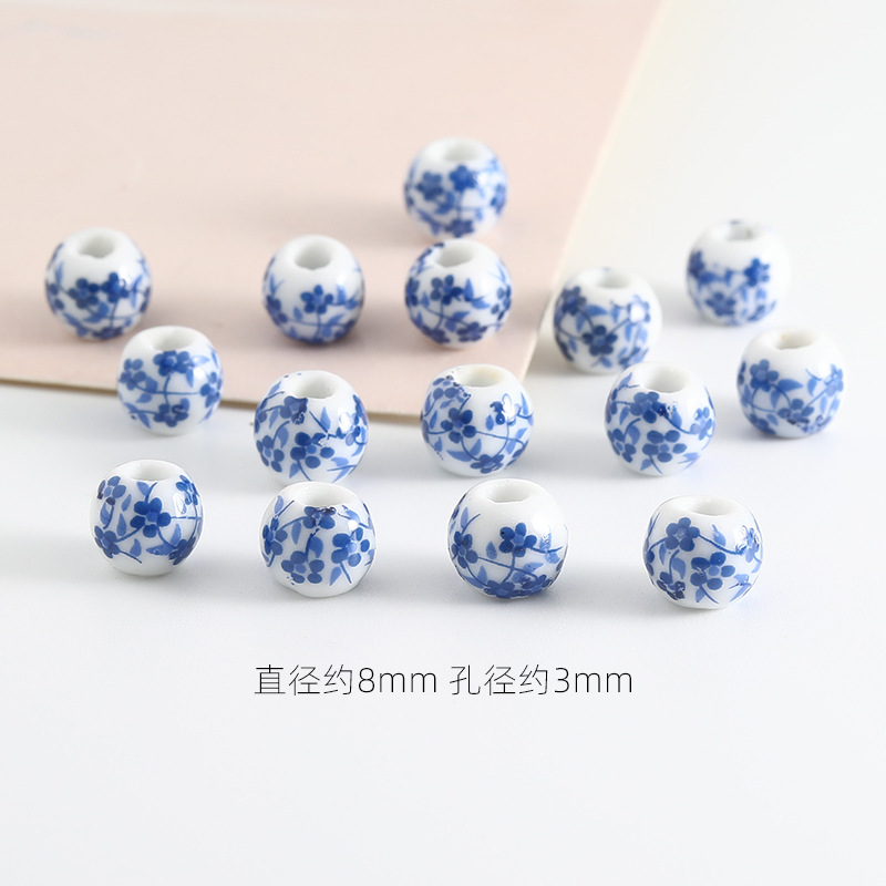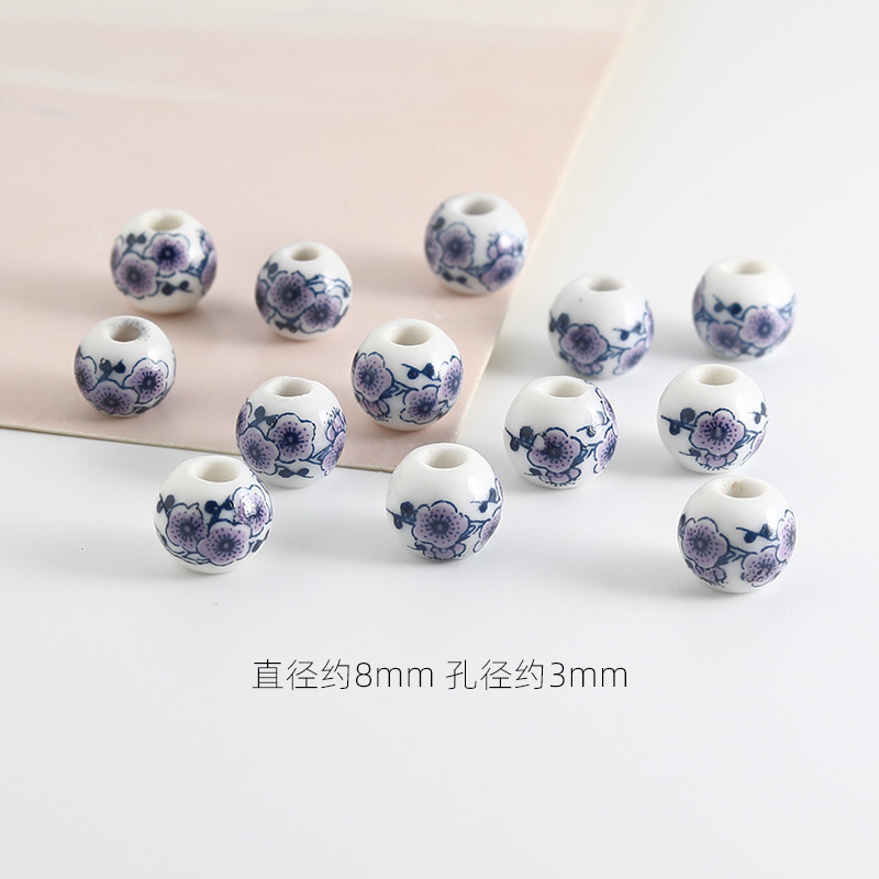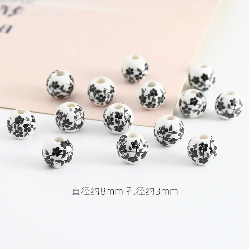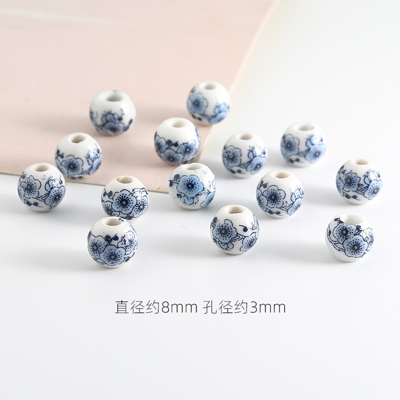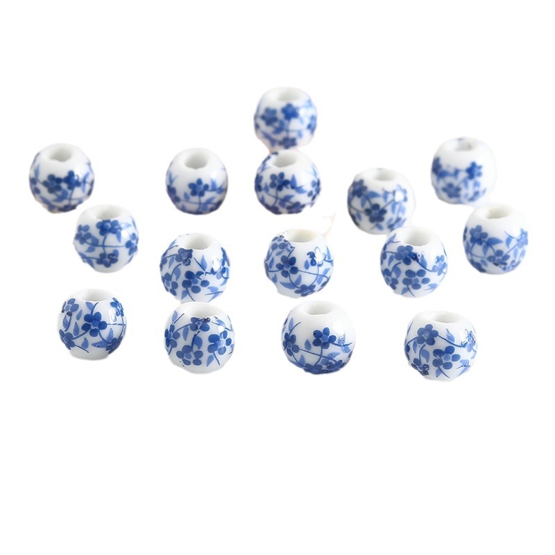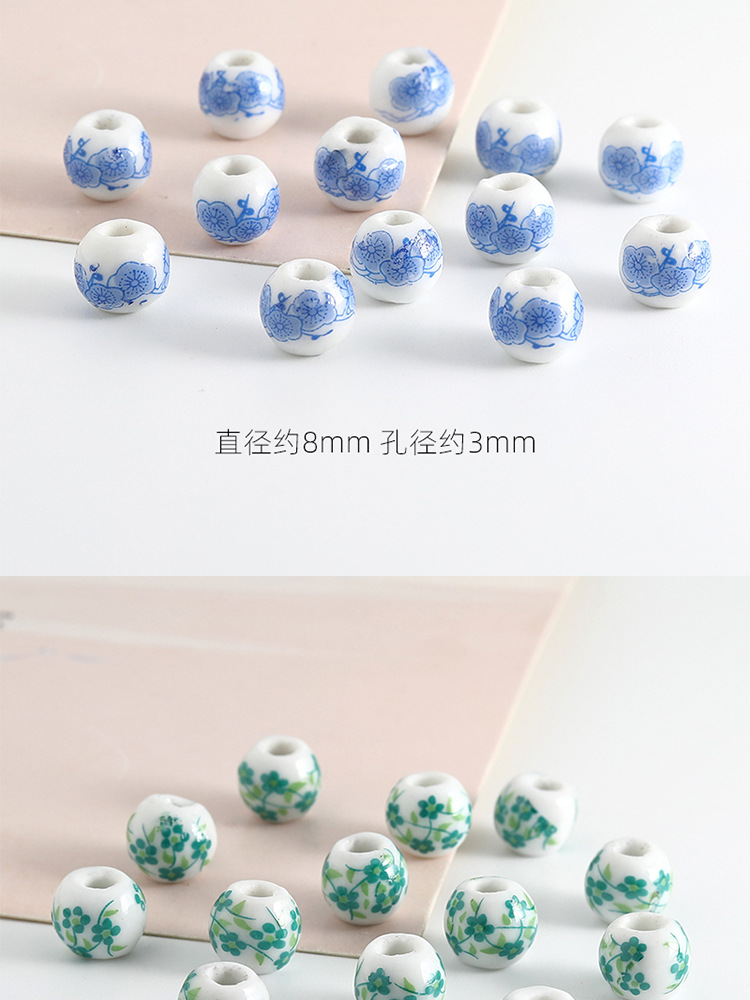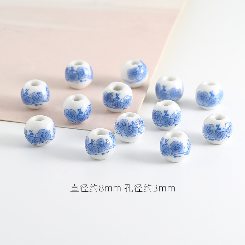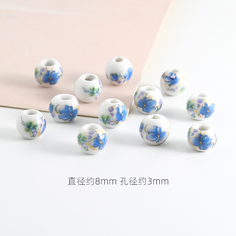 饰品配件青花陶瓷珠散珠景德镇贴花珠子diy材料手链手工配饰批发