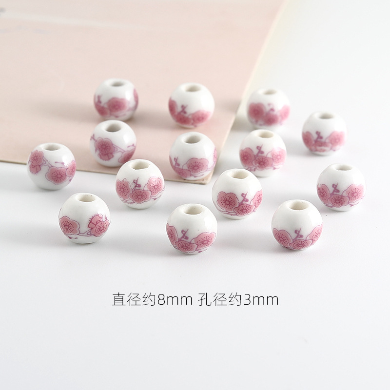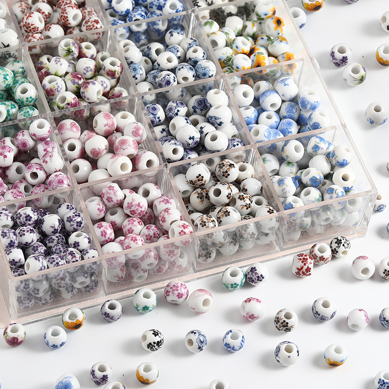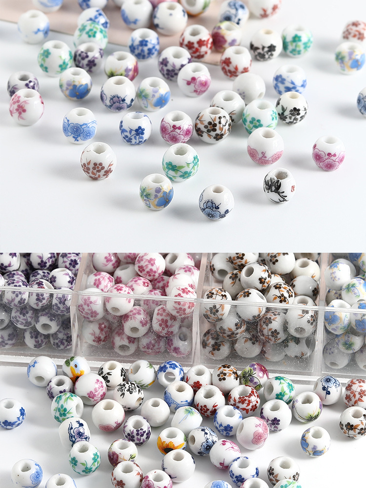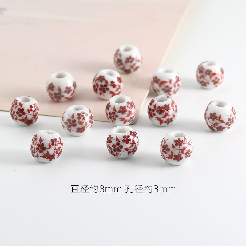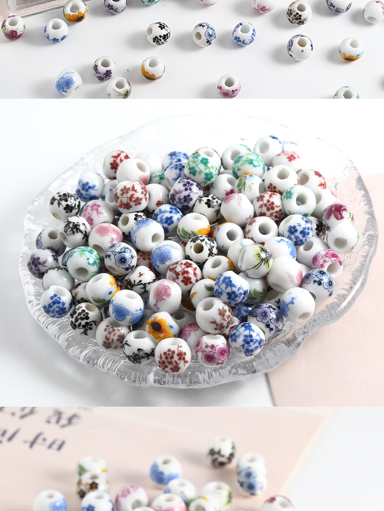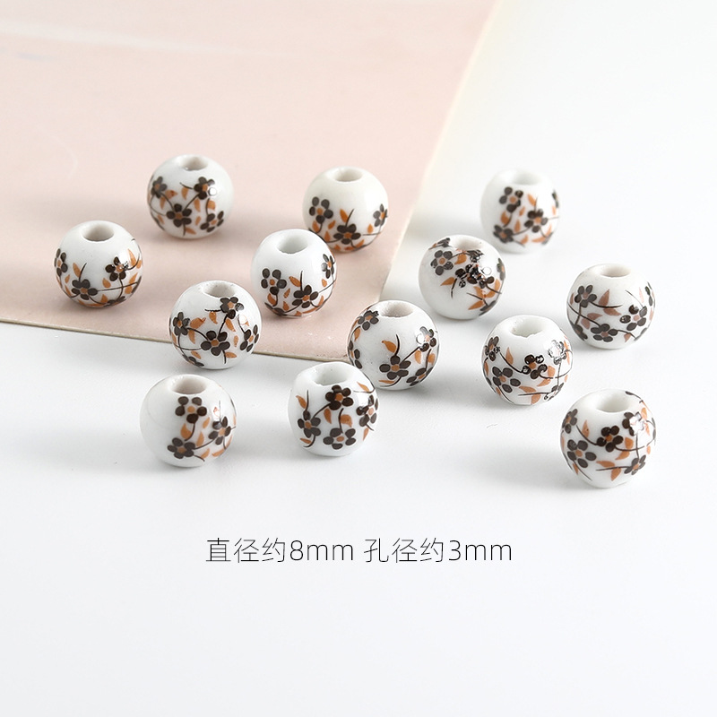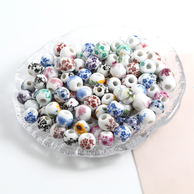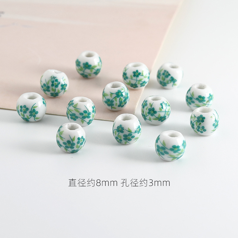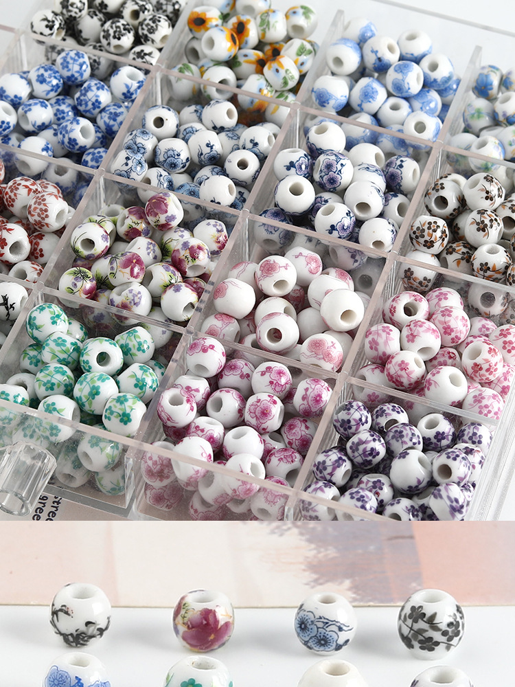 饰品配件青花陶瓷珠散珠景德镇贴花珠子diy材料手链手工配饰批发