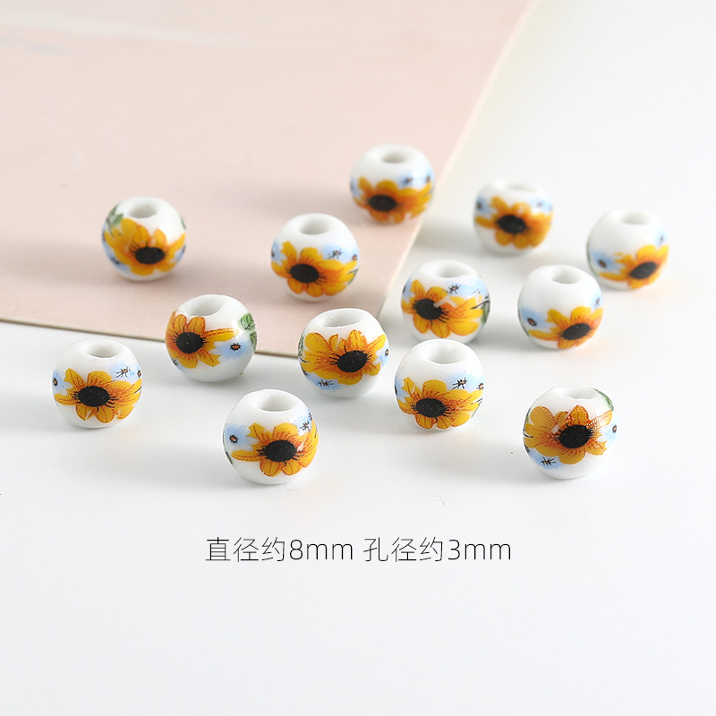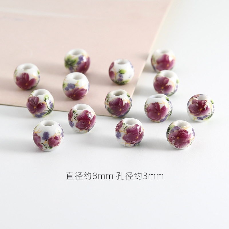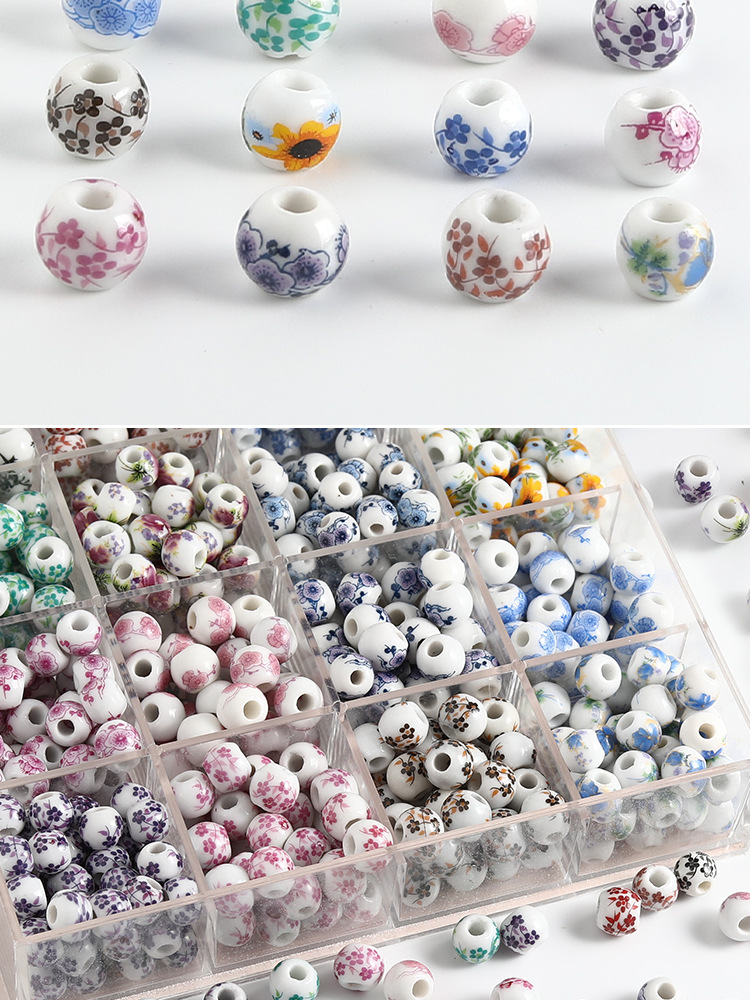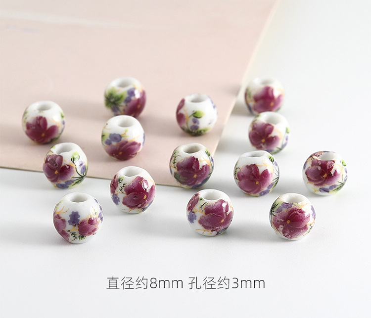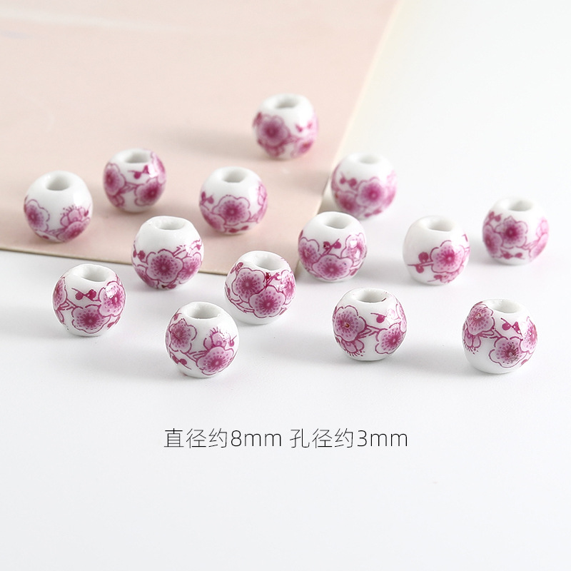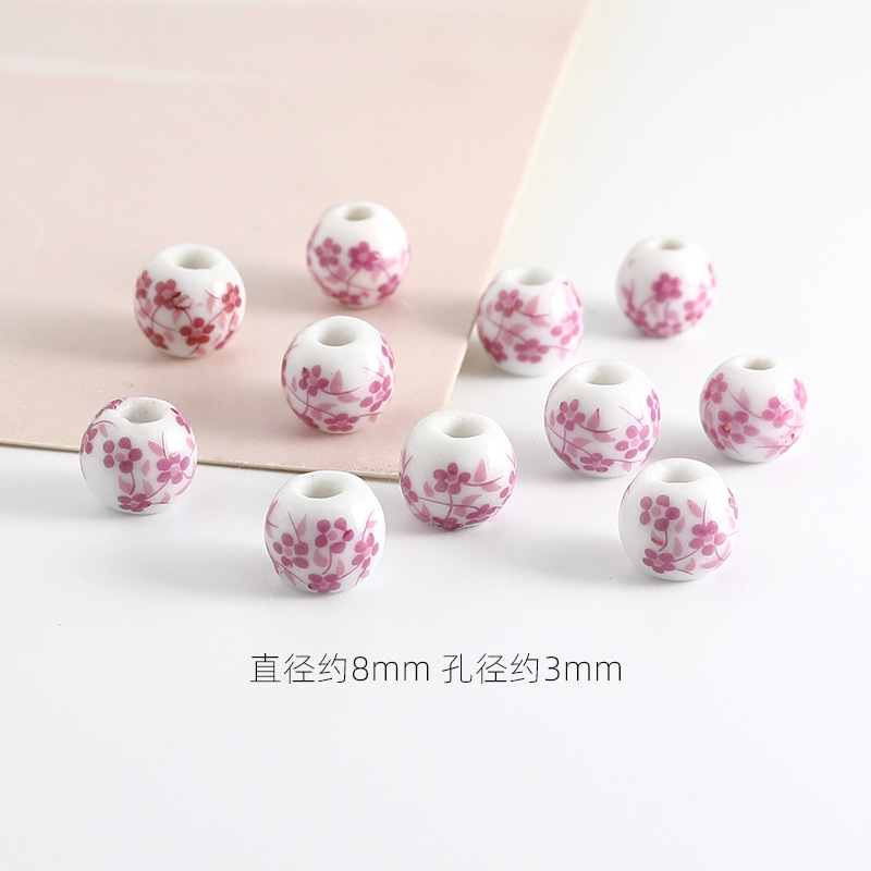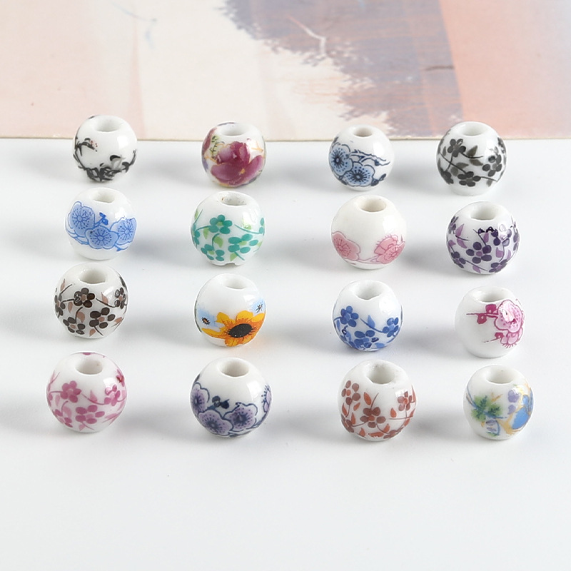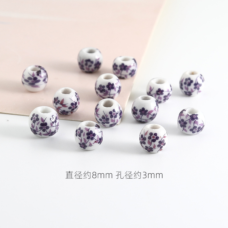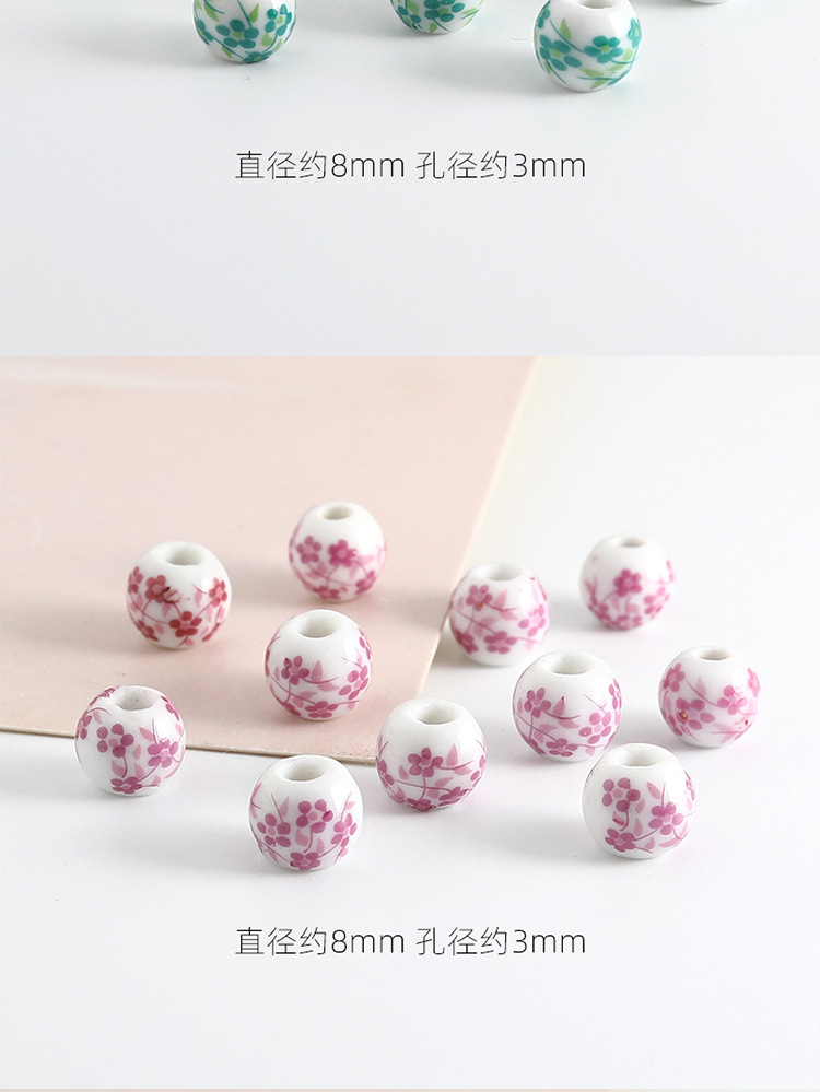 饰品配件青花陶瓷珠散珠景德镇贴花珠子diy材料手链手工配饰批发