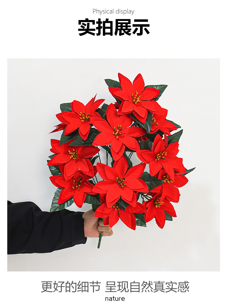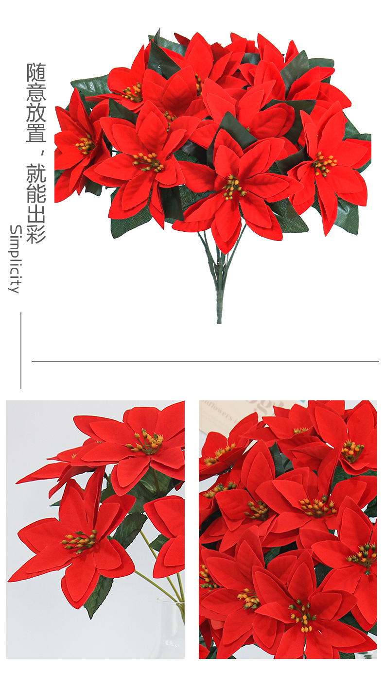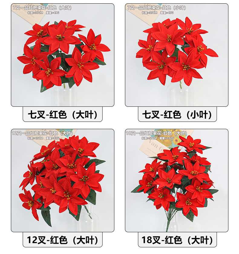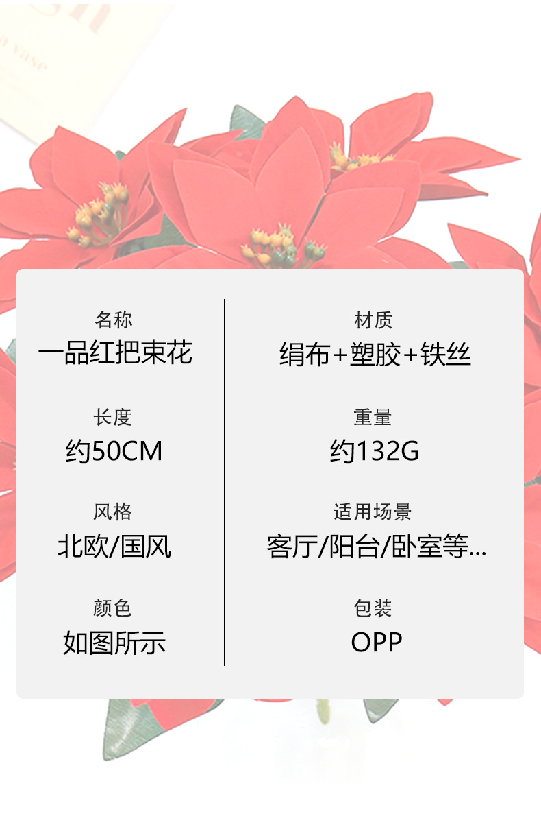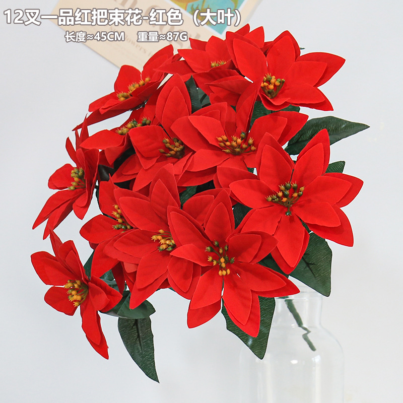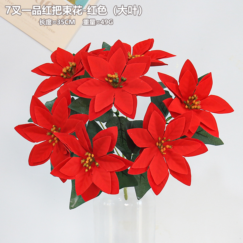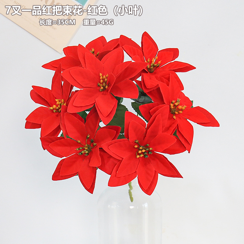 圣诞仿真花束一品红把束仿真绒布圣诞花家居布置装饰花5朵7朵假花