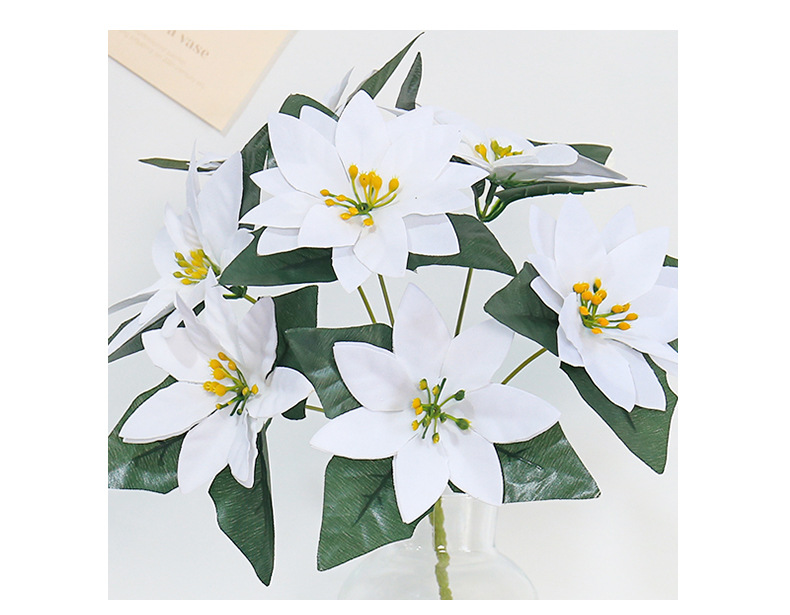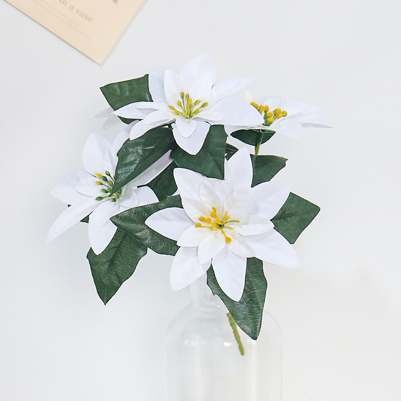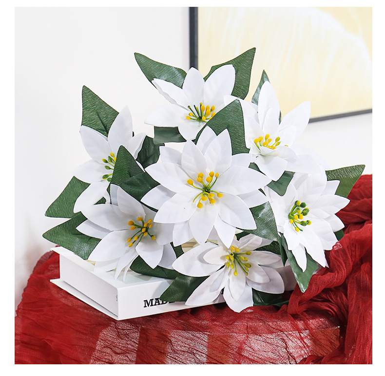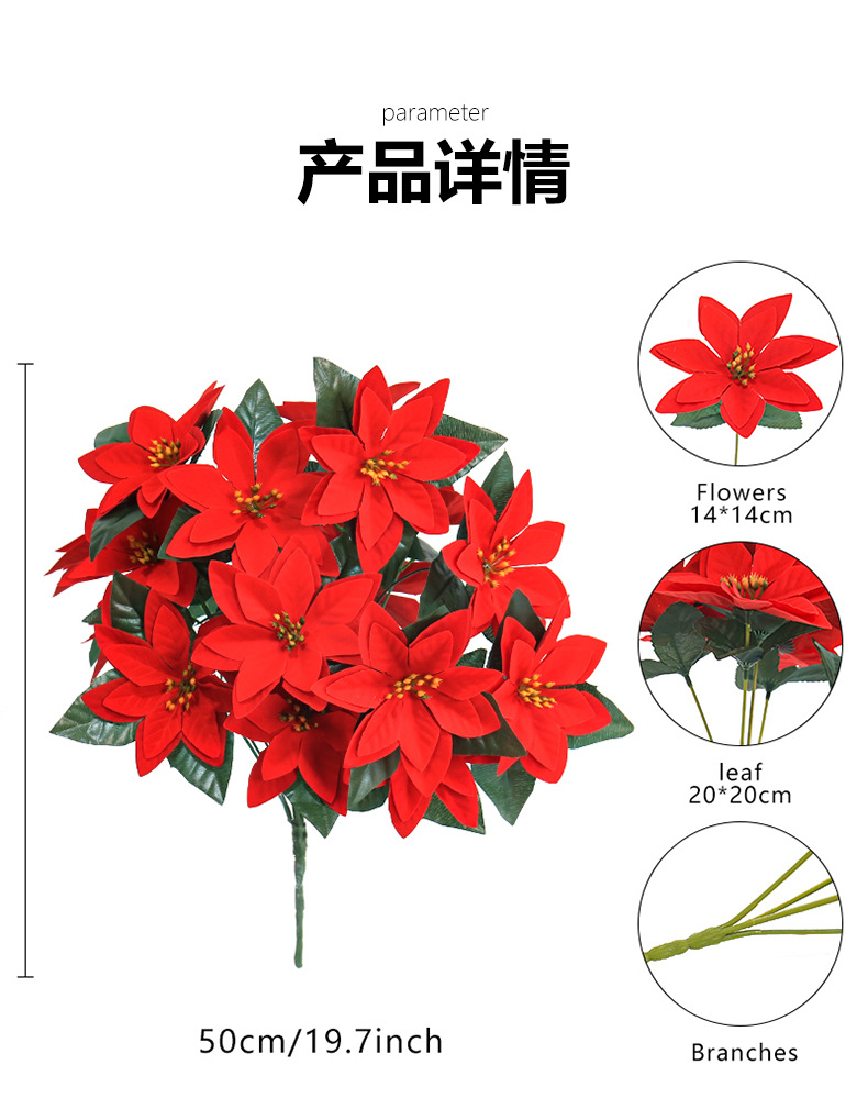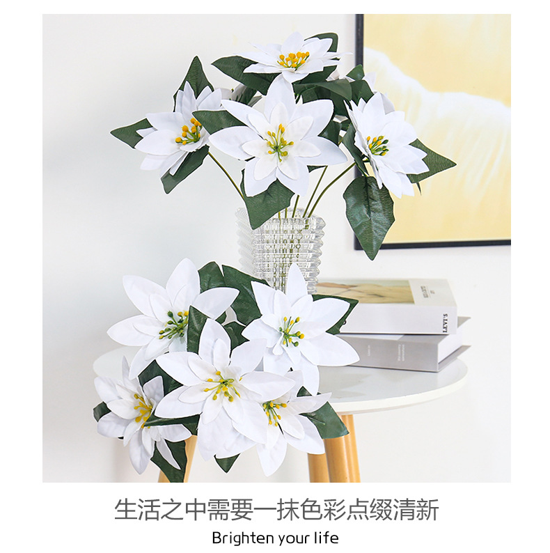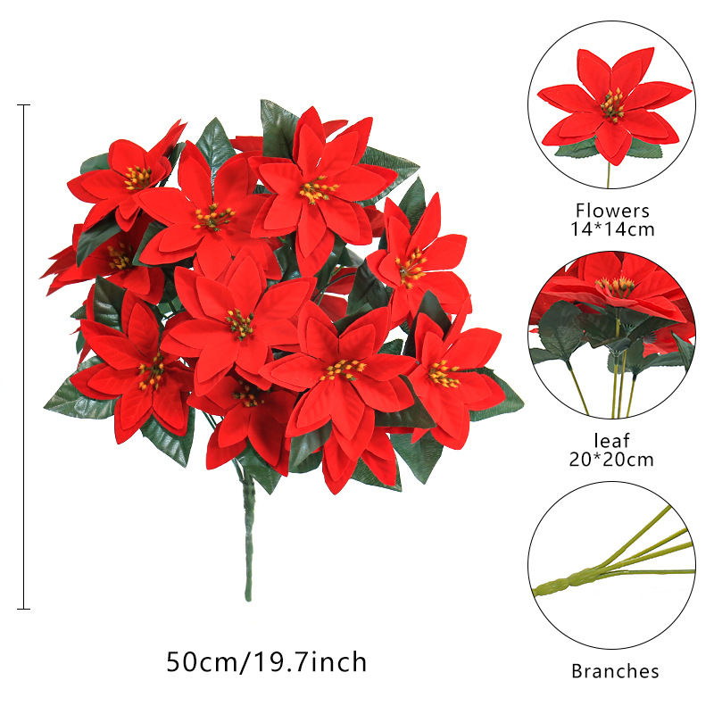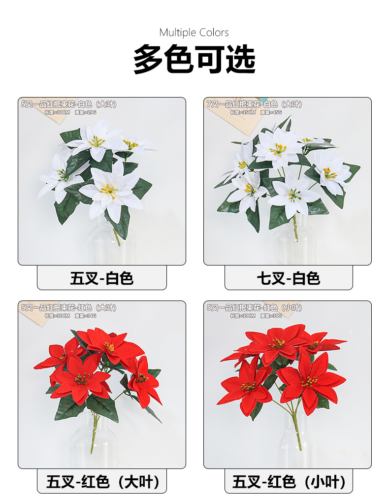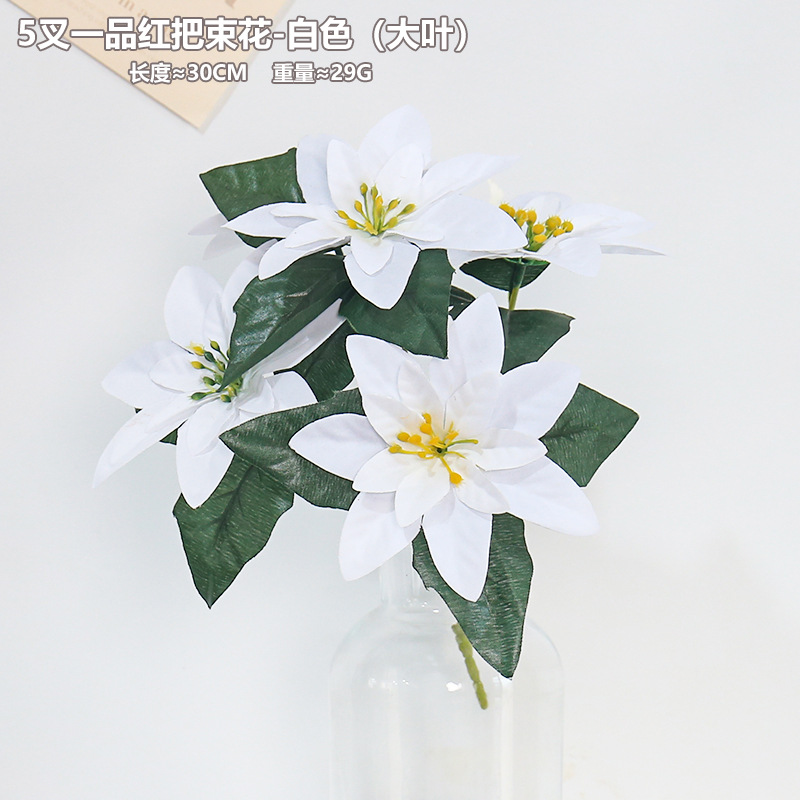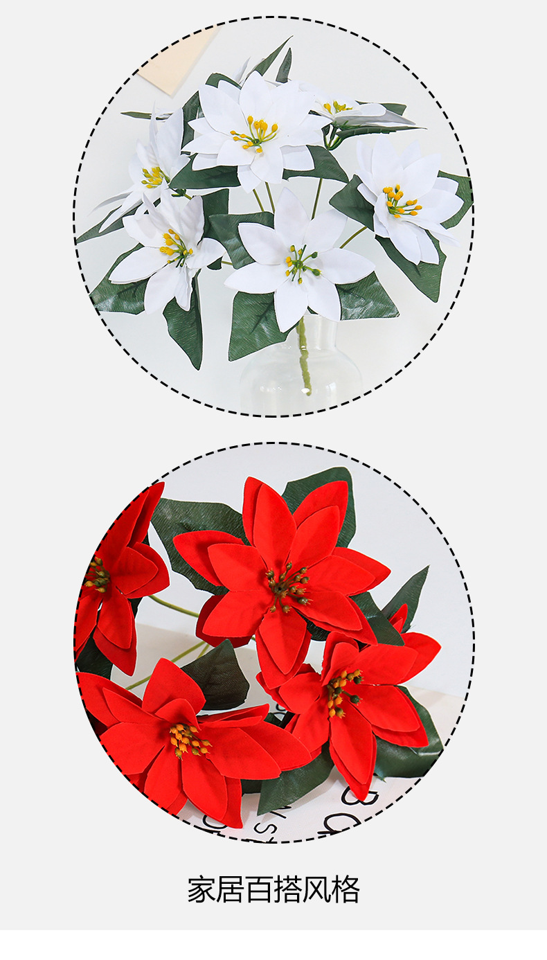 圣诞仿真花束一品红把束仿真绒布圣诞花家居布置装饰花5朵7朵假花