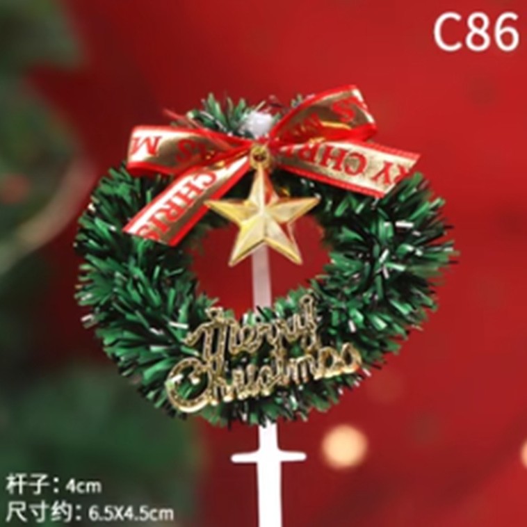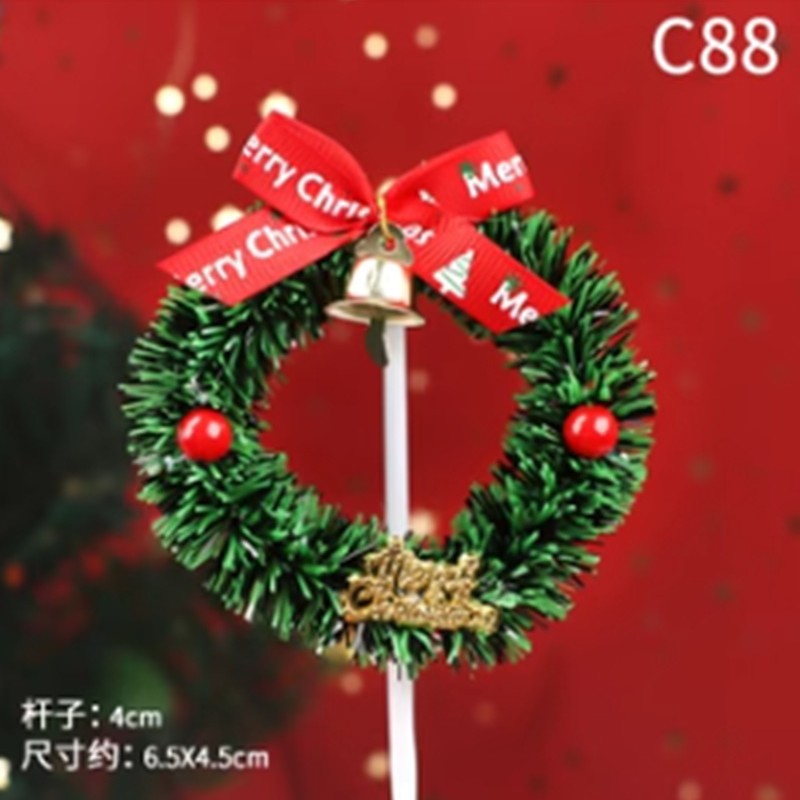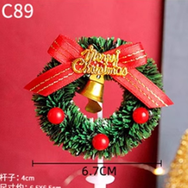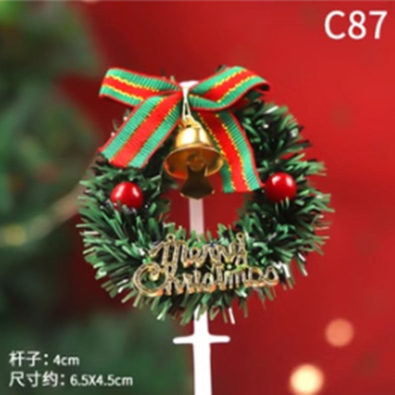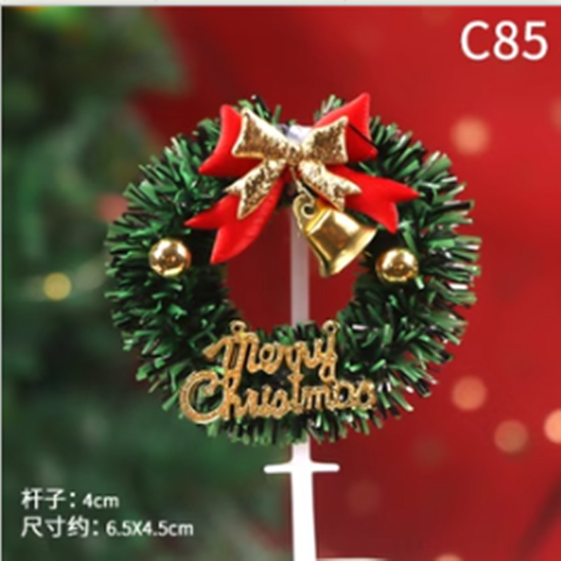圣诞节创意生日蛋糕装饰滴胶雪人圣诞老人摆件草圈绿叶铃铛插件