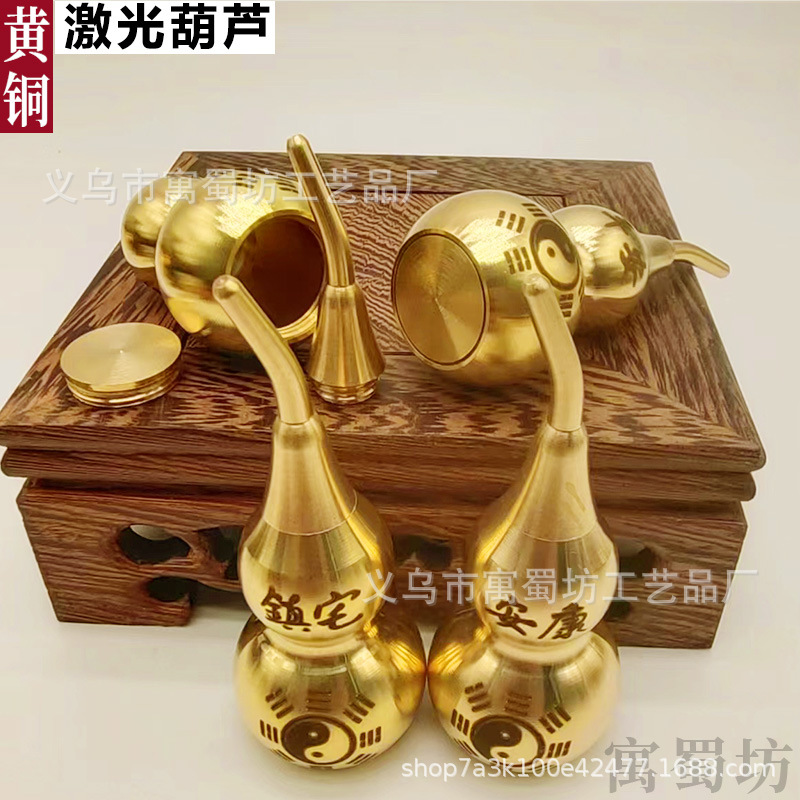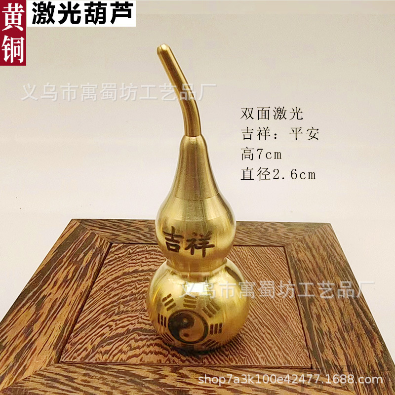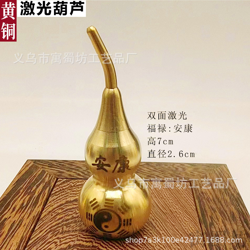 黄铜两面激光7cm中号铜葫芦福禄安康平安吉祥工艺品摆件挂件配件