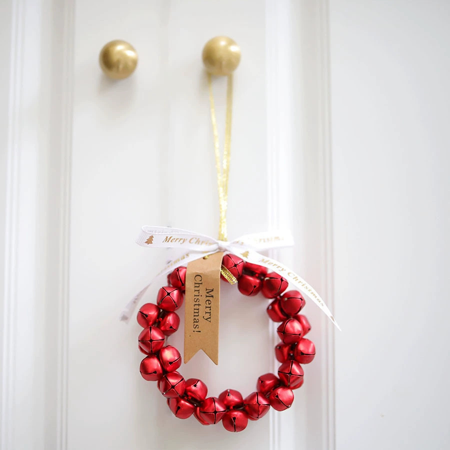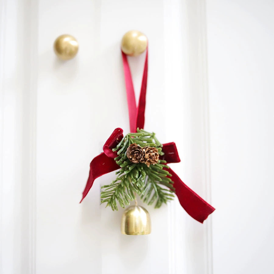 圣诞挂浆果藤圈小花环 圣诞节装饰仿真松果铃铛挂件 尤加利小花环