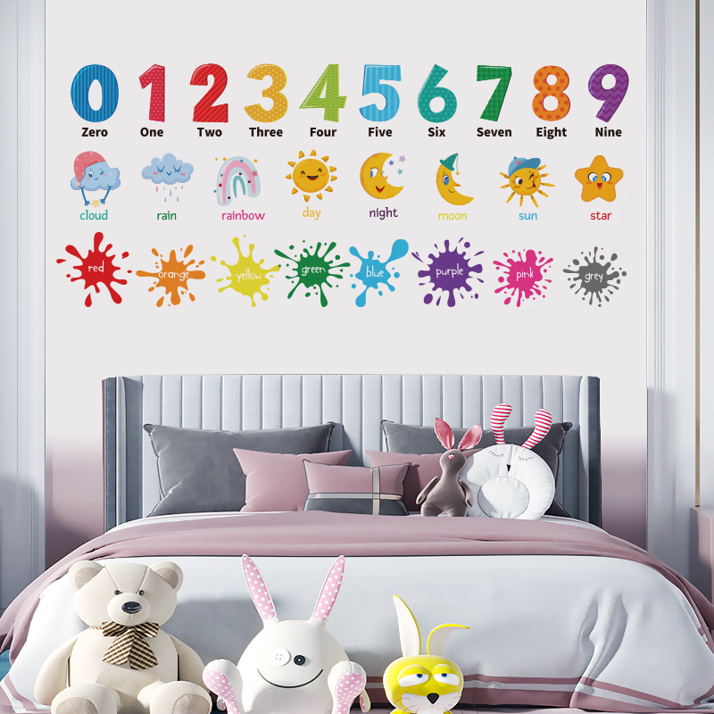 跨境批发宝宝早教认识儿童启蒙墙贴卡通英文数字幼儿园教室装饰贴