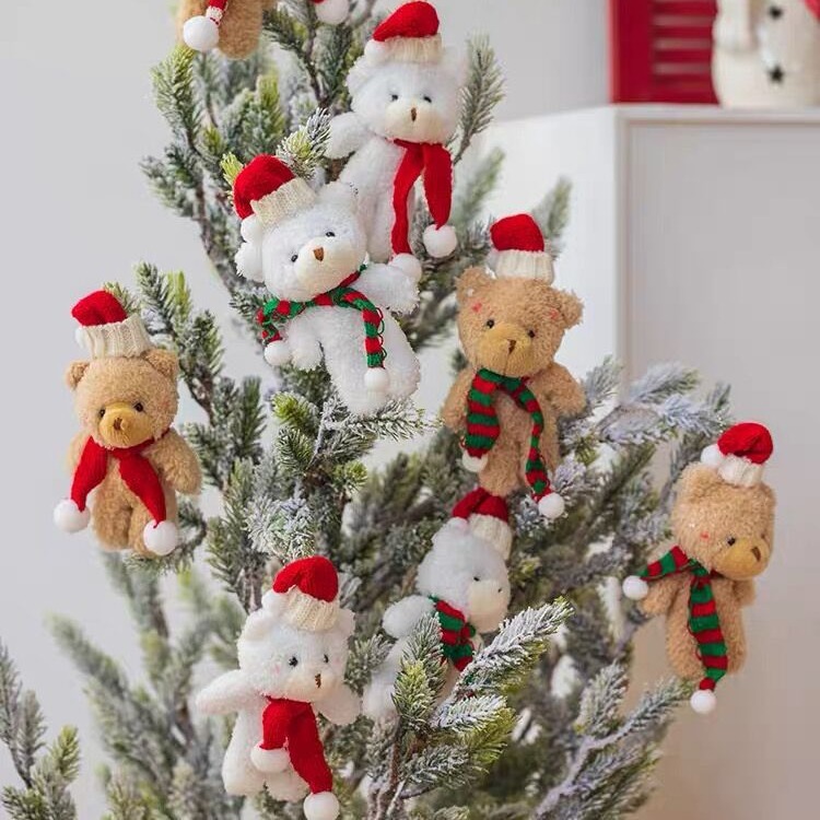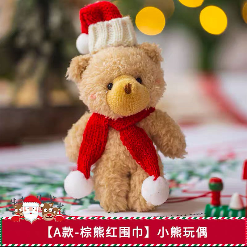 圣诞节可爱围巾小棕熊泰迪熊DIY服饰礼物花艺圣诞树手伴配件挂件