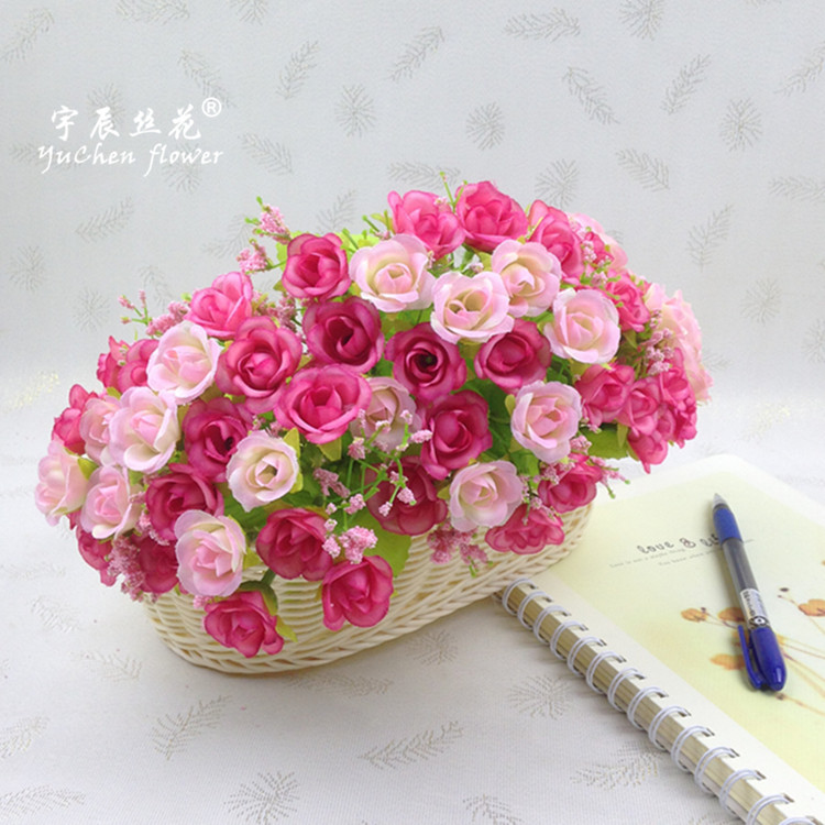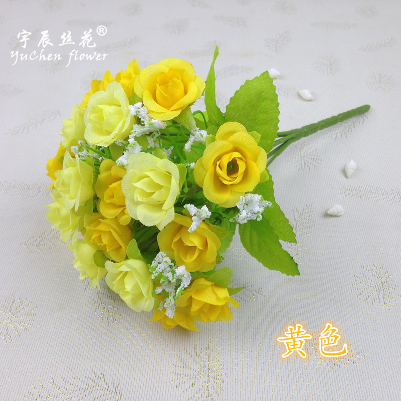 厂家批发 21头钻石玫瑰 7叉春色小玫瑰 玫蕾 仿真花 人造