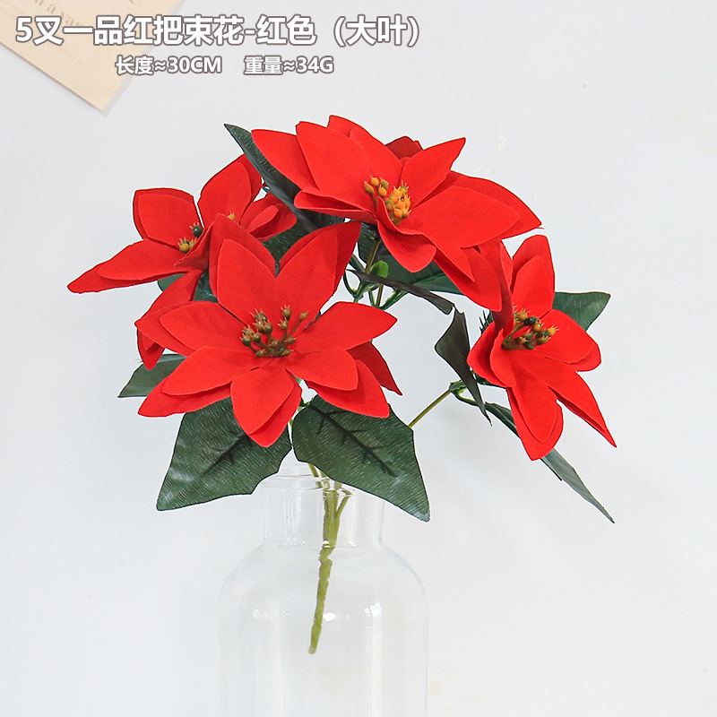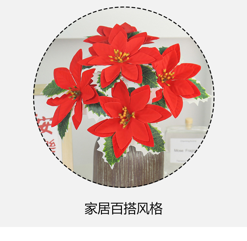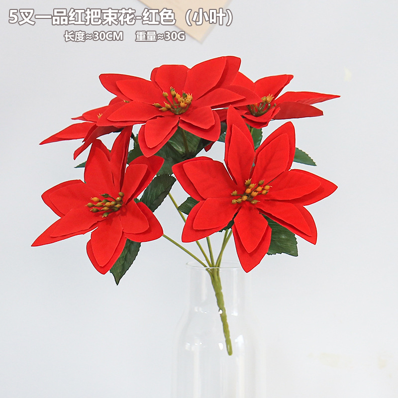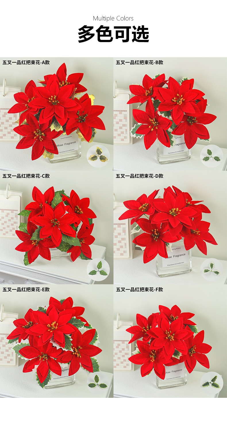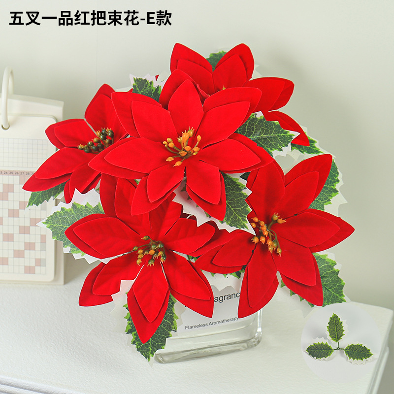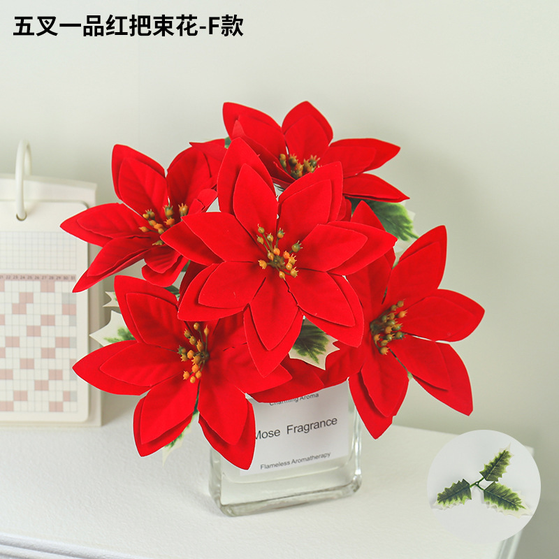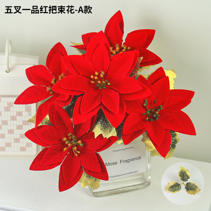五叉仿真花束绒布圣诞花假花节日装饰绿植盆栽圣诞节日气氛摆件