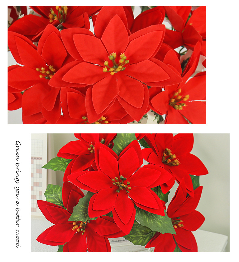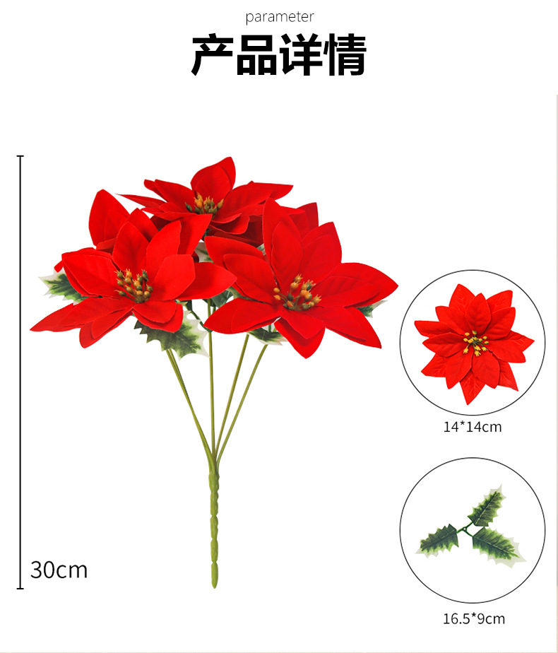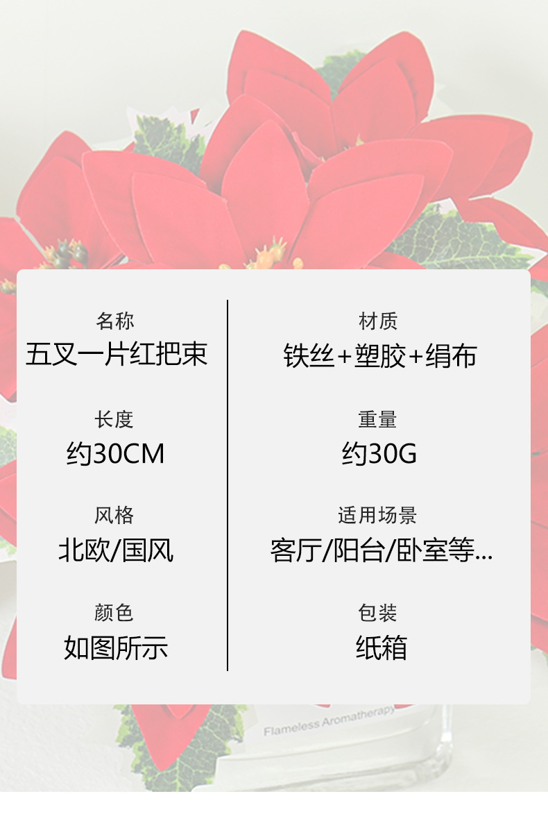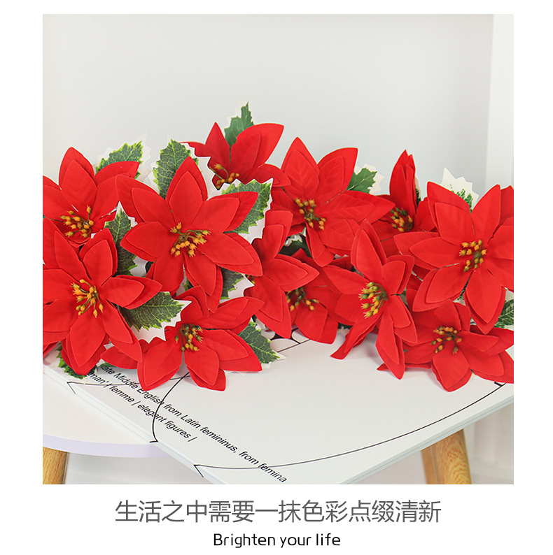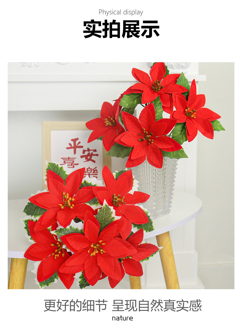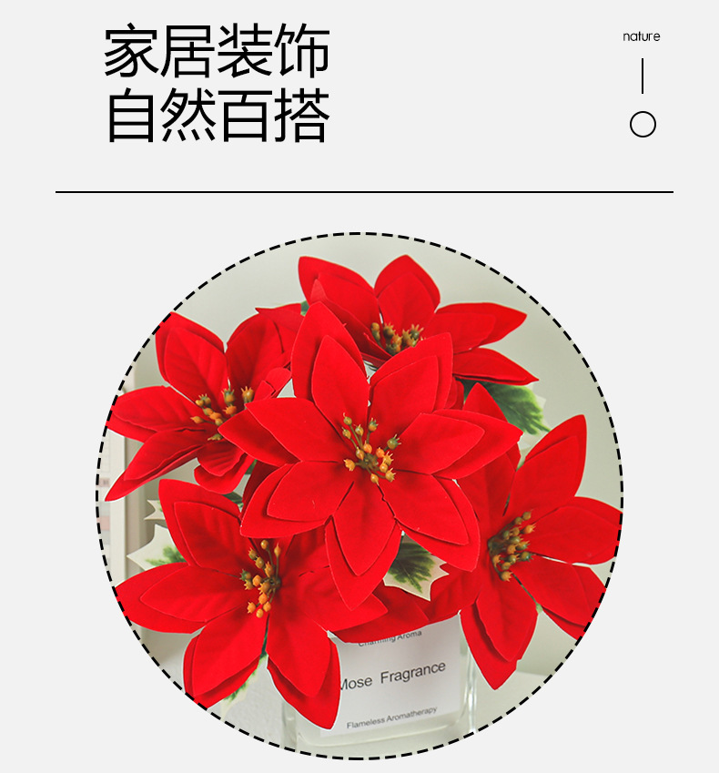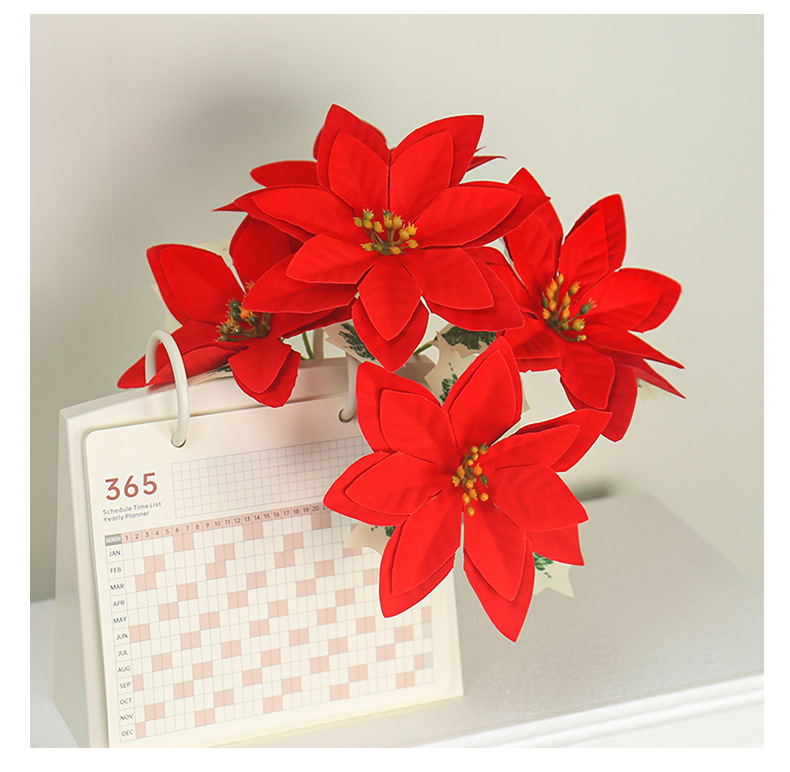五叉仿真花束绒布圣诞花假花节日装饰绿植盆栽圣诞节日气氛摆件