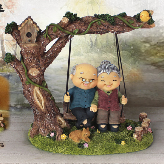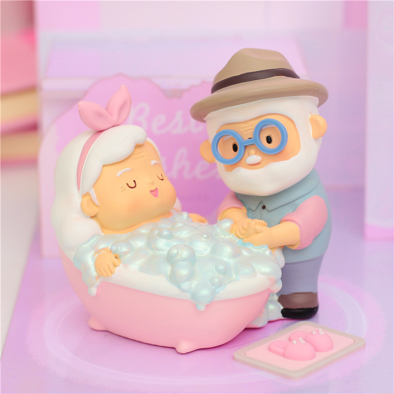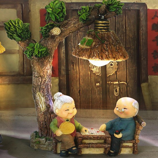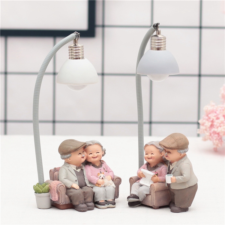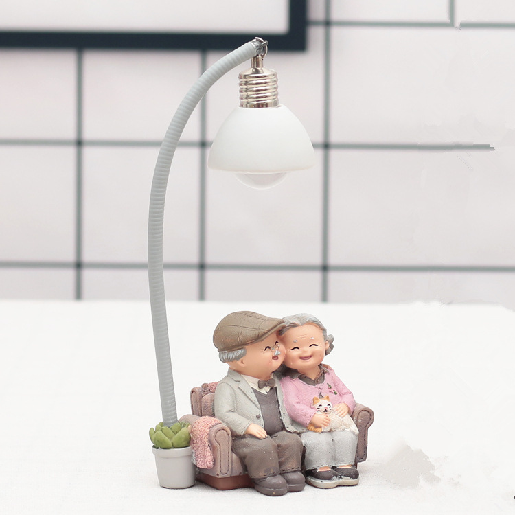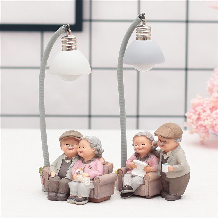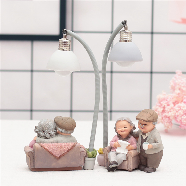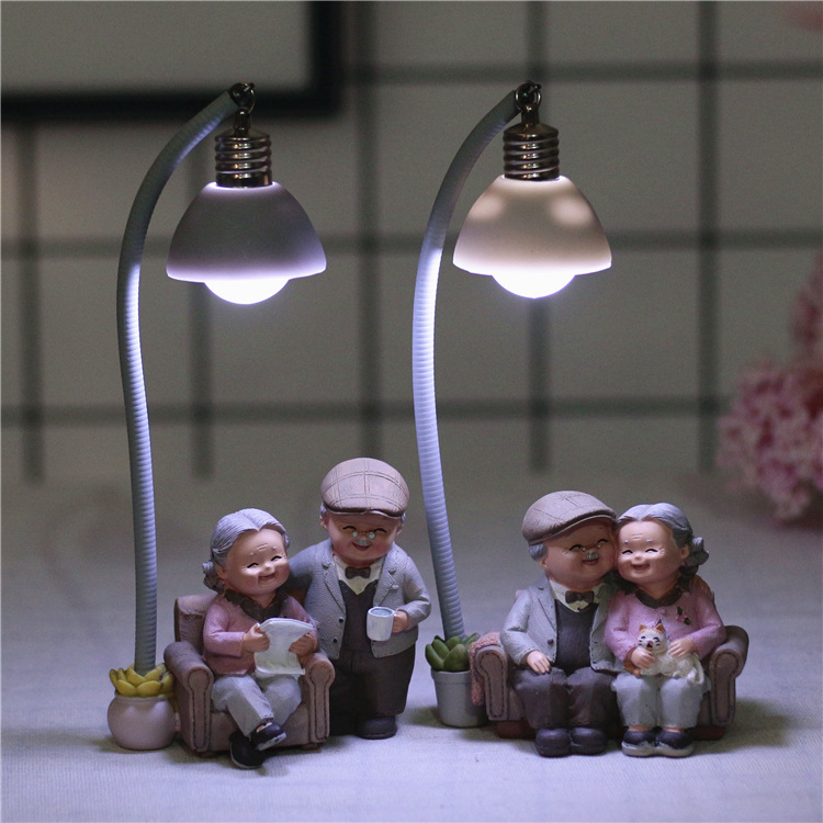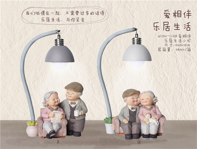 爱相伴悠闲老头老太小夜灯做蛋糕洗脚弹吉他树脂摆设家居摆件饰