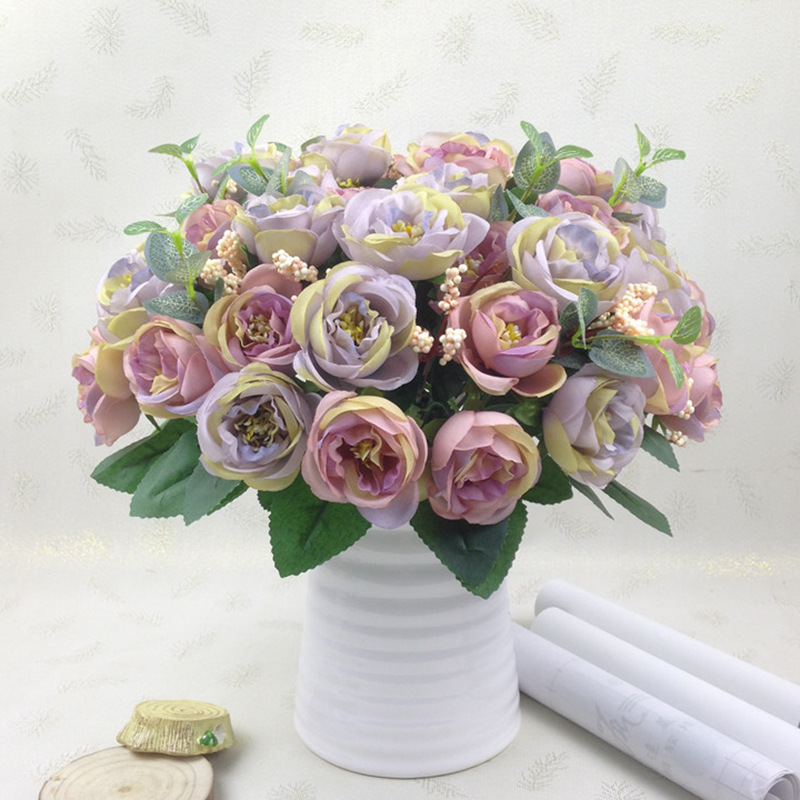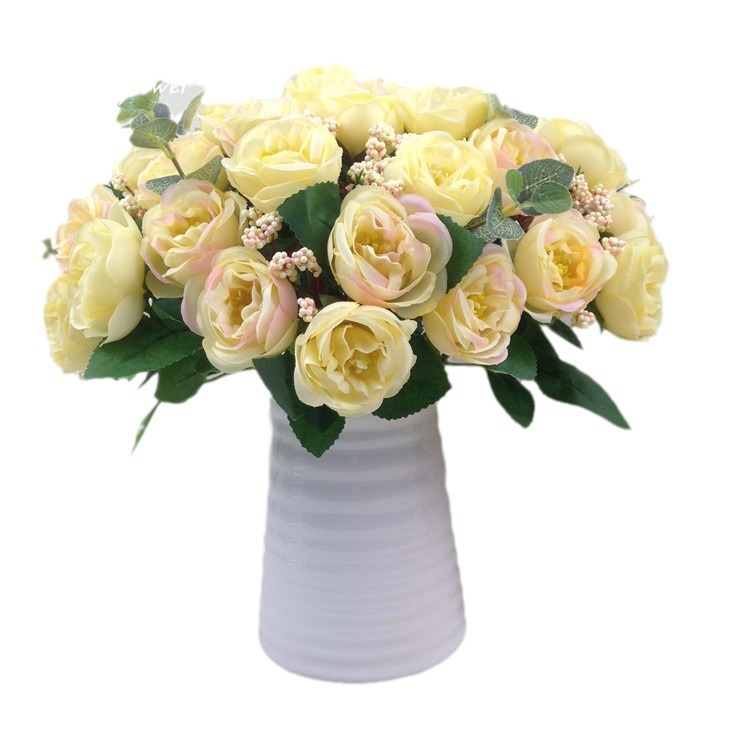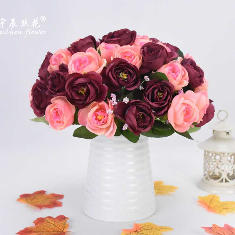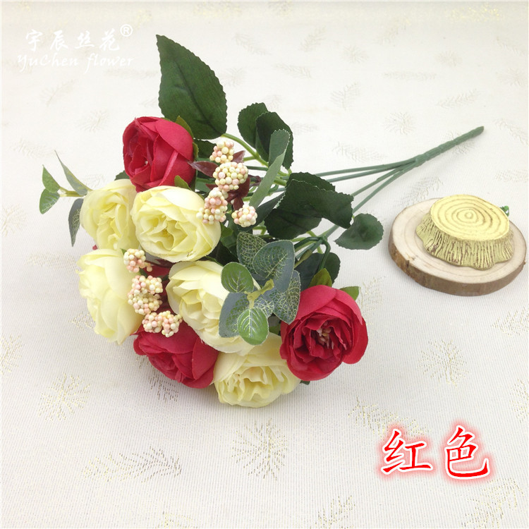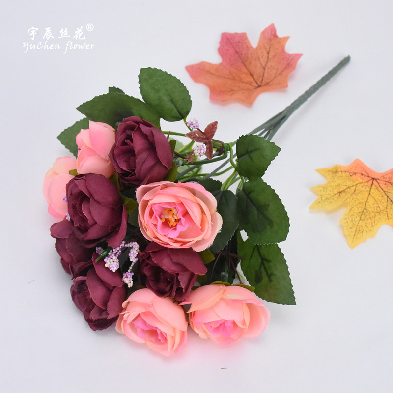 欧式10头茶玫 仿真花束 婚庆绢布家居手捧装饰假花餐桌玫瑰山茶苞