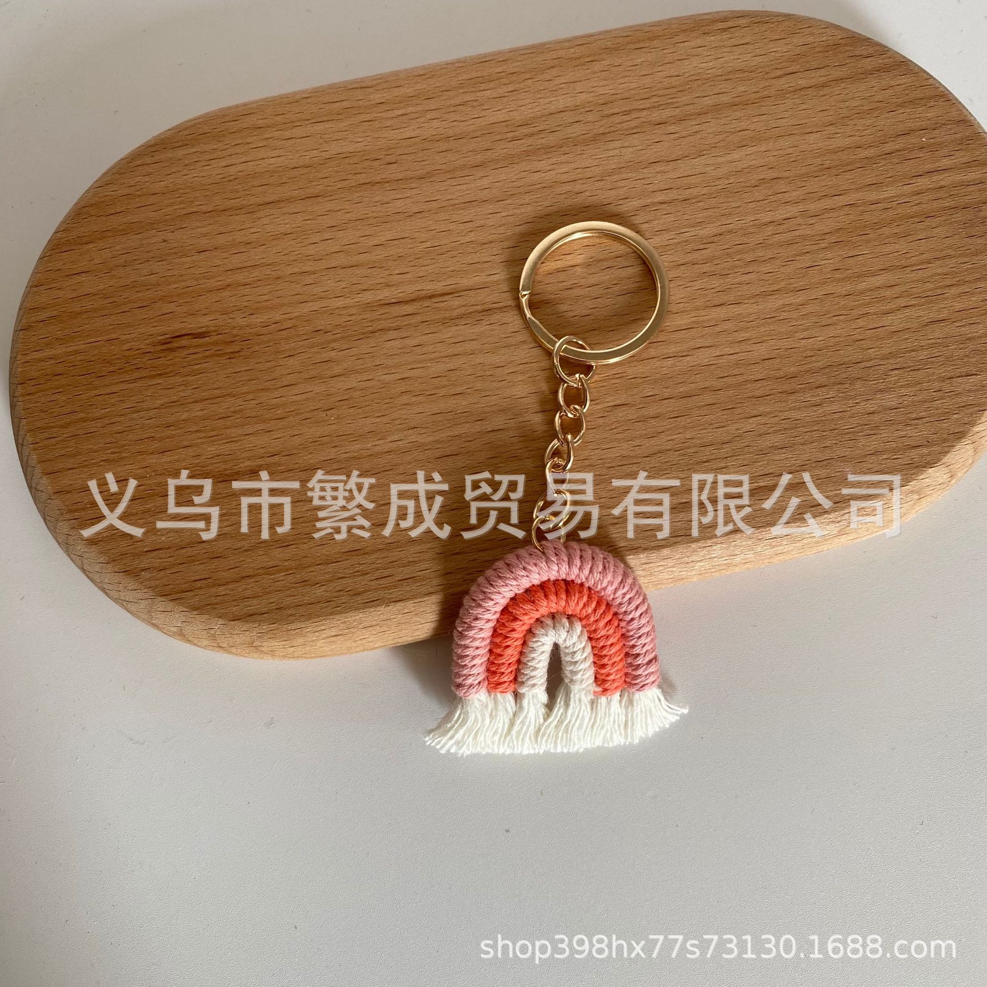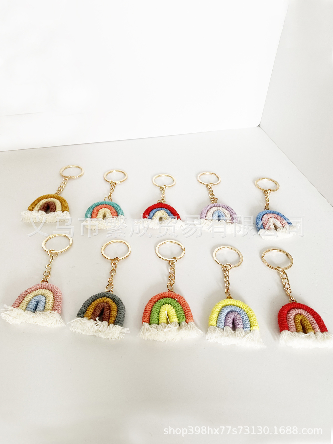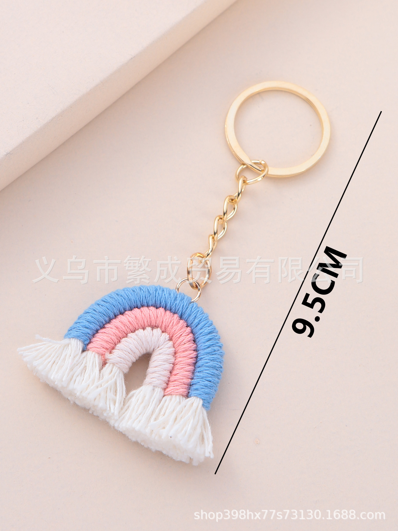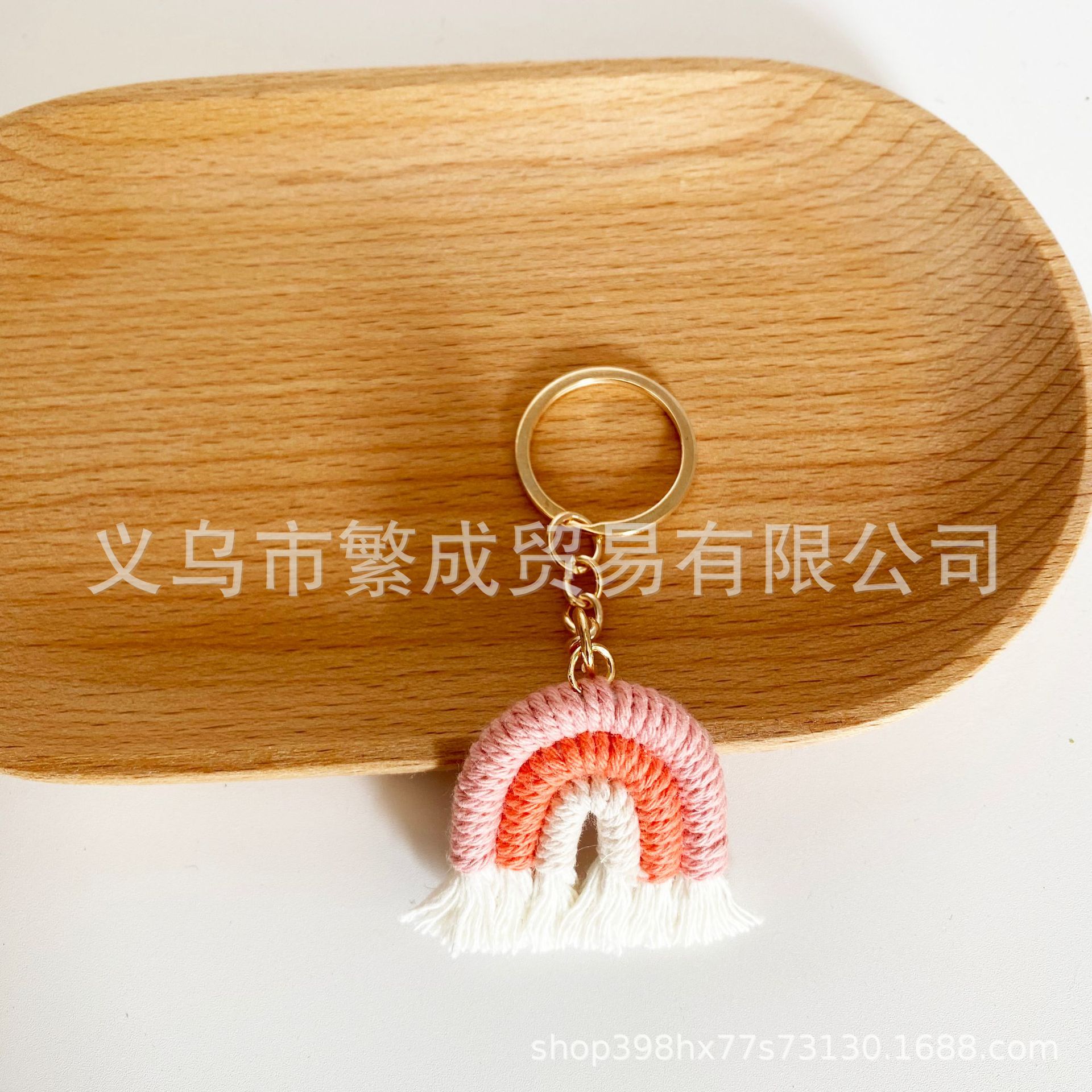 新款饰品针织彩虹钥匙扣挂件时尚甜美彩虹手工编织挂件配件