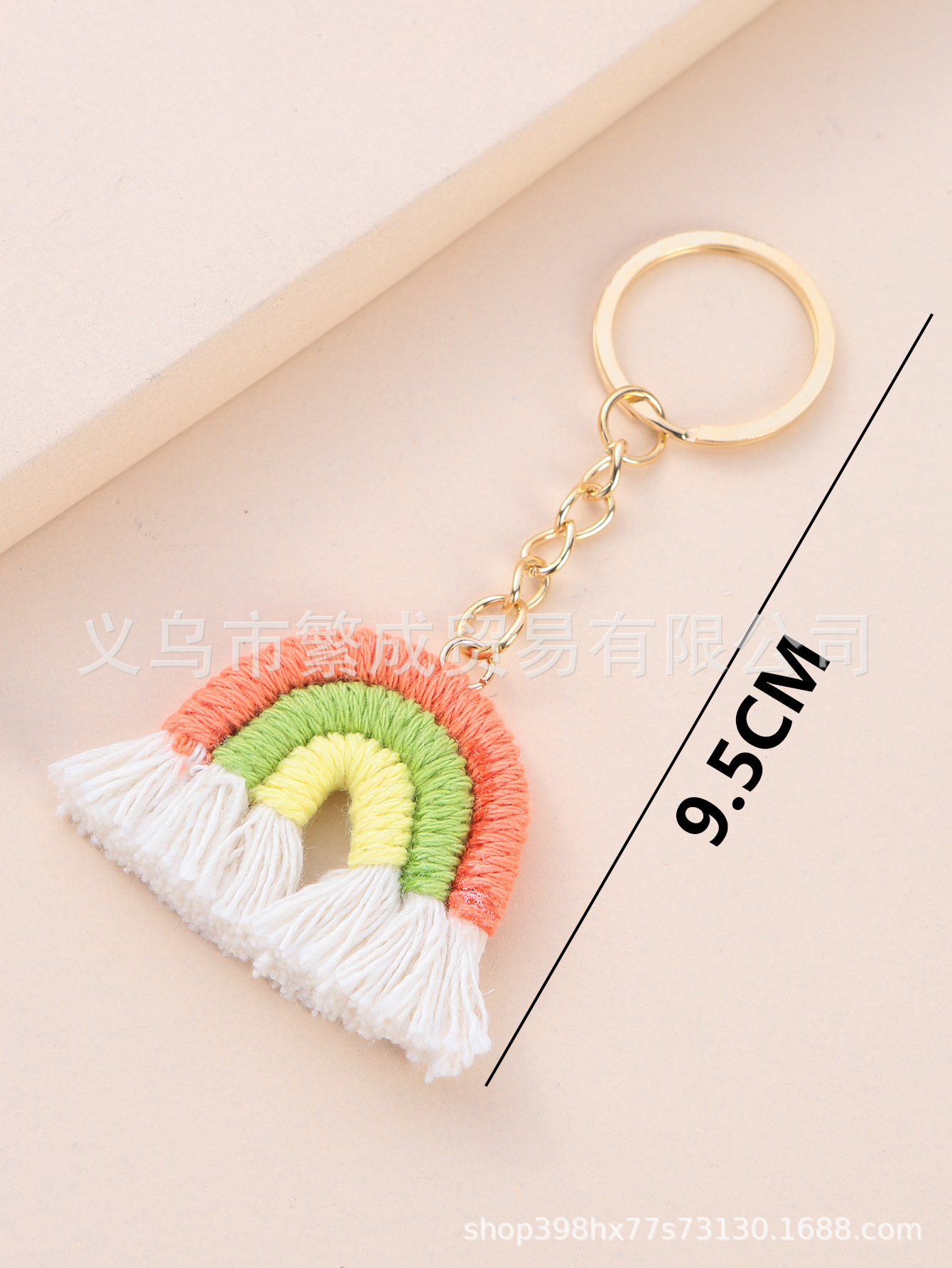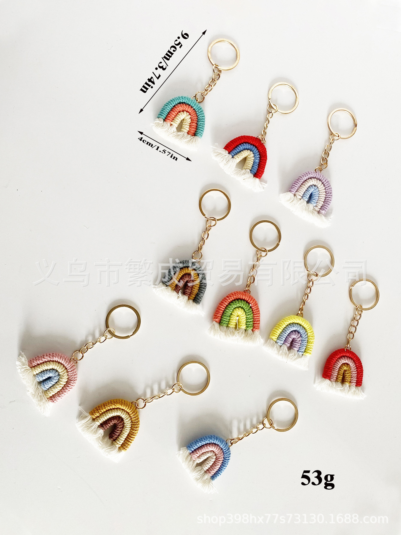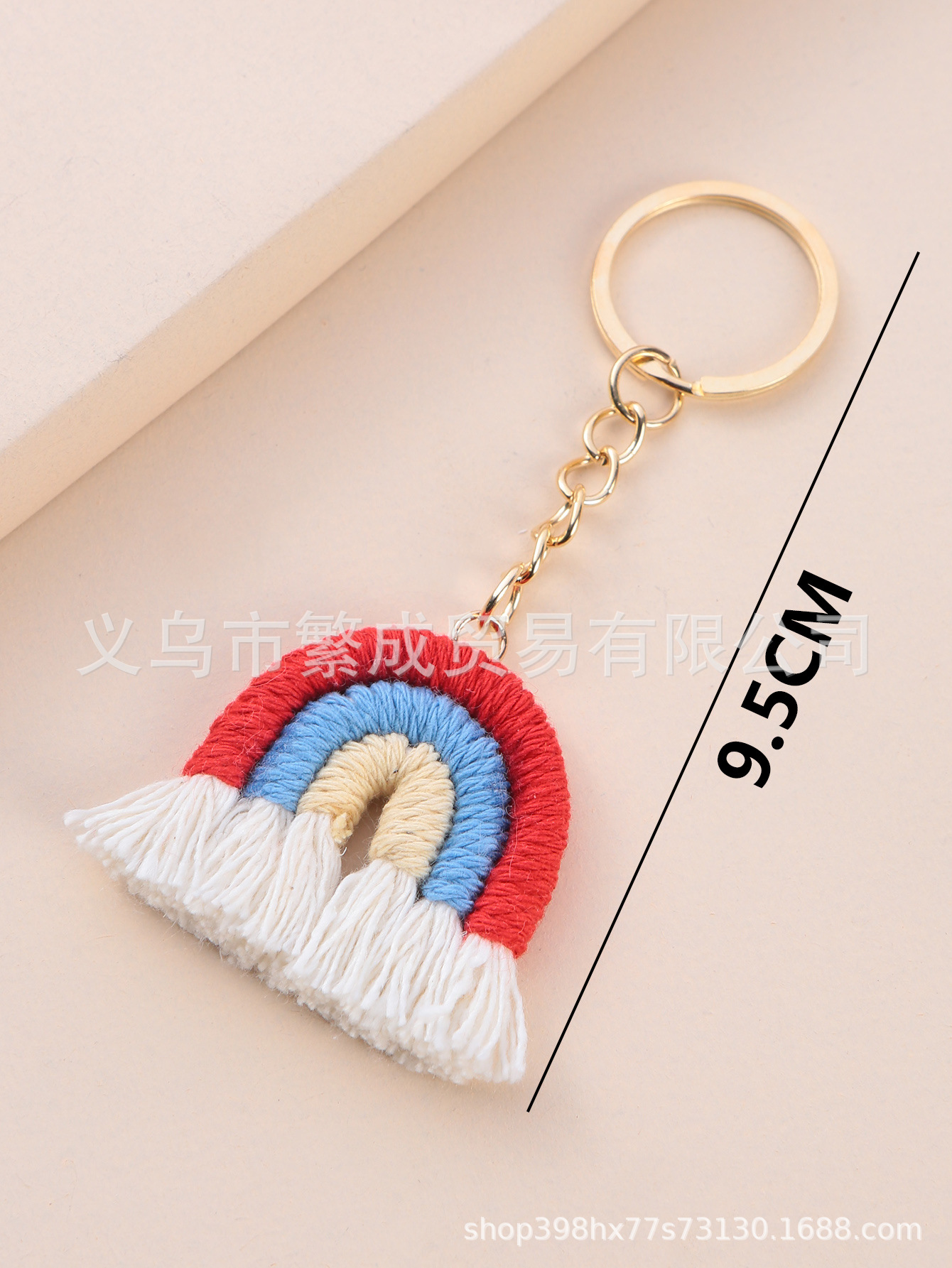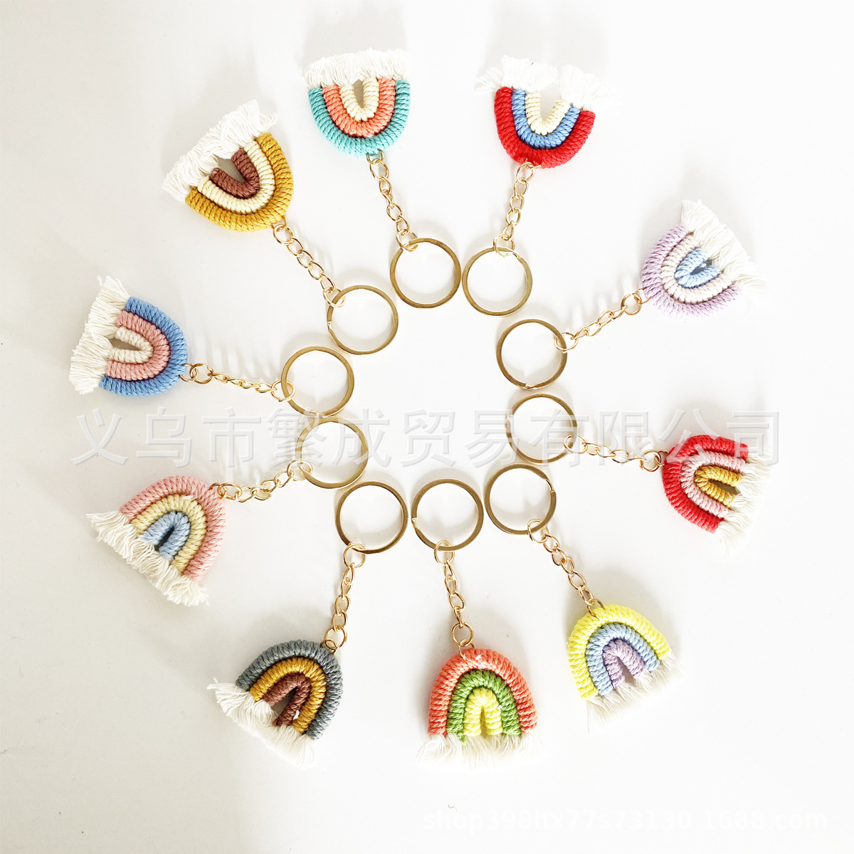 新款饰品针织彩虹钥匙扣挂件时尚甜美彩虹手工编织挂件配件