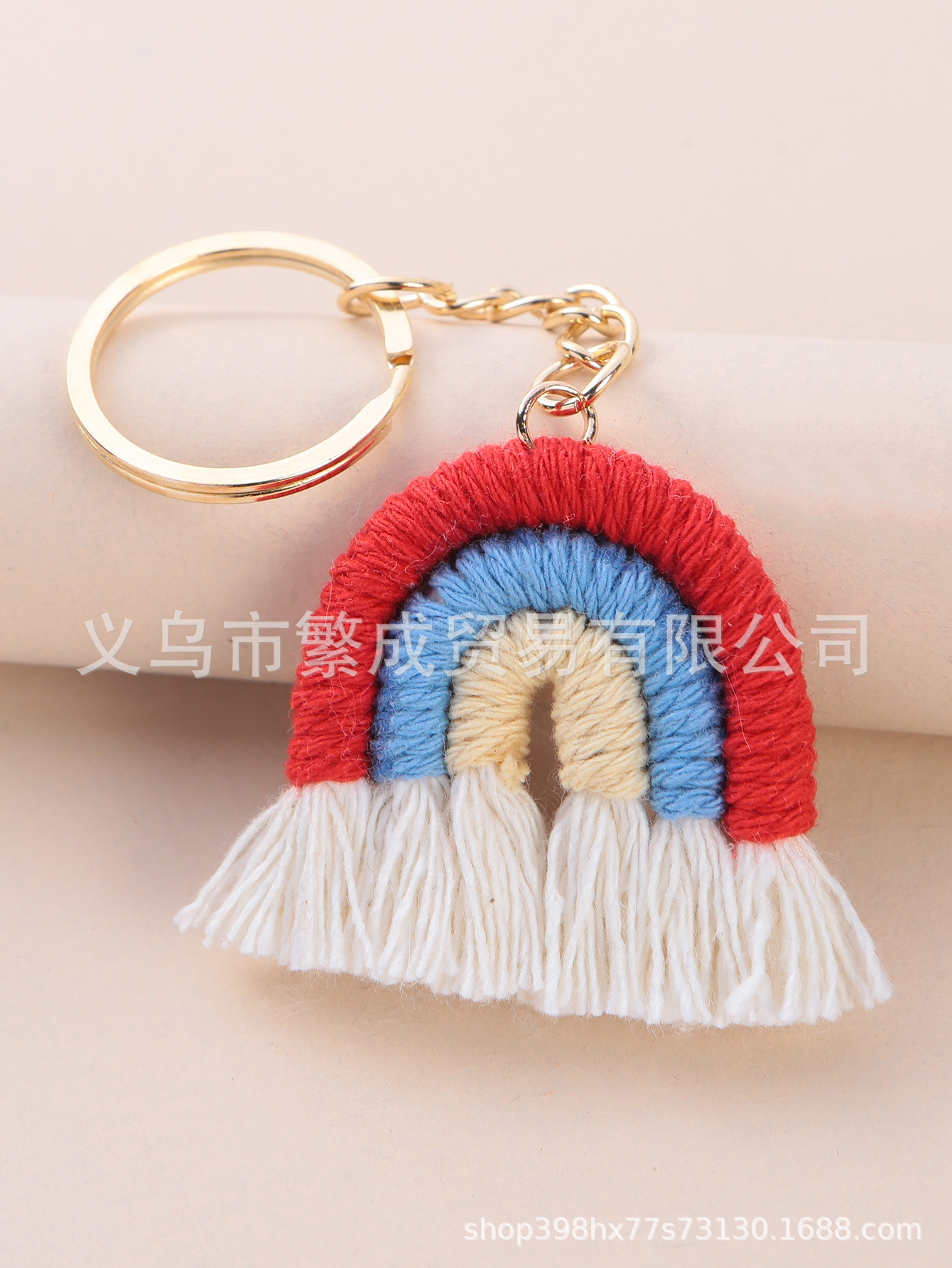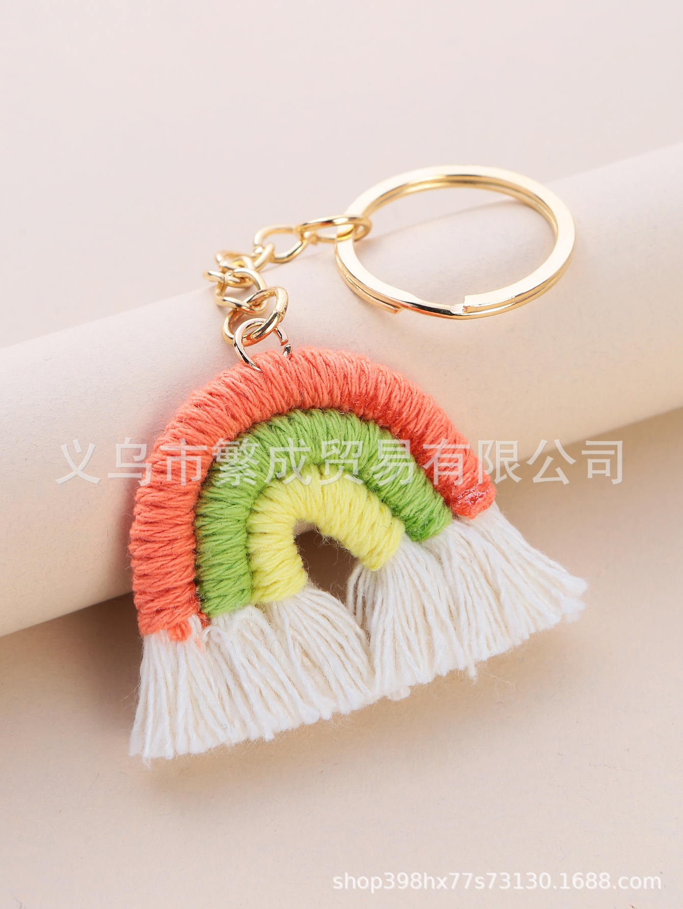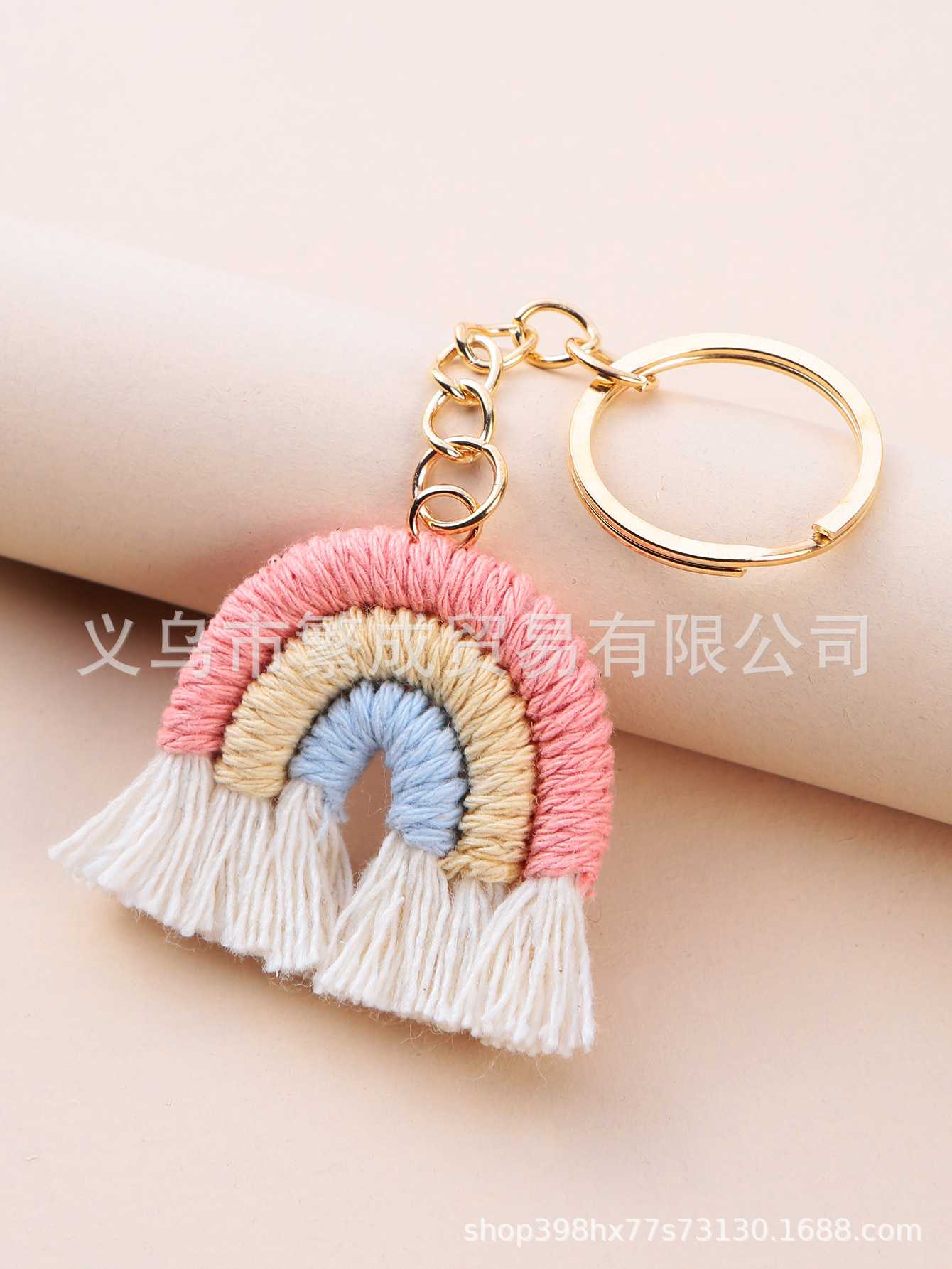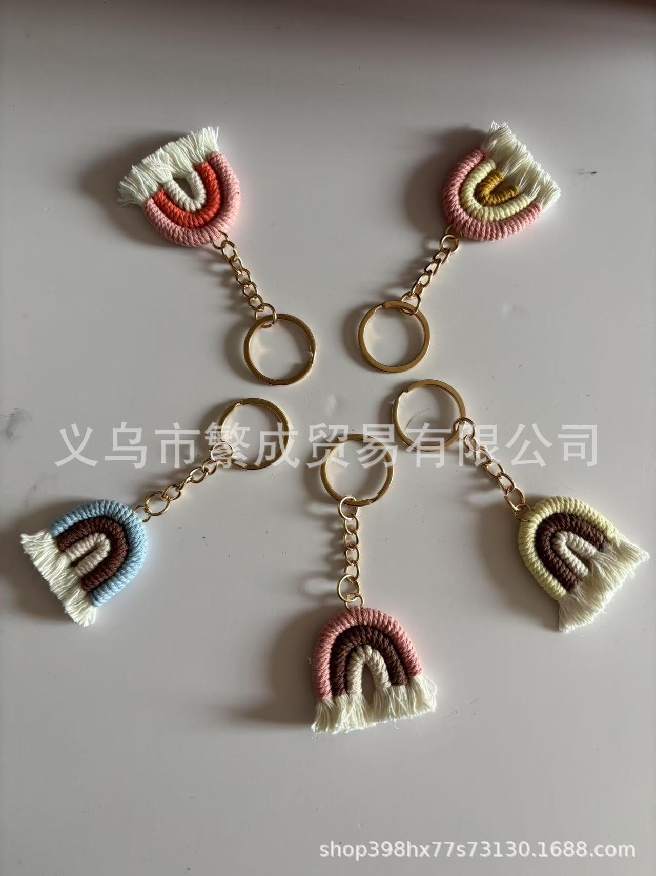 新款饰品针织彩虹钥匙扣挂件时尚甜美彩虹手工编织挂件配件