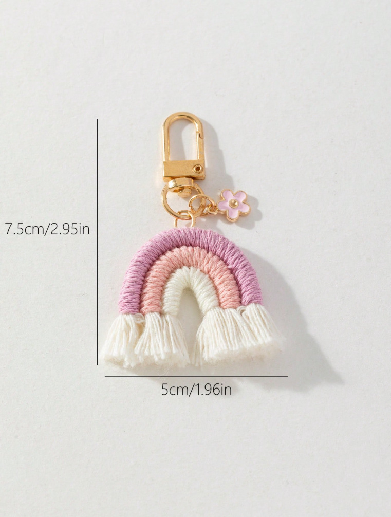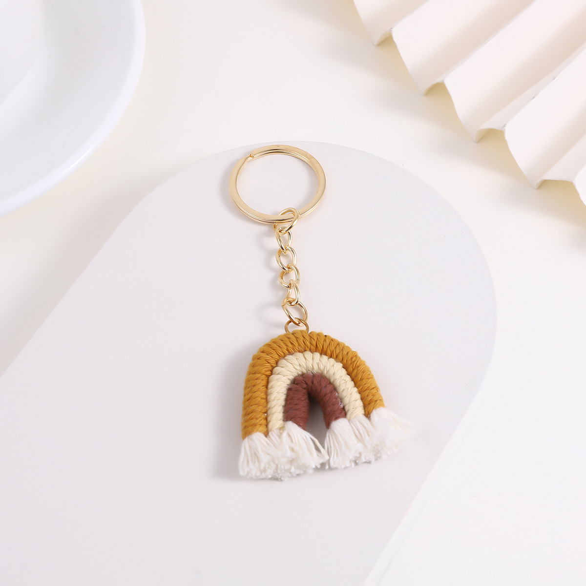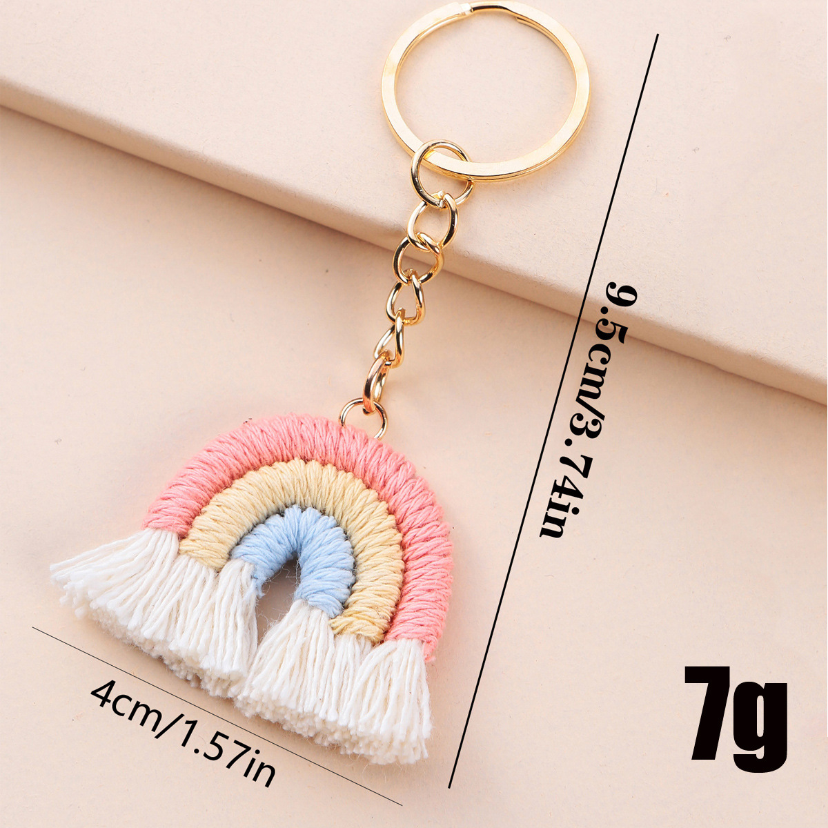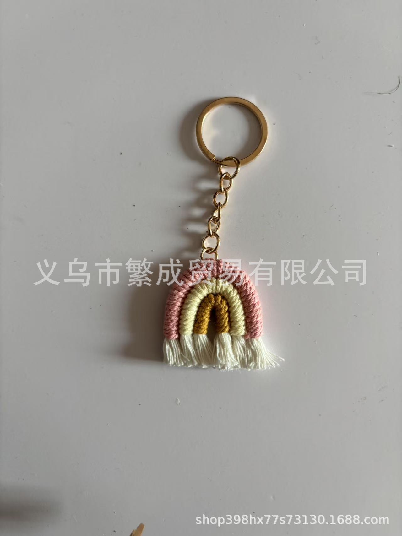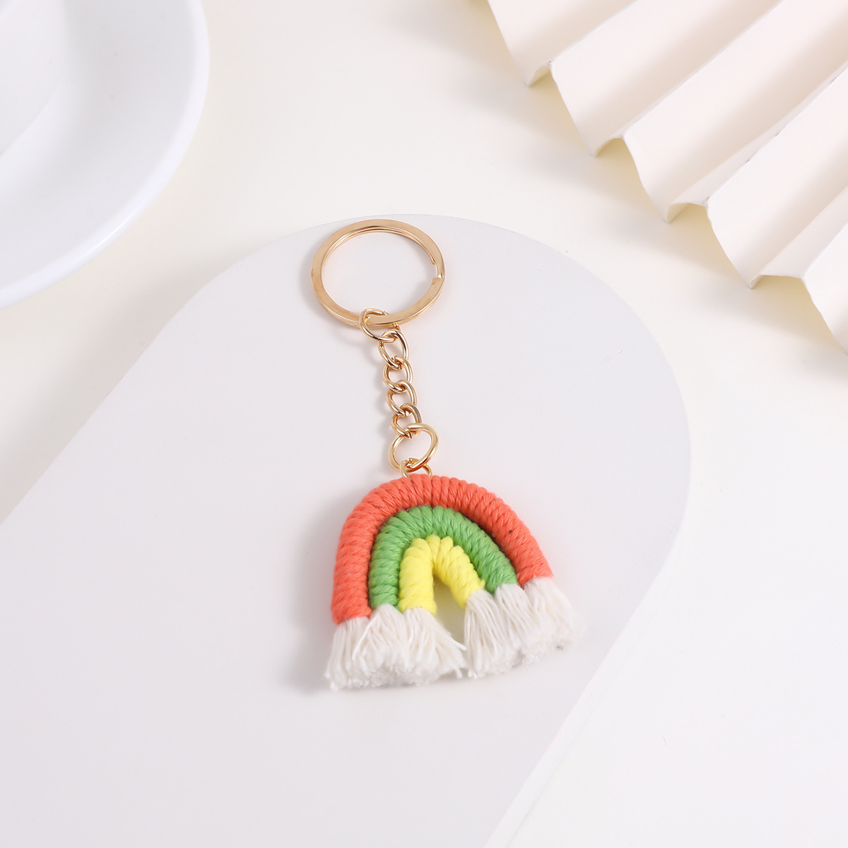 新款饰品针织彩虹钥匙扣挂件时尚甜美彩虹手工编织挂件配件
