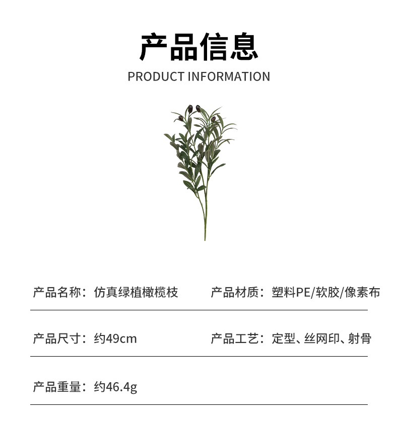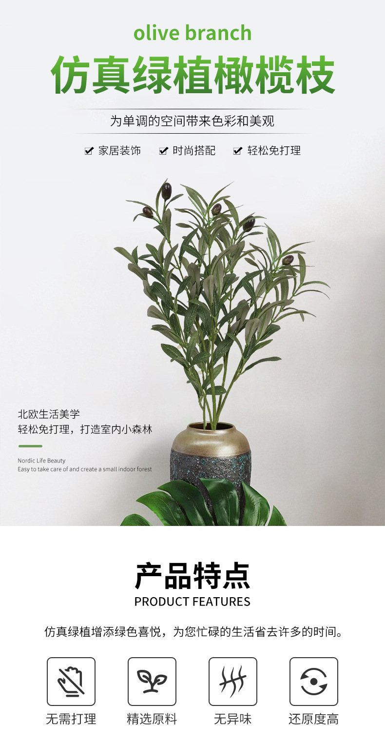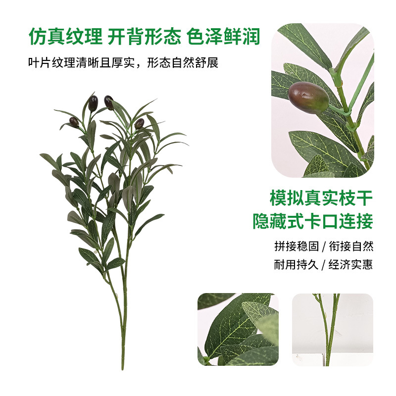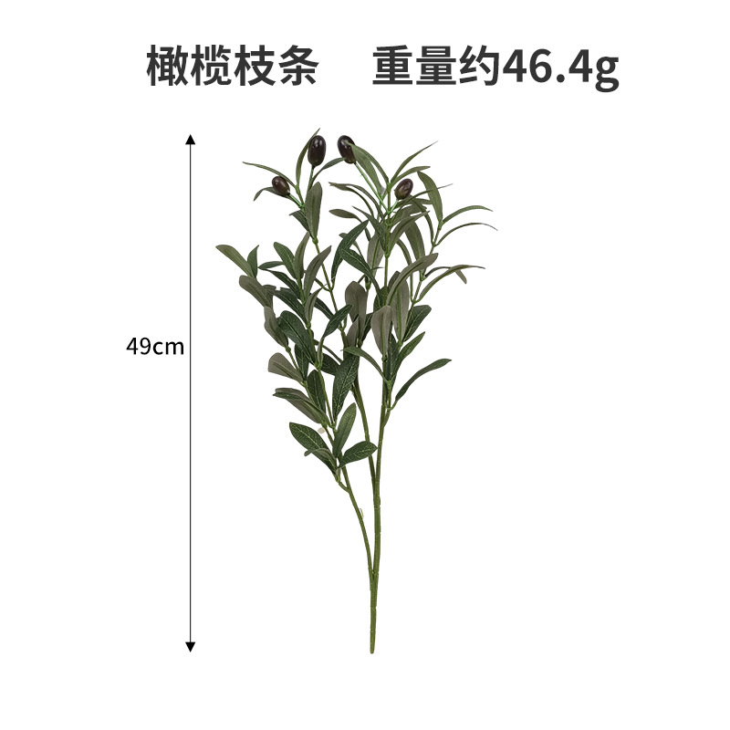 装饰仿真绿植6叉带果橄榄树枝拍摄道具假树枝叶婚庆家居插花摆件
