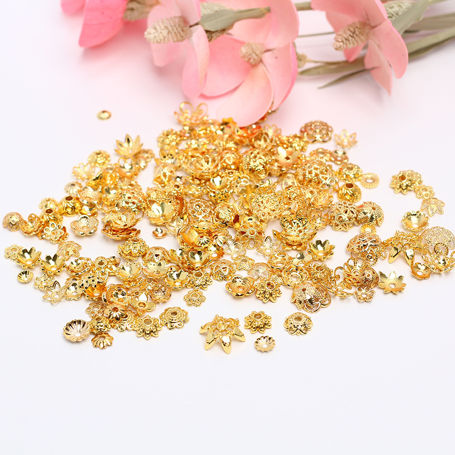 厂家直销18k包真金保色花托DIY饰品手工花托隔珠花帽串珠饰品配件