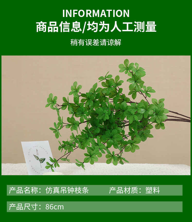 仿真吊钟枝条绿植盆景多瓣六星叶树枝落地植物软装跨境厂家批发