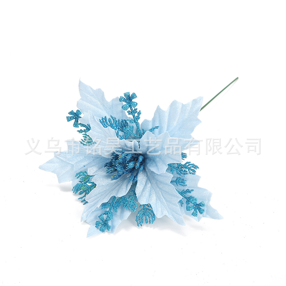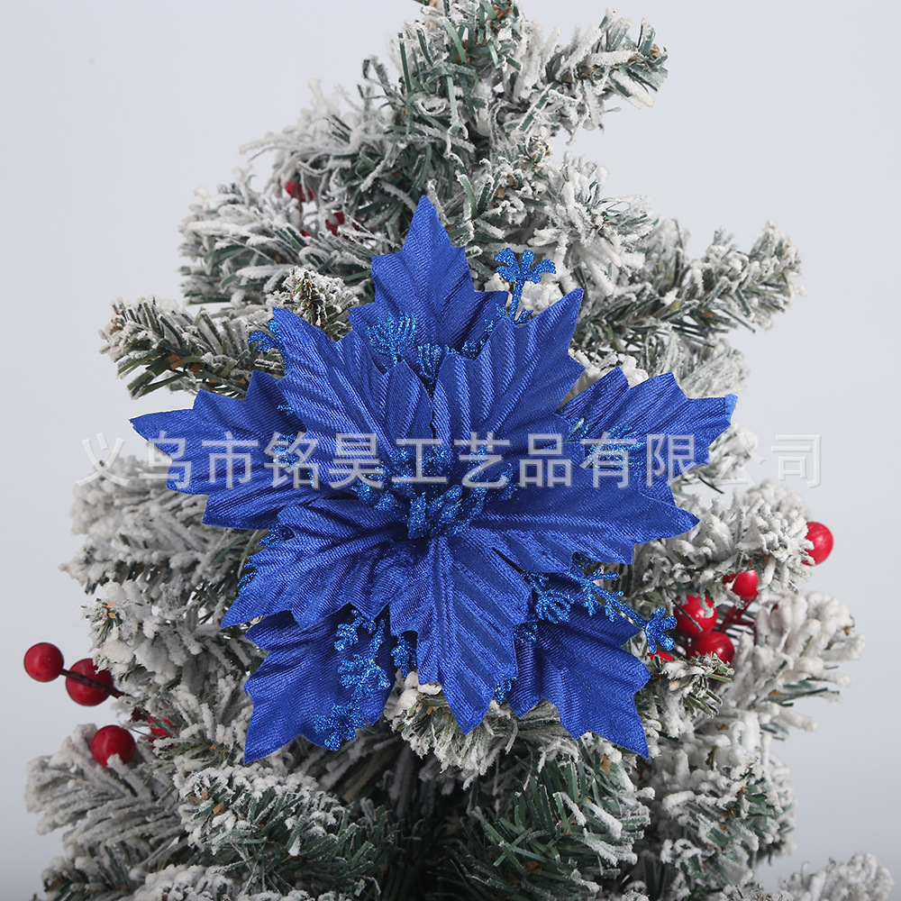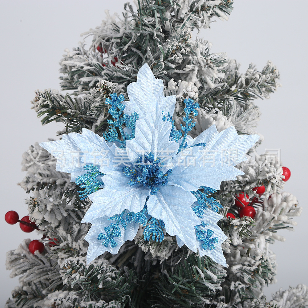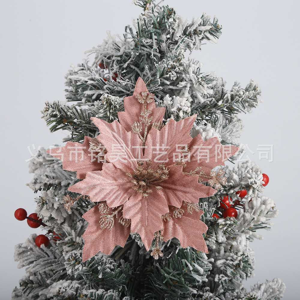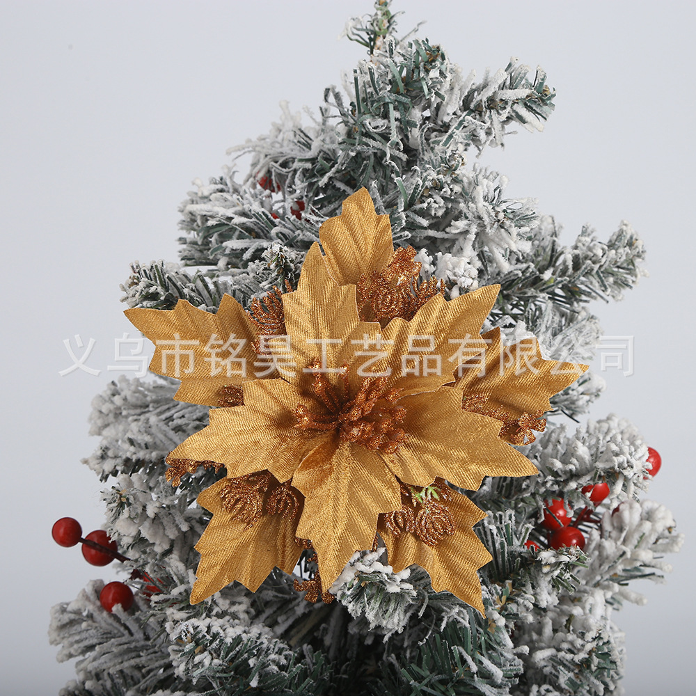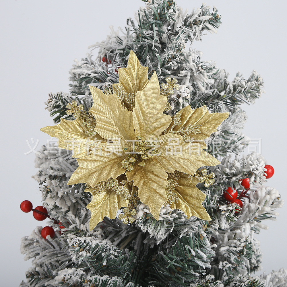 跨境圣诞花装饰品金粉圣诞花头金银红色仿真花圣诞树圣诞节挂件