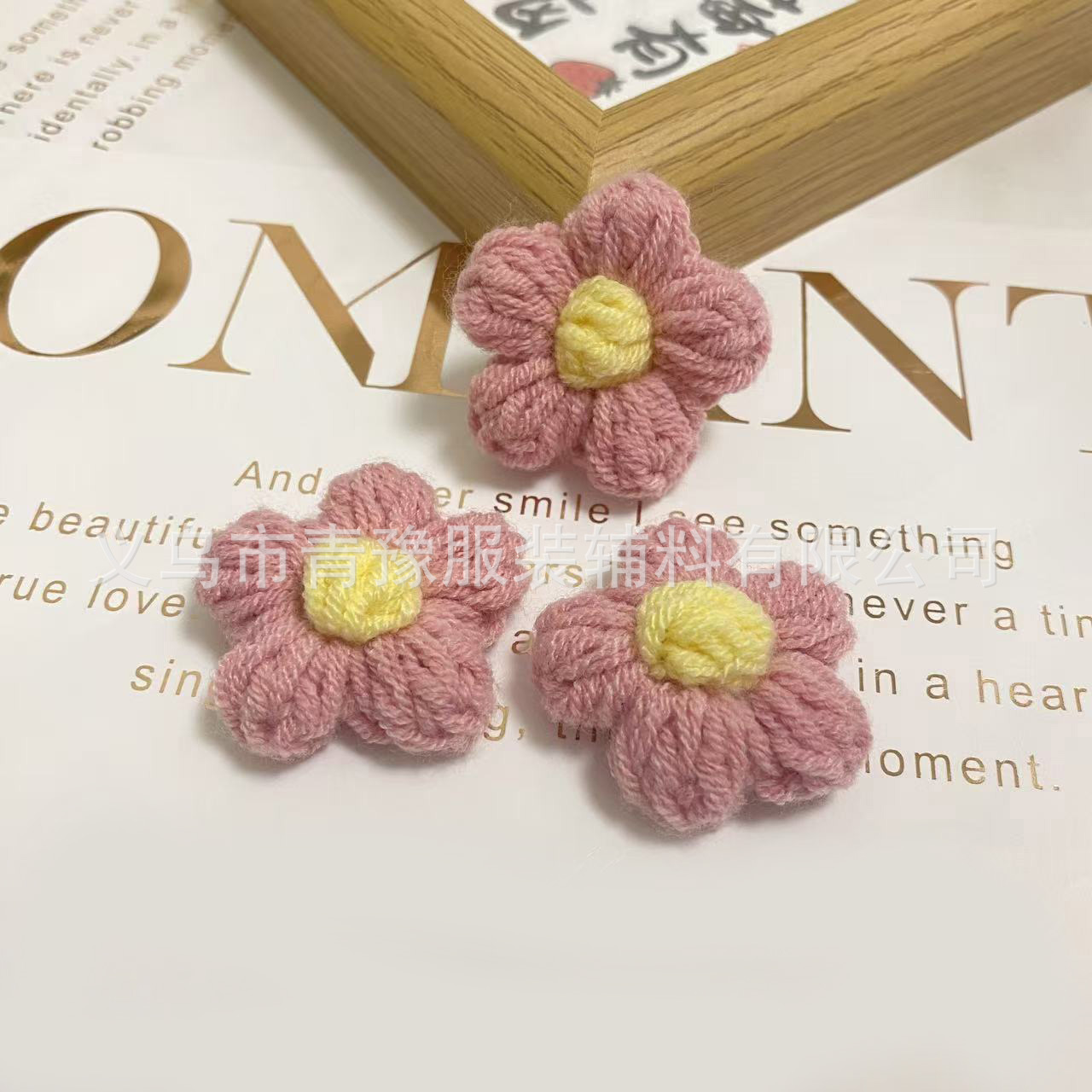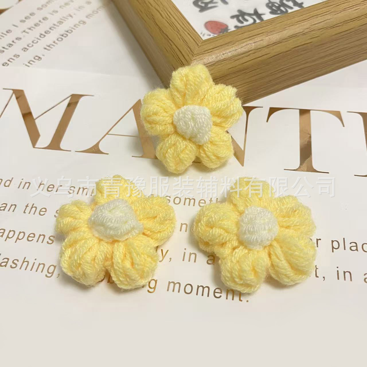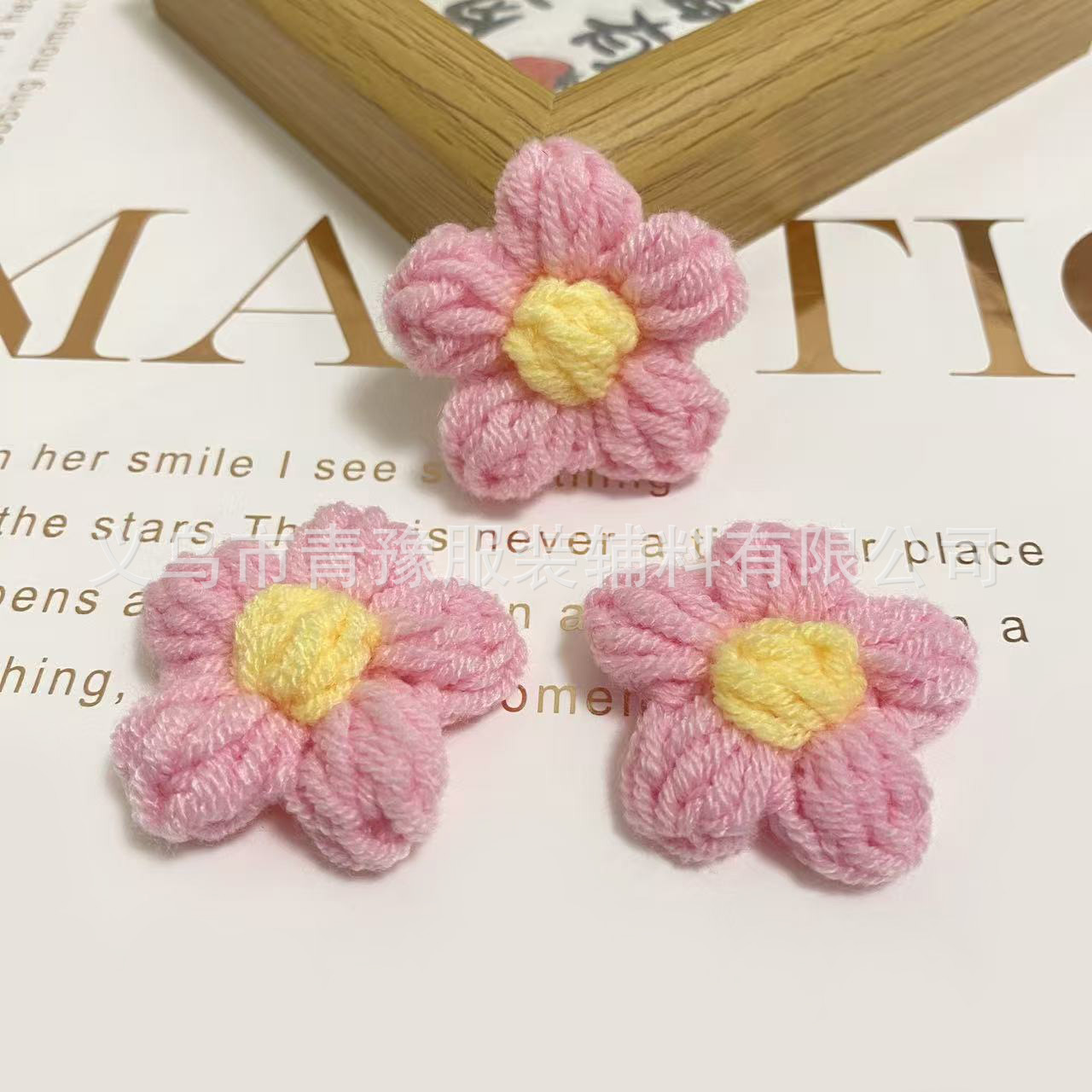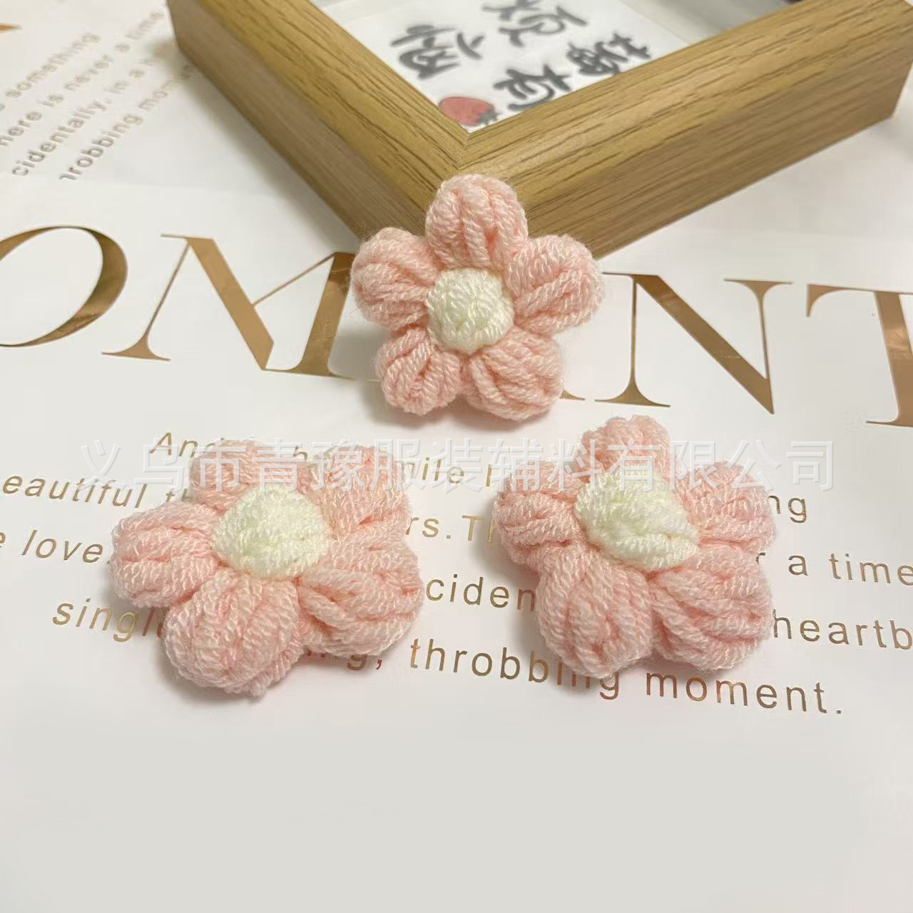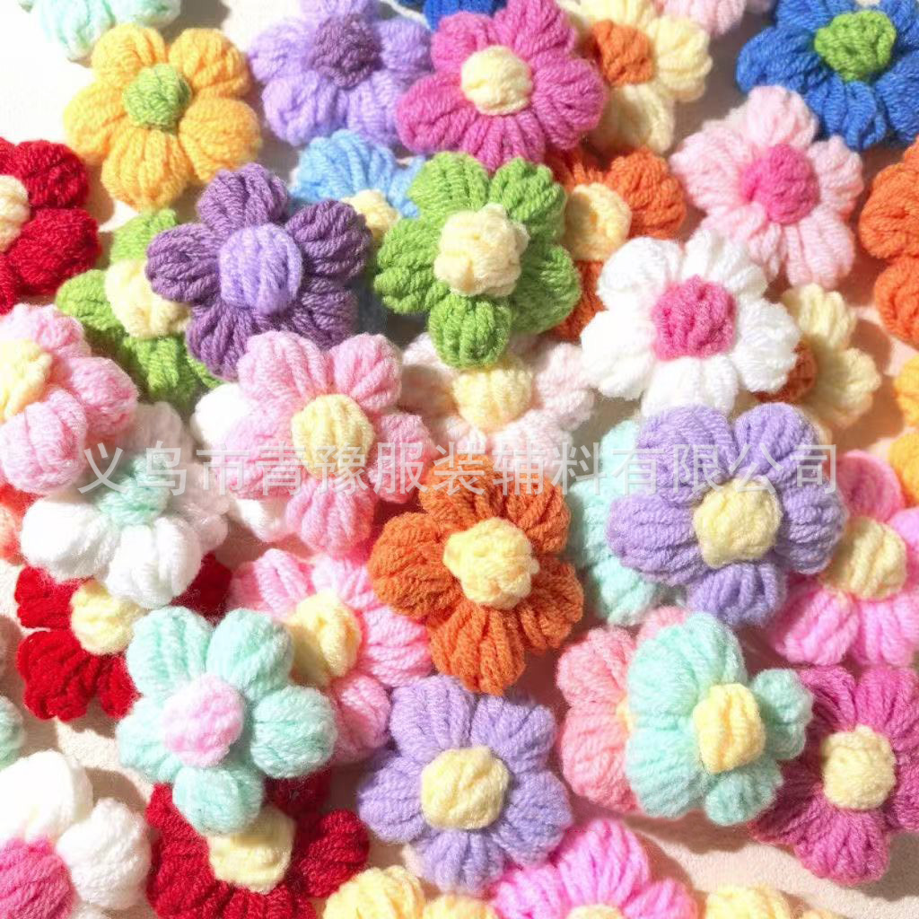 包邮手工钩针泡芙花 毛线编织花朵发饰发夹配件 胸花鞋花包包配饰