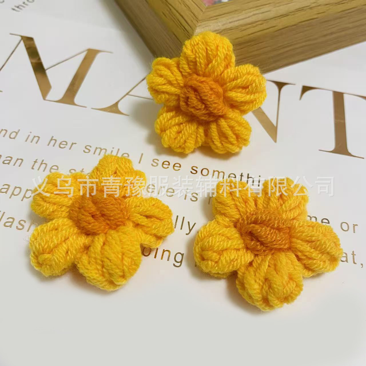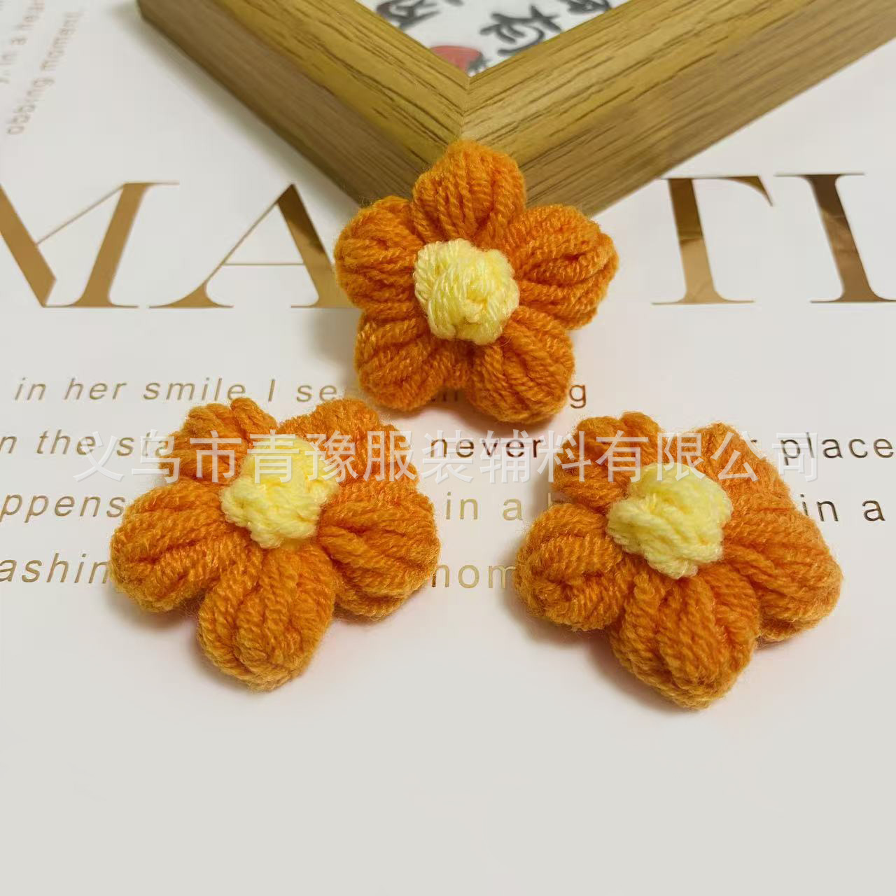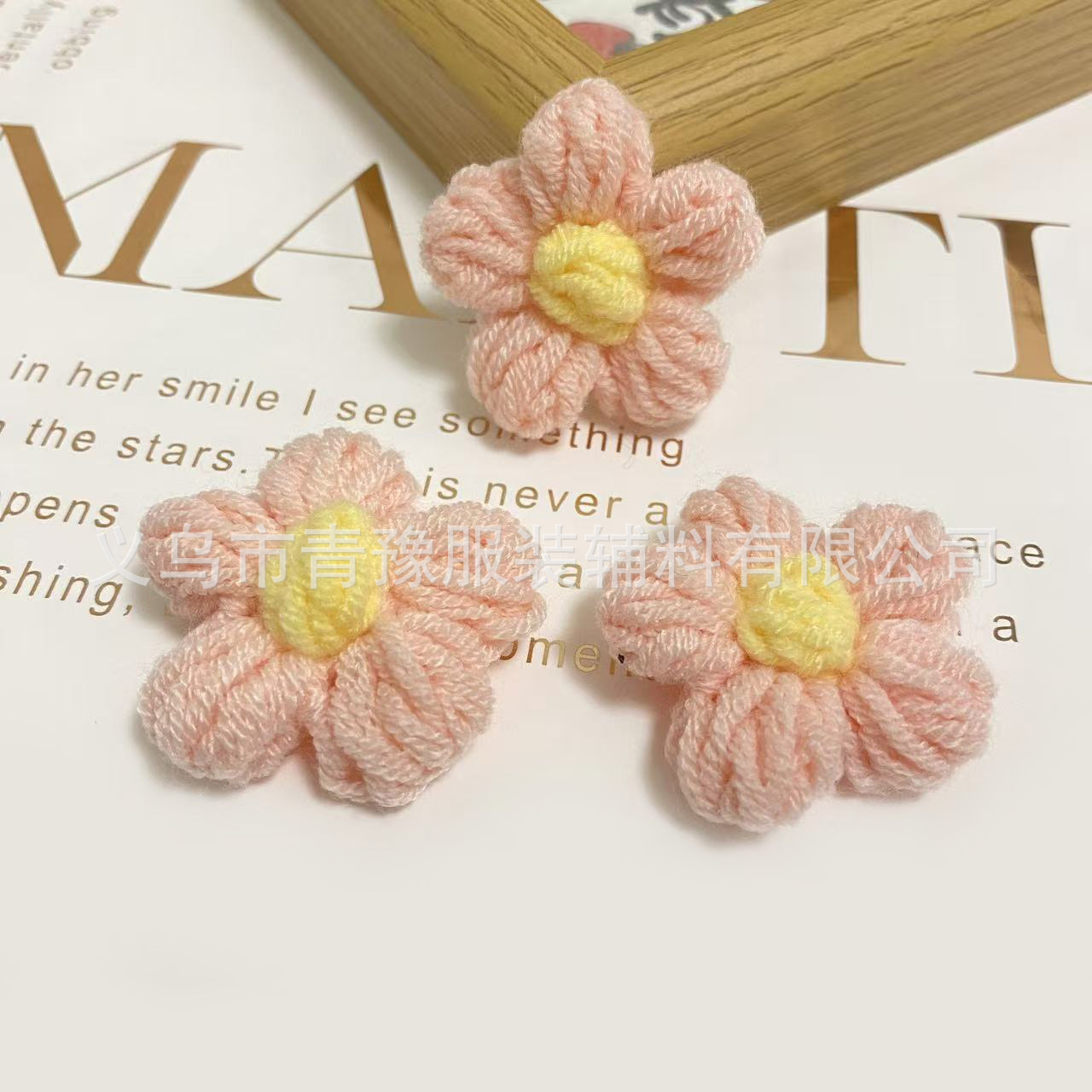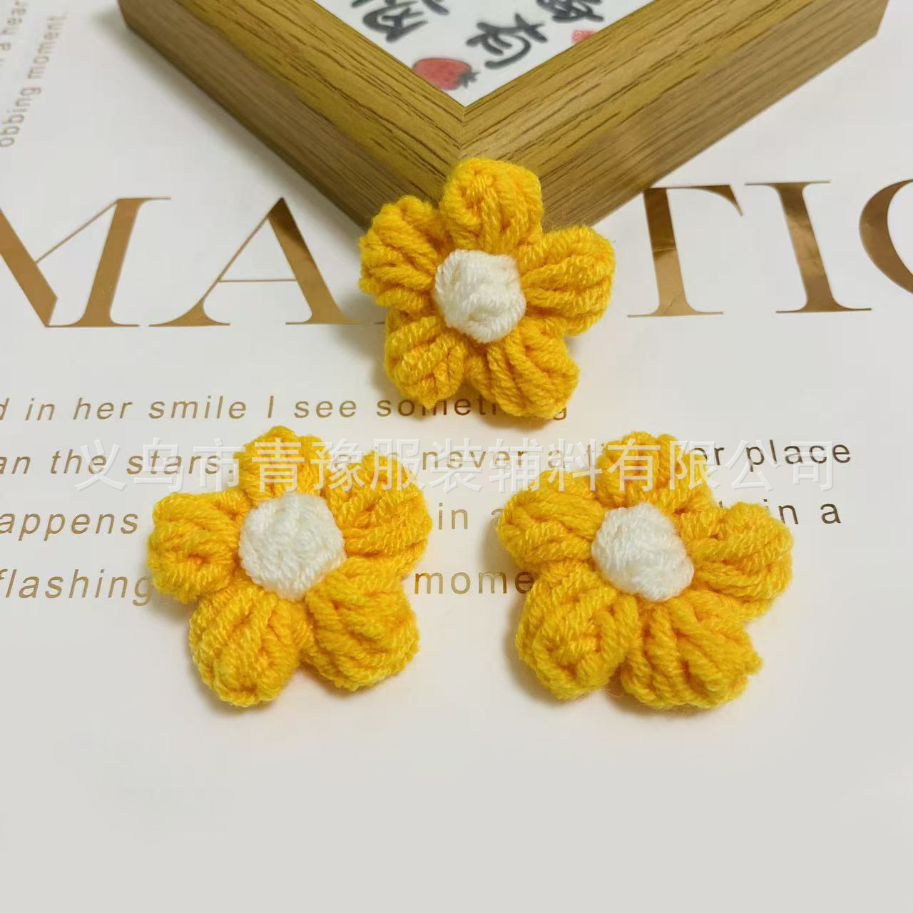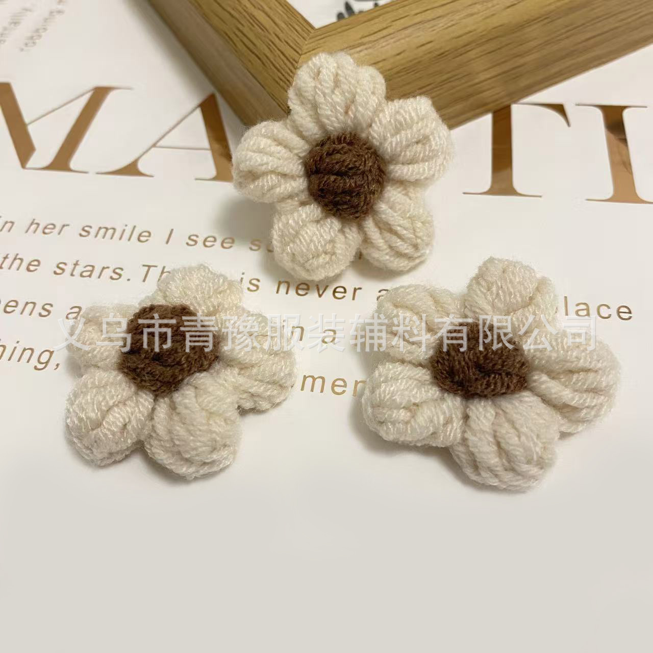 包邮手工钩针泡芙花 毛线编织花朵发饰发夹配件 胸花鞋花包包配饰