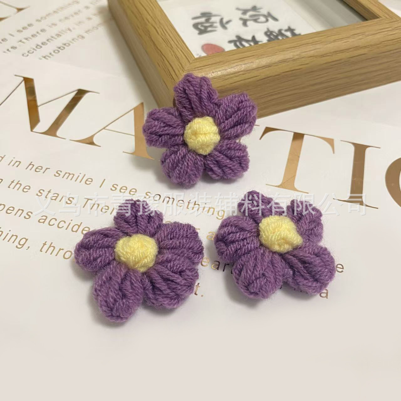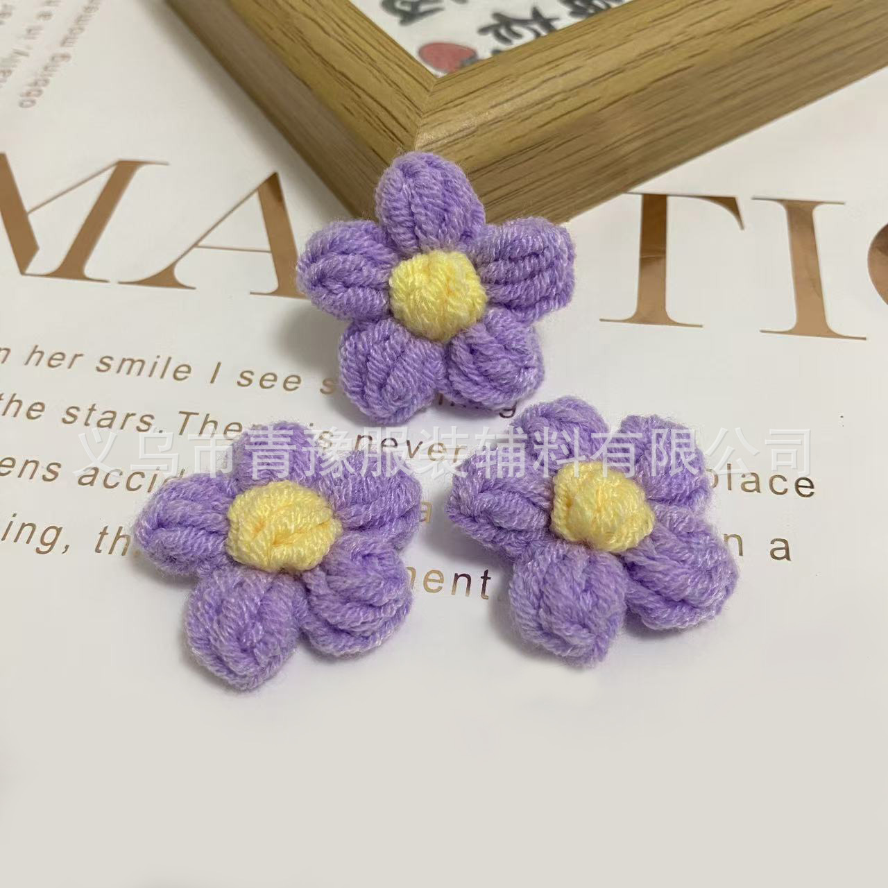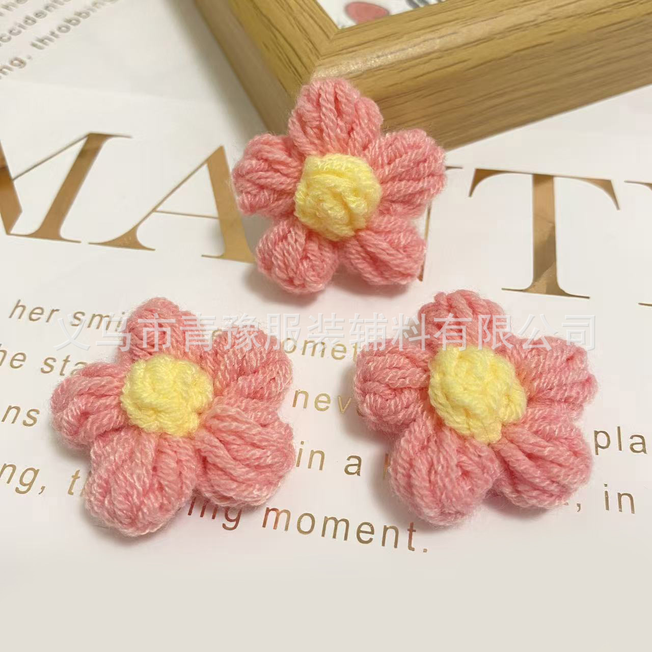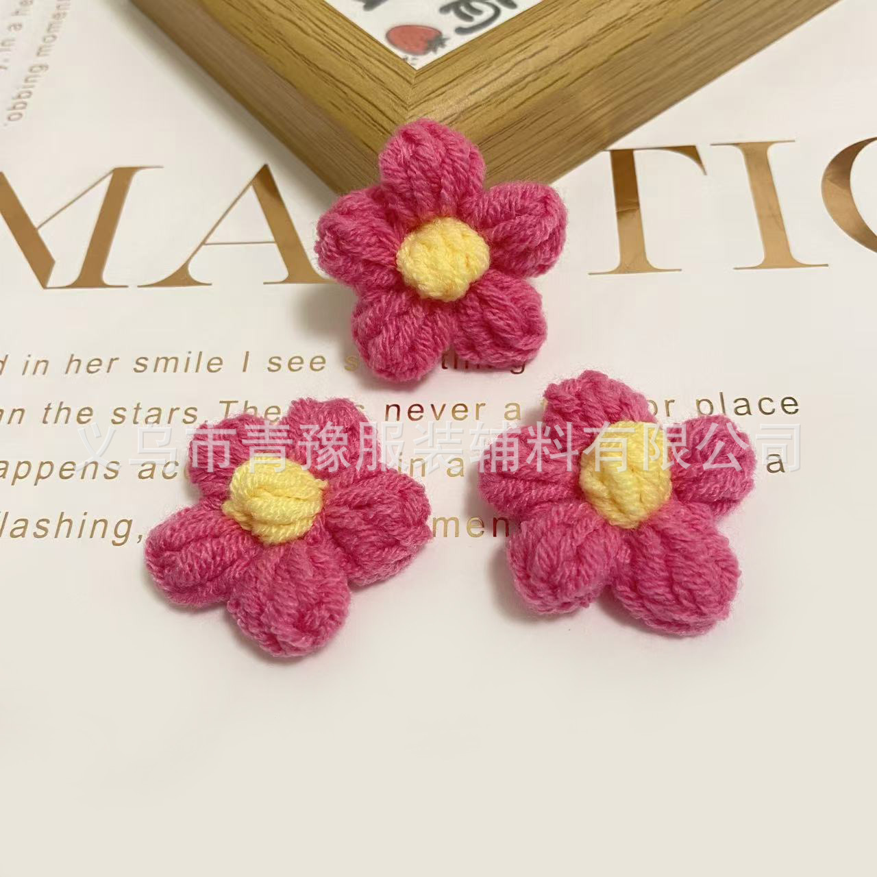 包邮手工钩针泡芙花 毛线编织花朵发饰发夹配件 胸花鞋花包包配饰